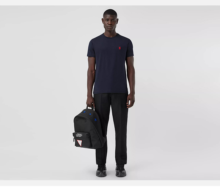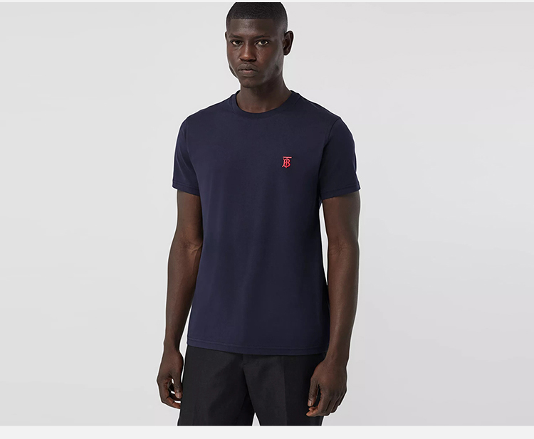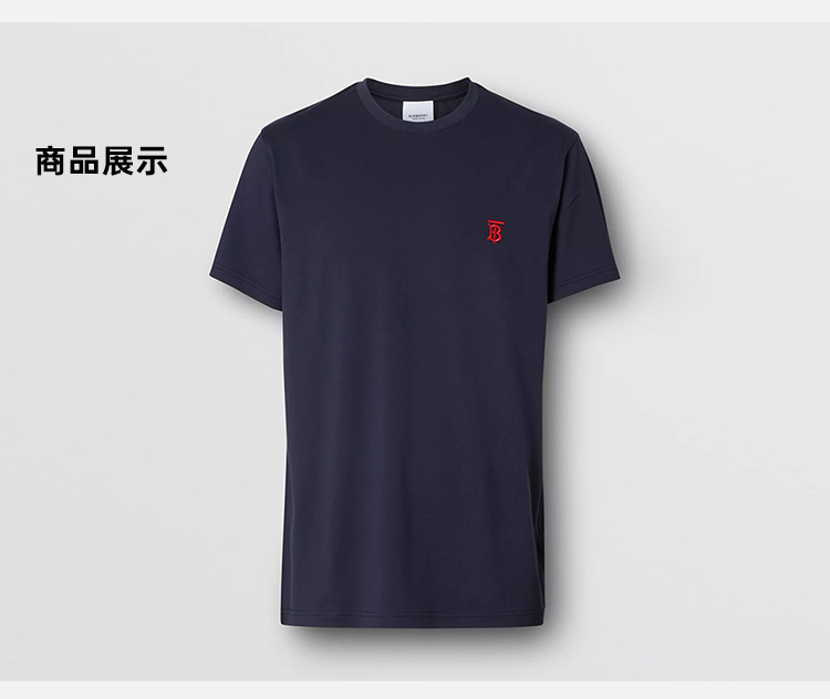 【二】BURBERRY 巴宝莉 男士TB专属标识图案刺绣棉质圆领短袖T恤 藏蓝色 8014022 A1222