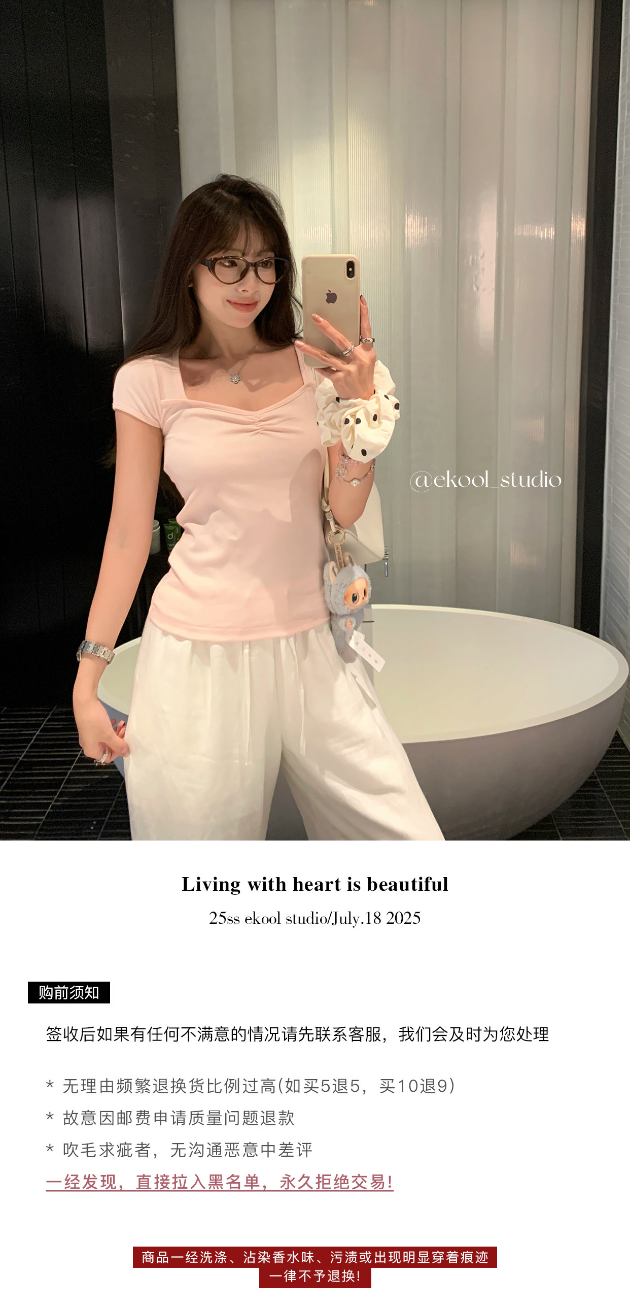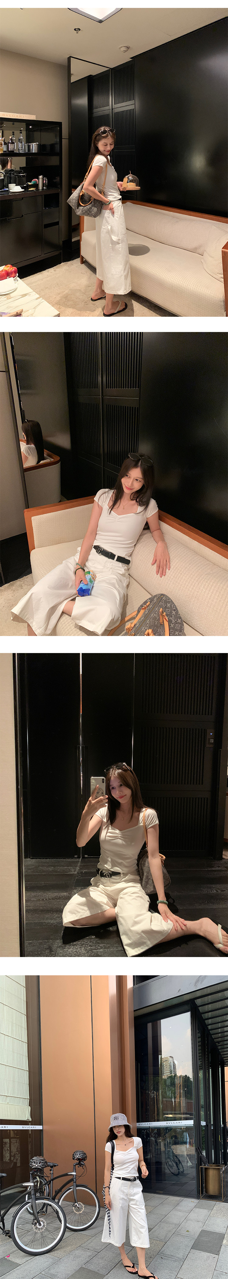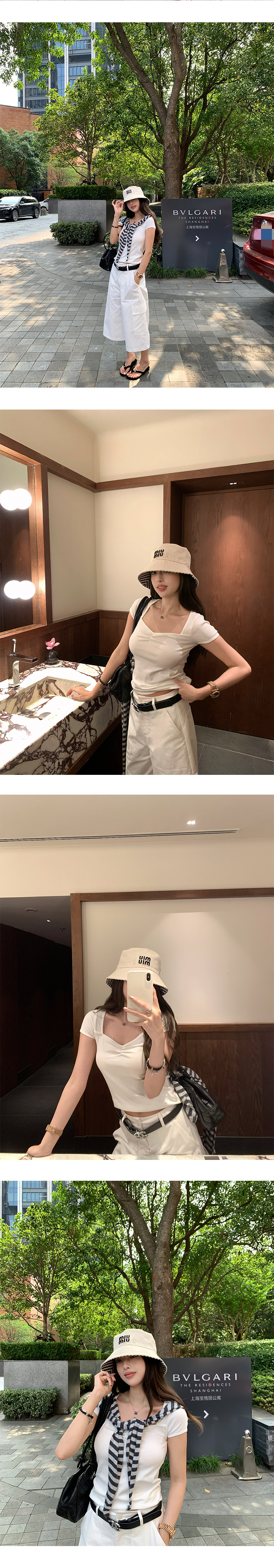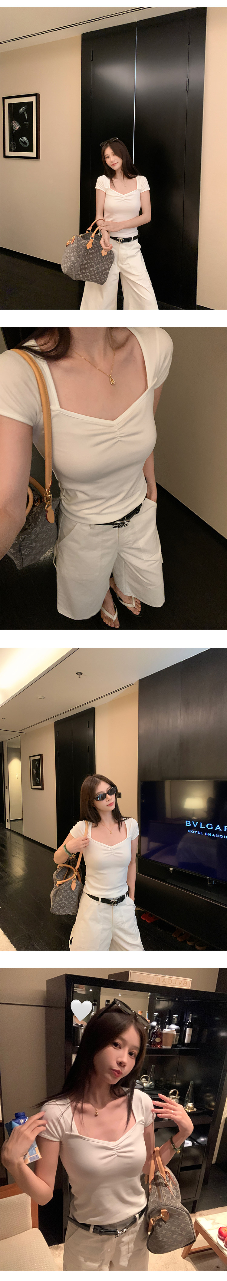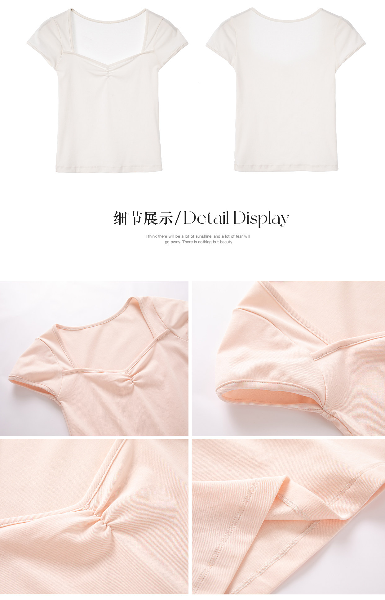 EKOOL衣库 方领短袖T恤女夏季2025新款抽褶设计百搭显瘦休闲上衣