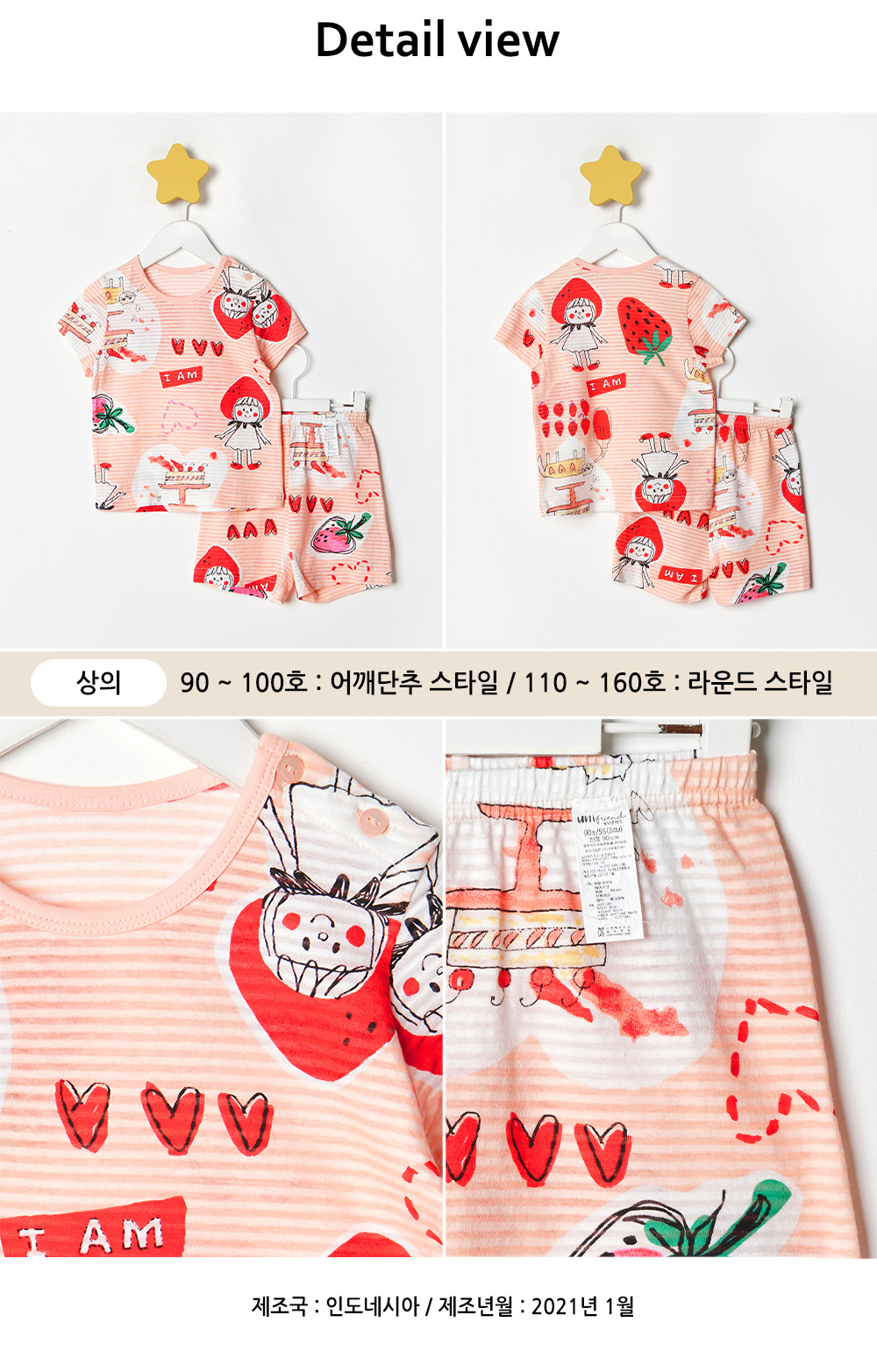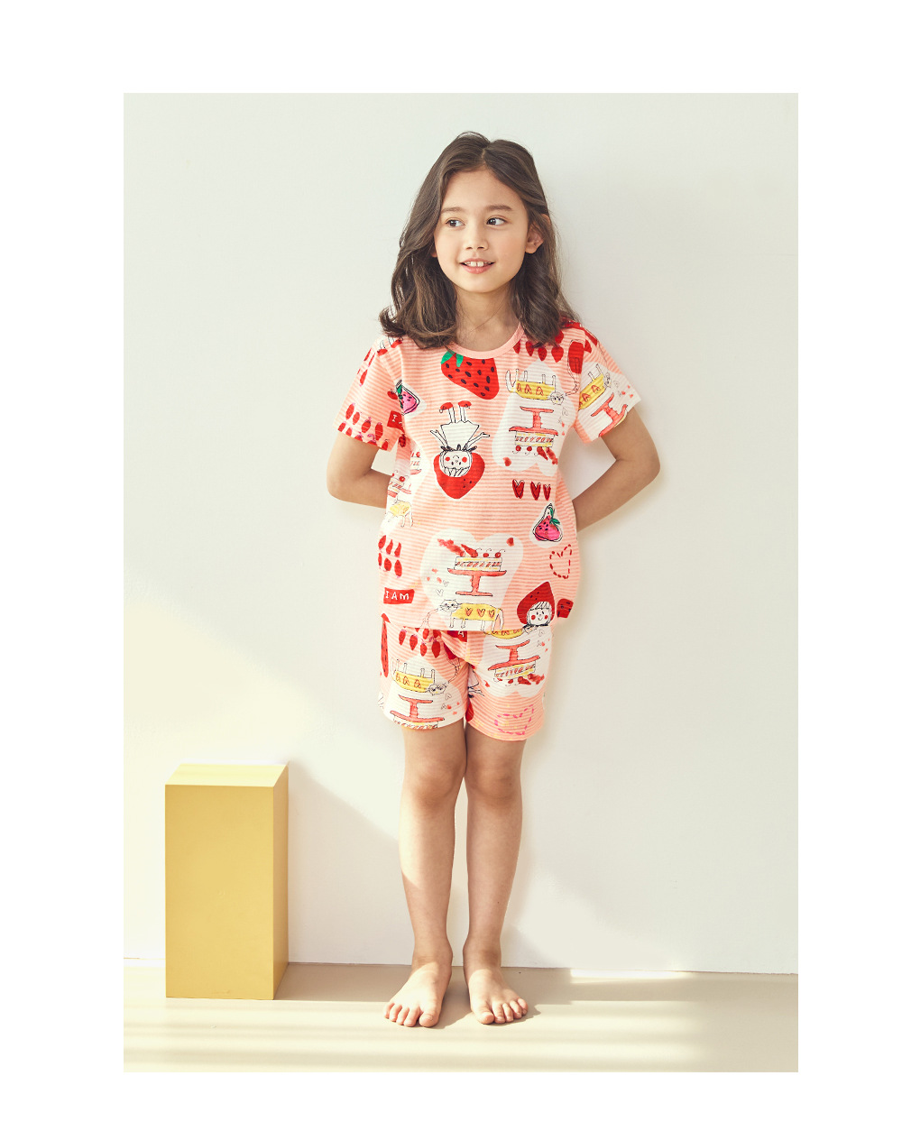 草莓公主(5分袖竹节棉)unifriend夏季儿童睡衣套装宝宝空调服短袖儿童家居服
