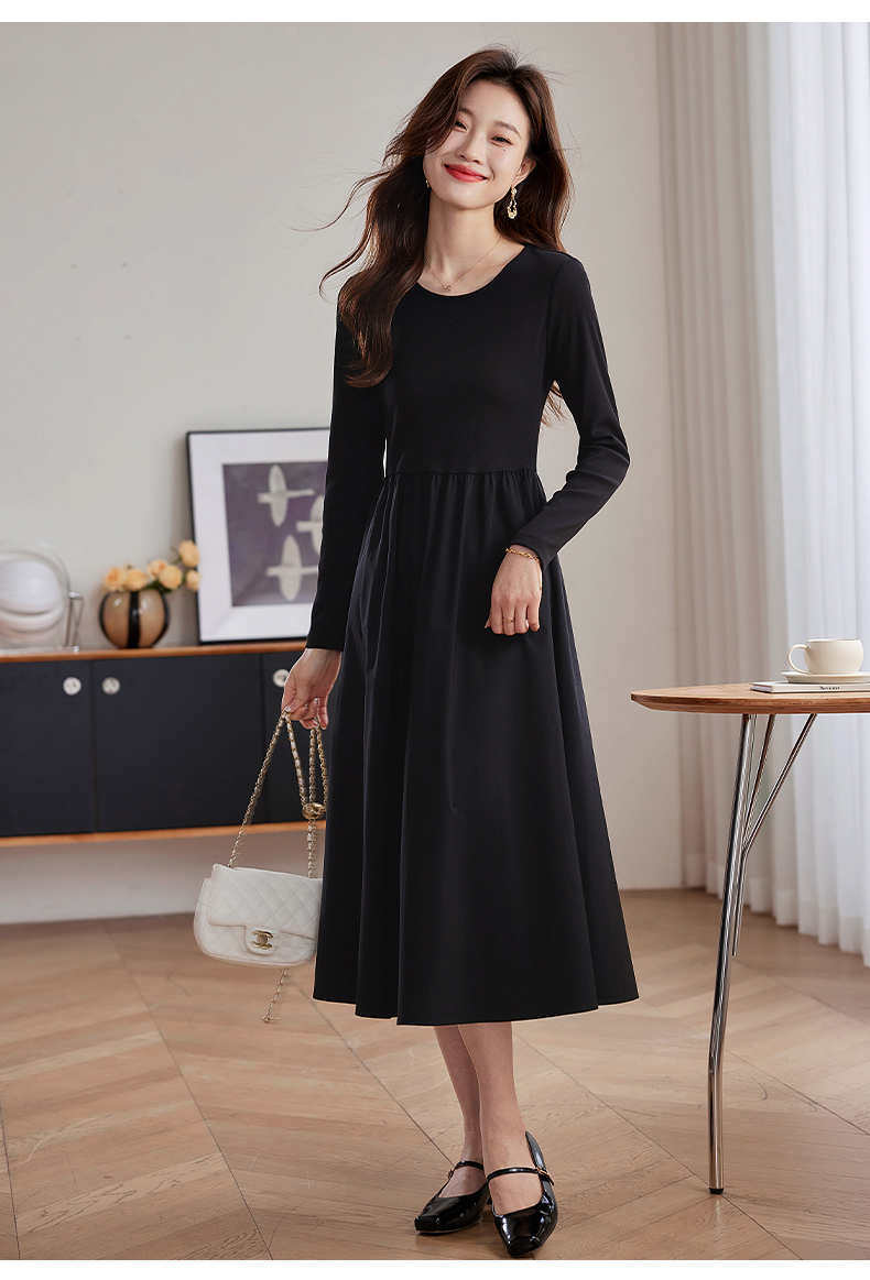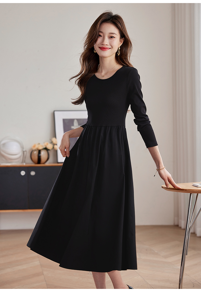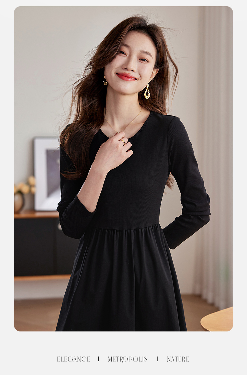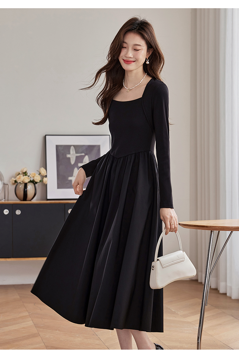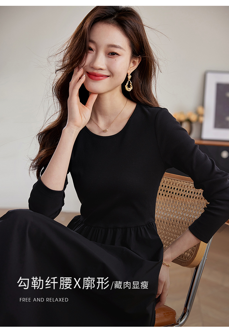 【五折购】熙世界气质黑色连衣裙女秋2025新新款高级感赫本风小黑裙长裙子