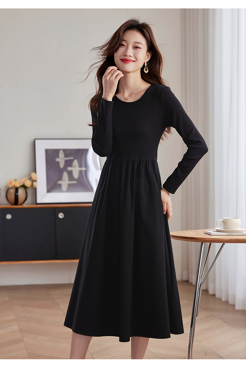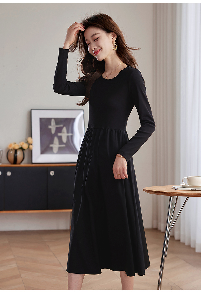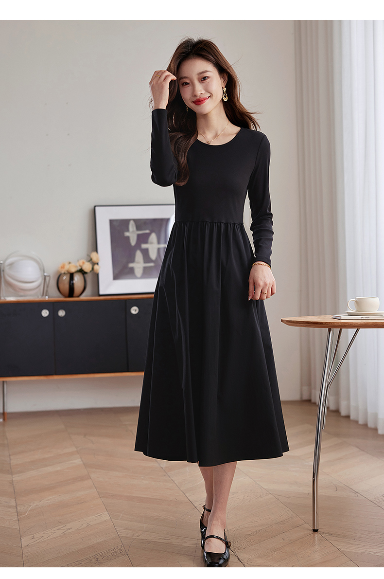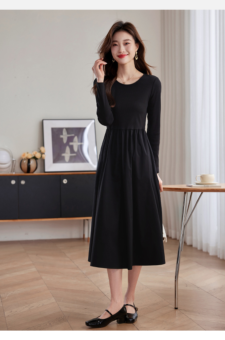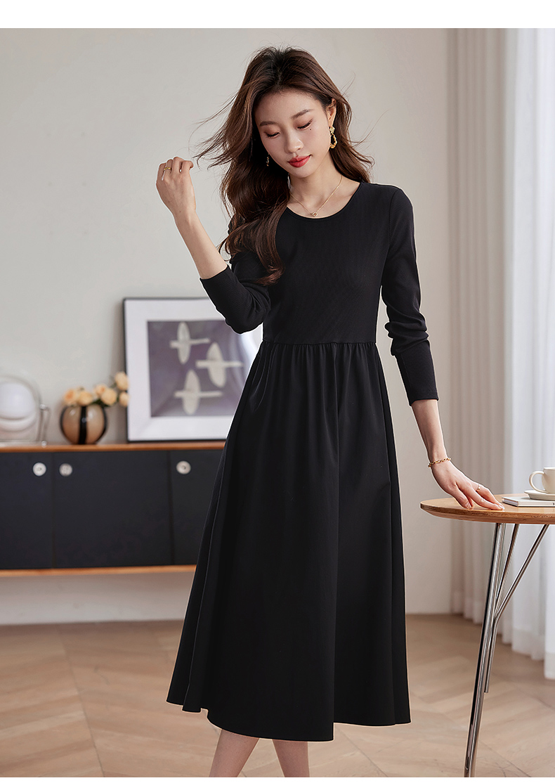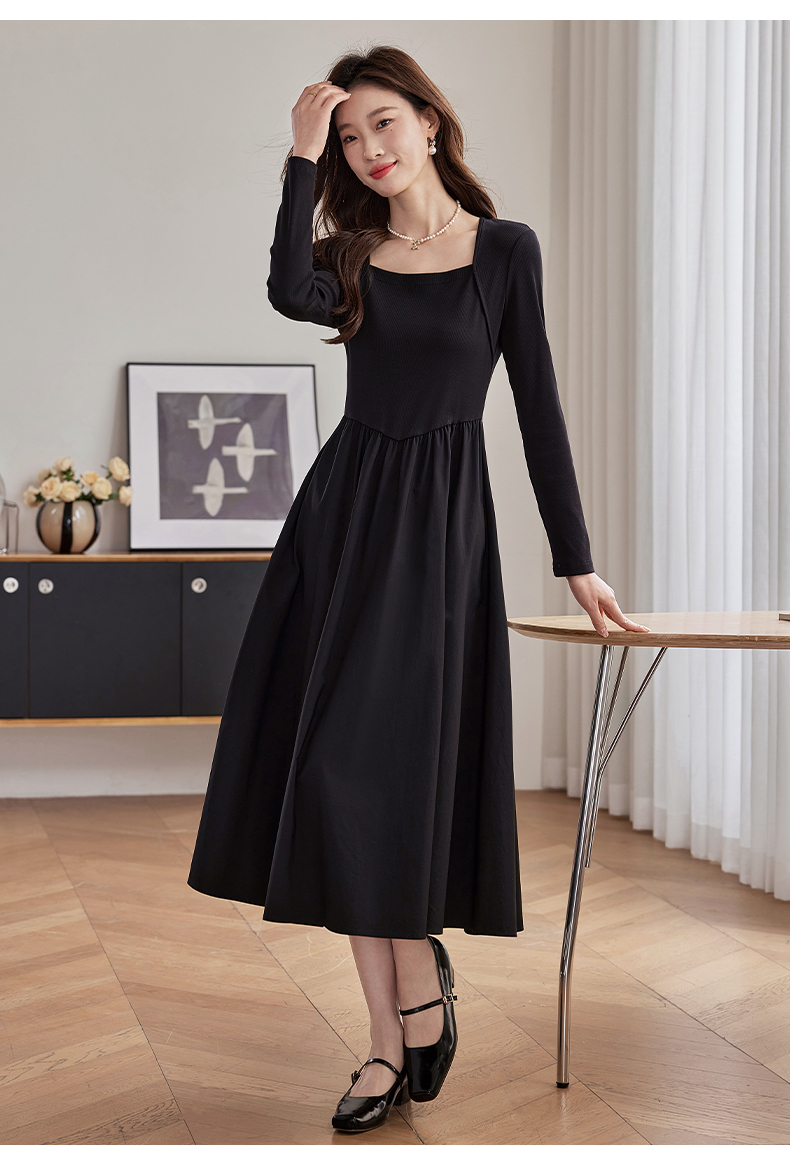 【五折购】熙世界气质黑色连衣裙女秋2025新新款高级感赫本风小黑裙长裙子