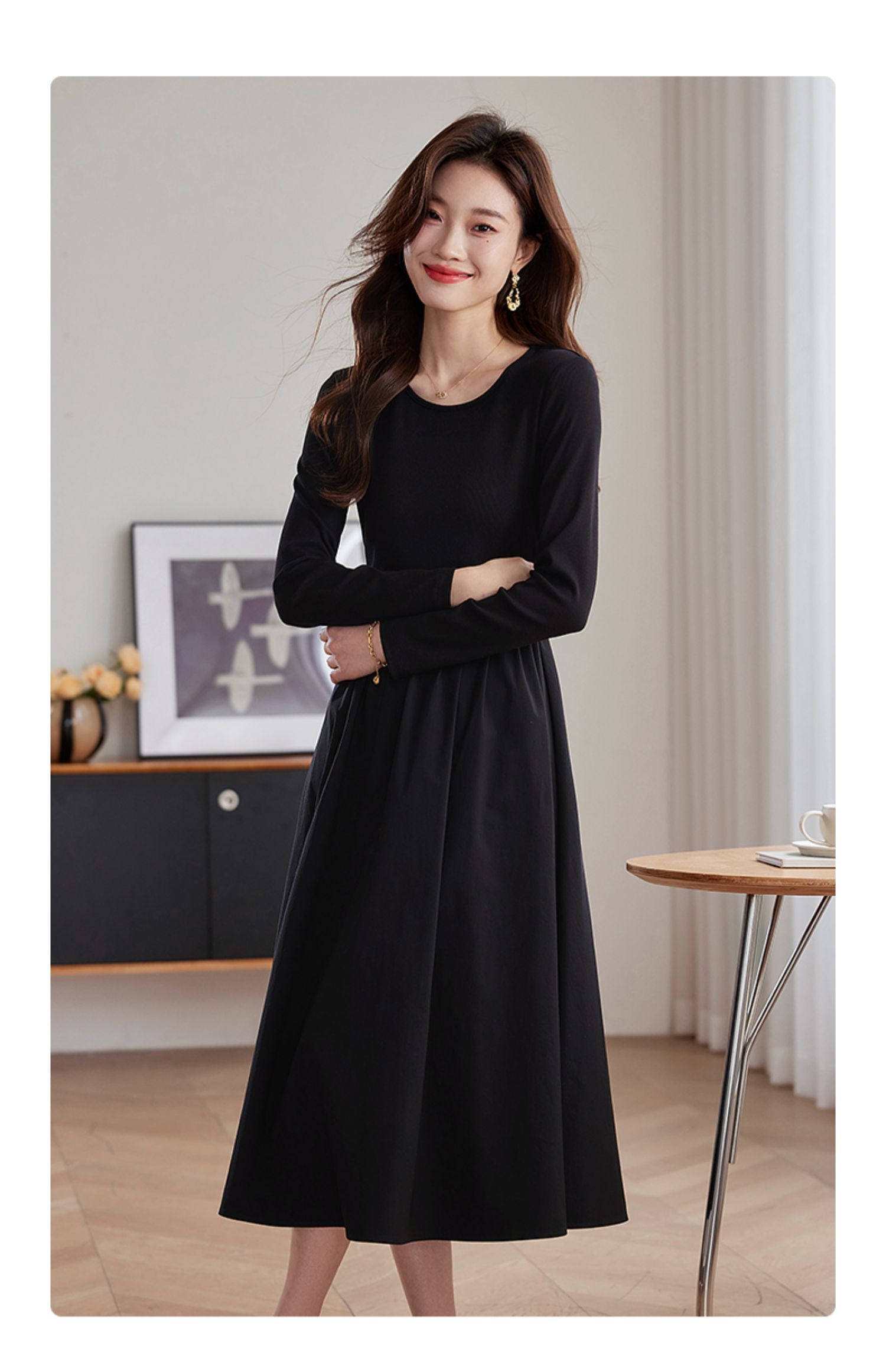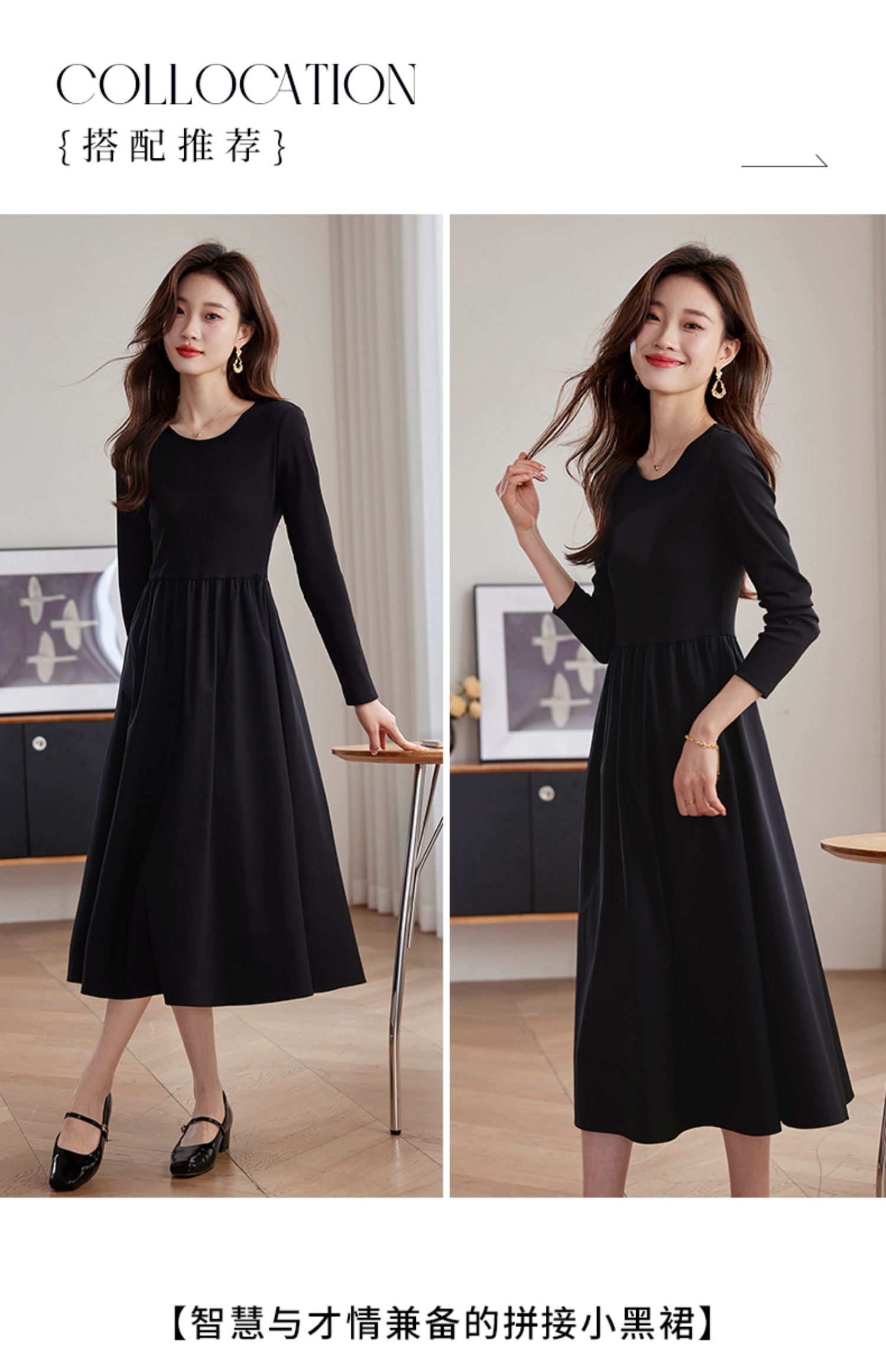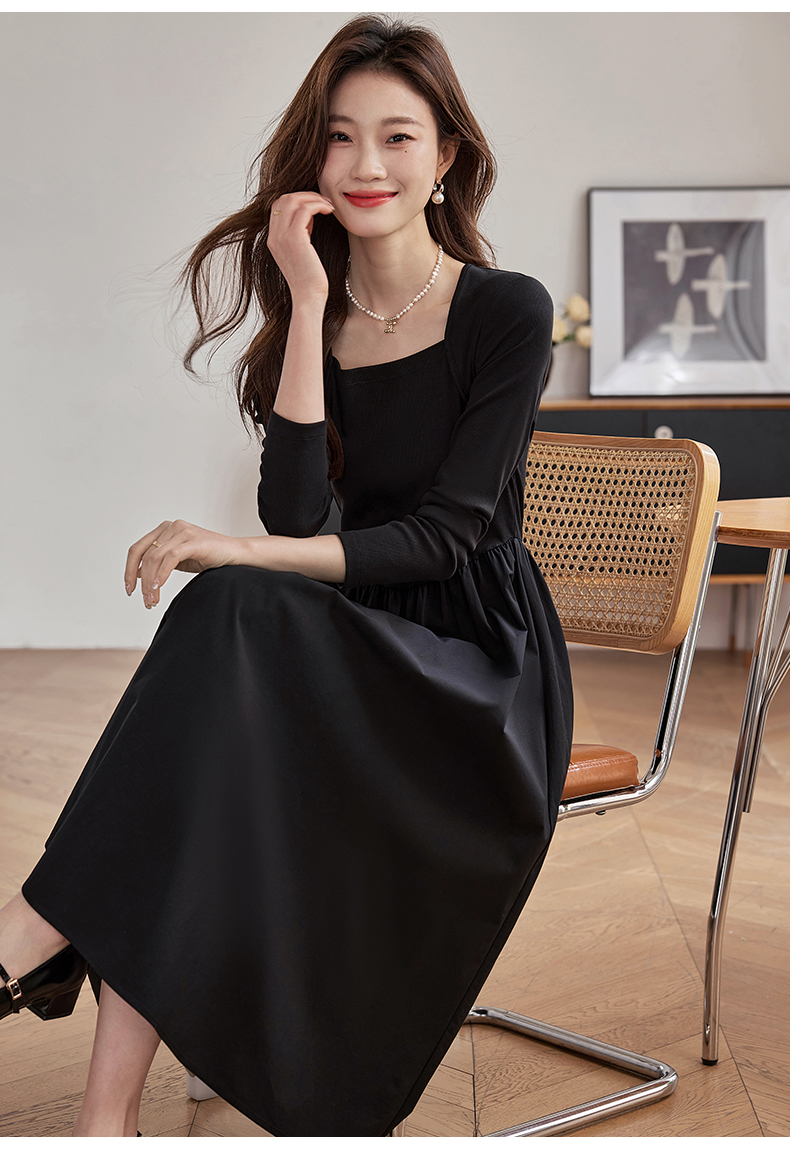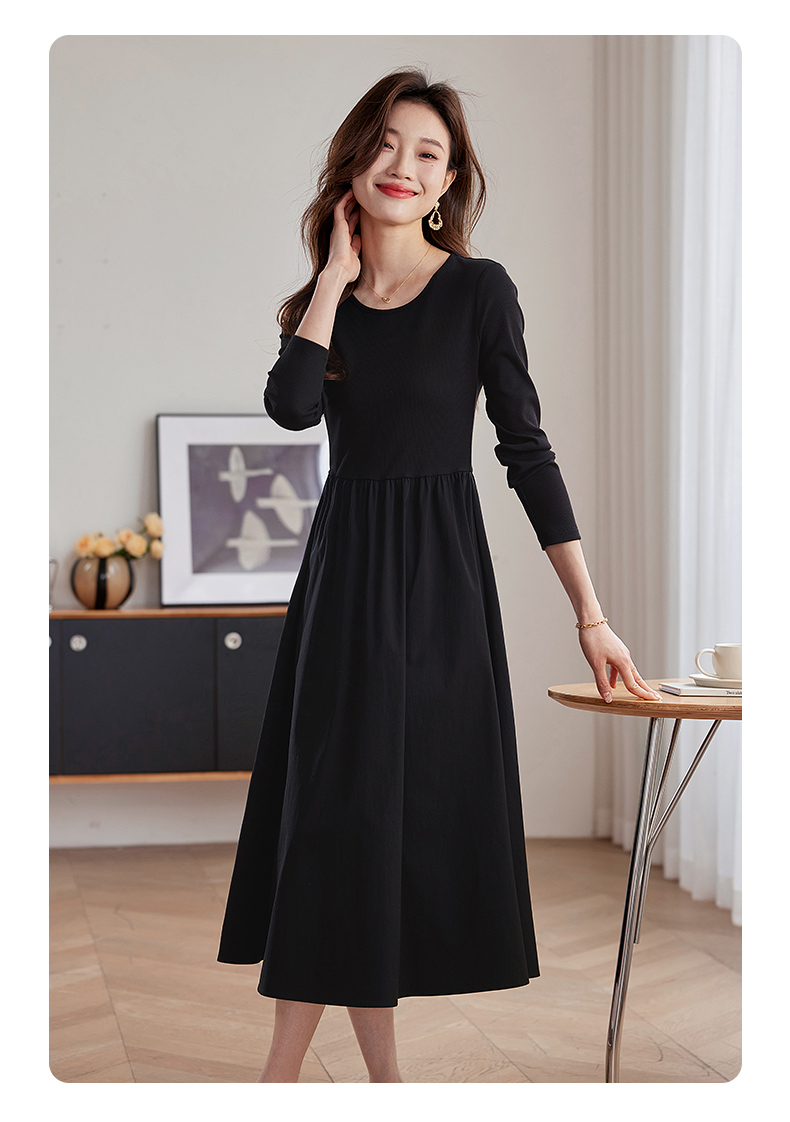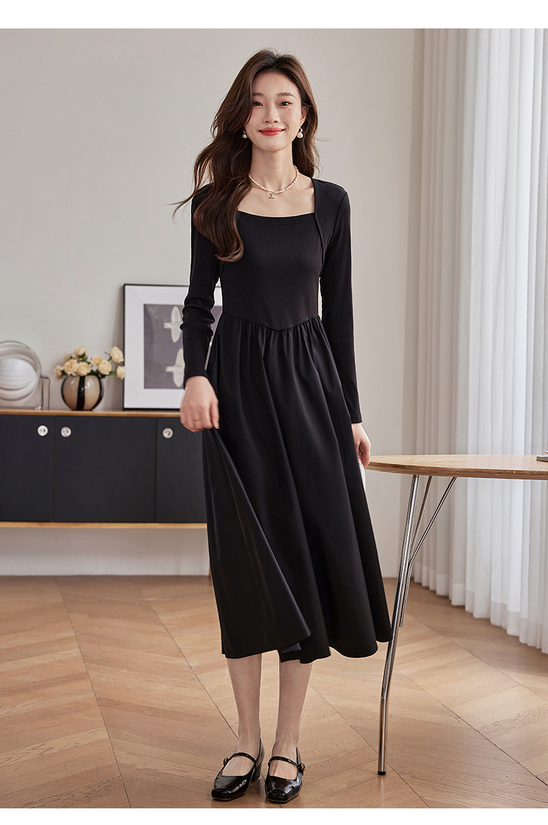 【五折购】熙世界气质黑色连衣裙女秋2025新新款高级感赫本风小黑裙长裙子