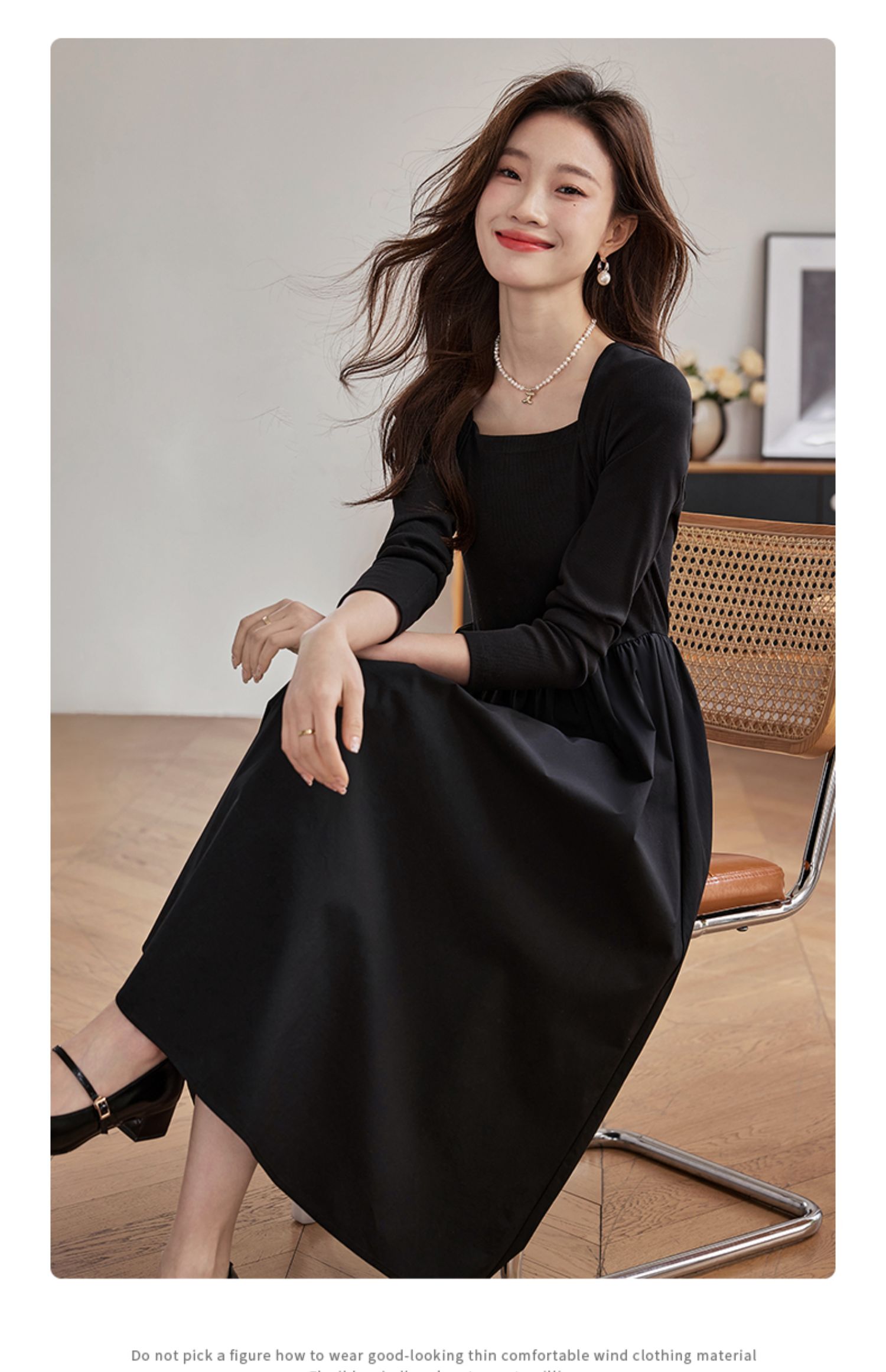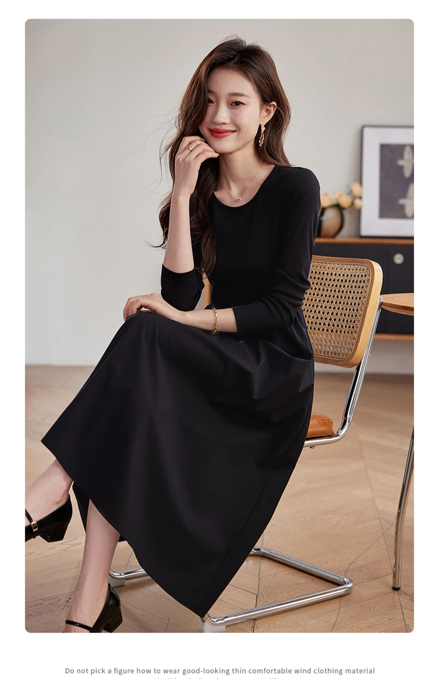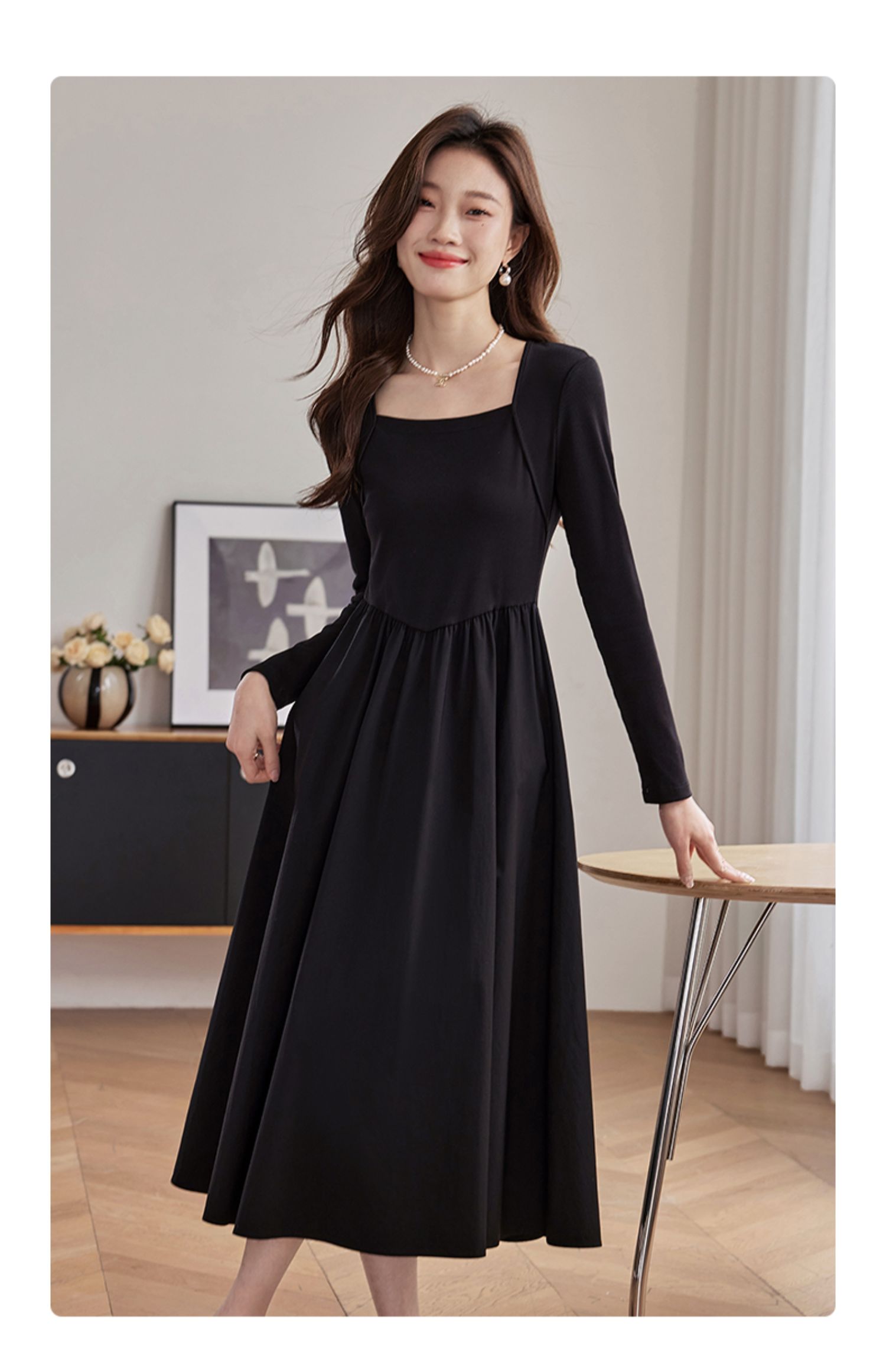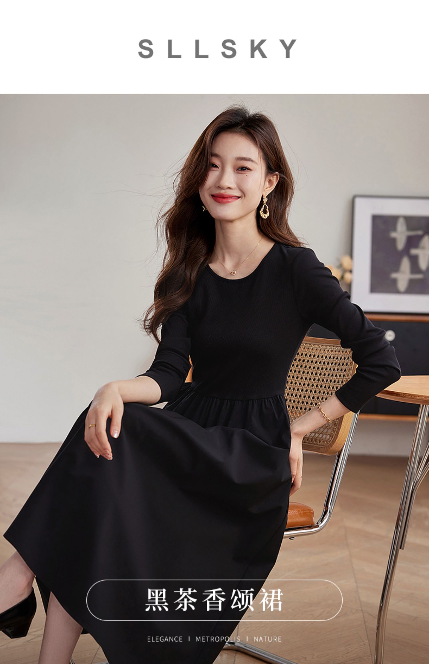 【五折购】熙世界气质黑色连衣裙女秋2025新新款高级感赫本风小黑裙长裙子