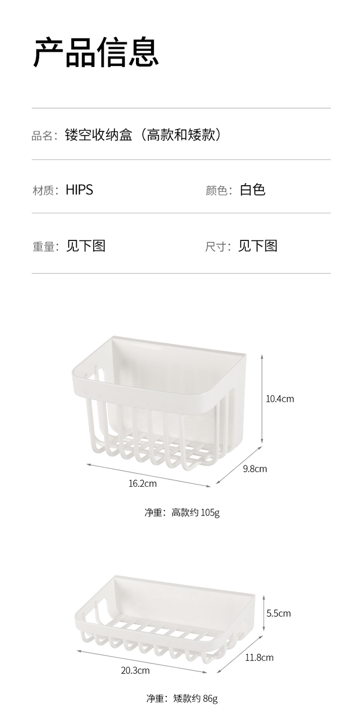 FaSoLa卫生间肥皂沥水收纳盒免打孔壁挂收纳篮家用水槽海绵沥水架