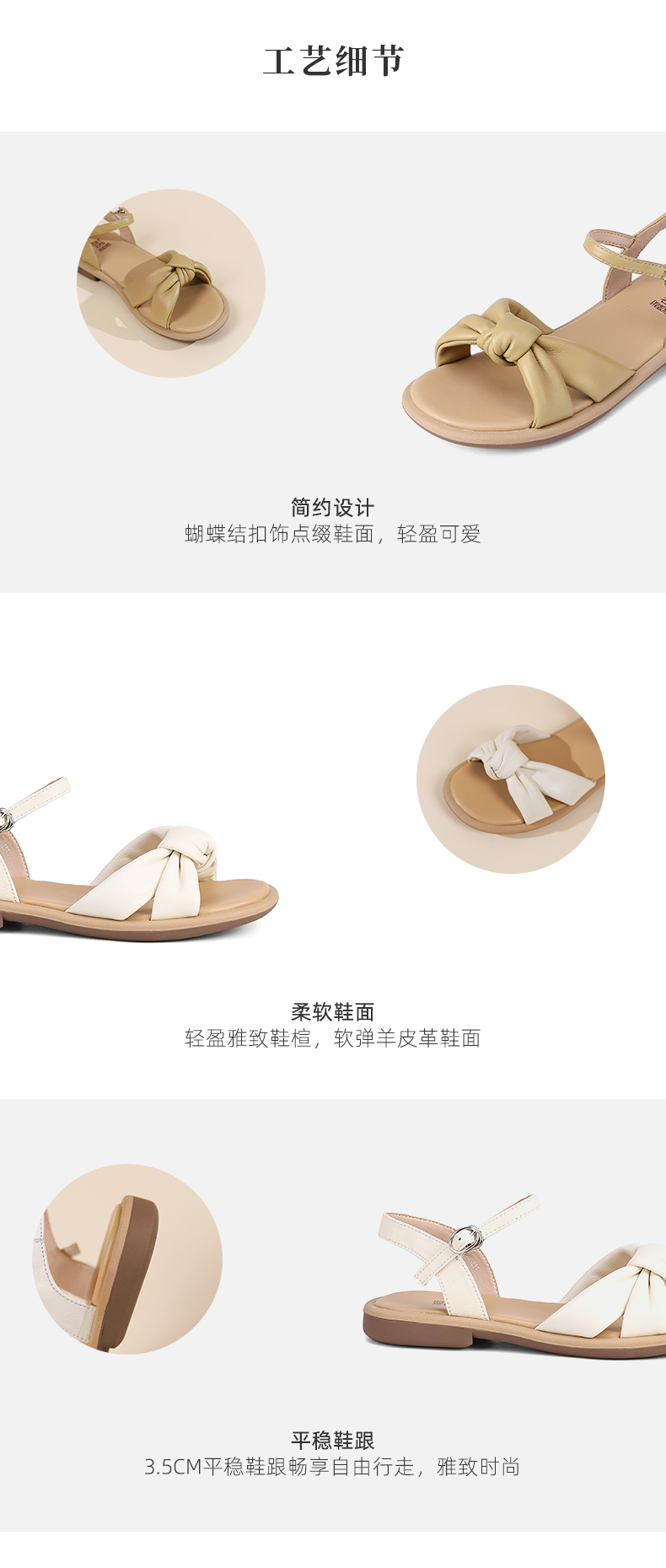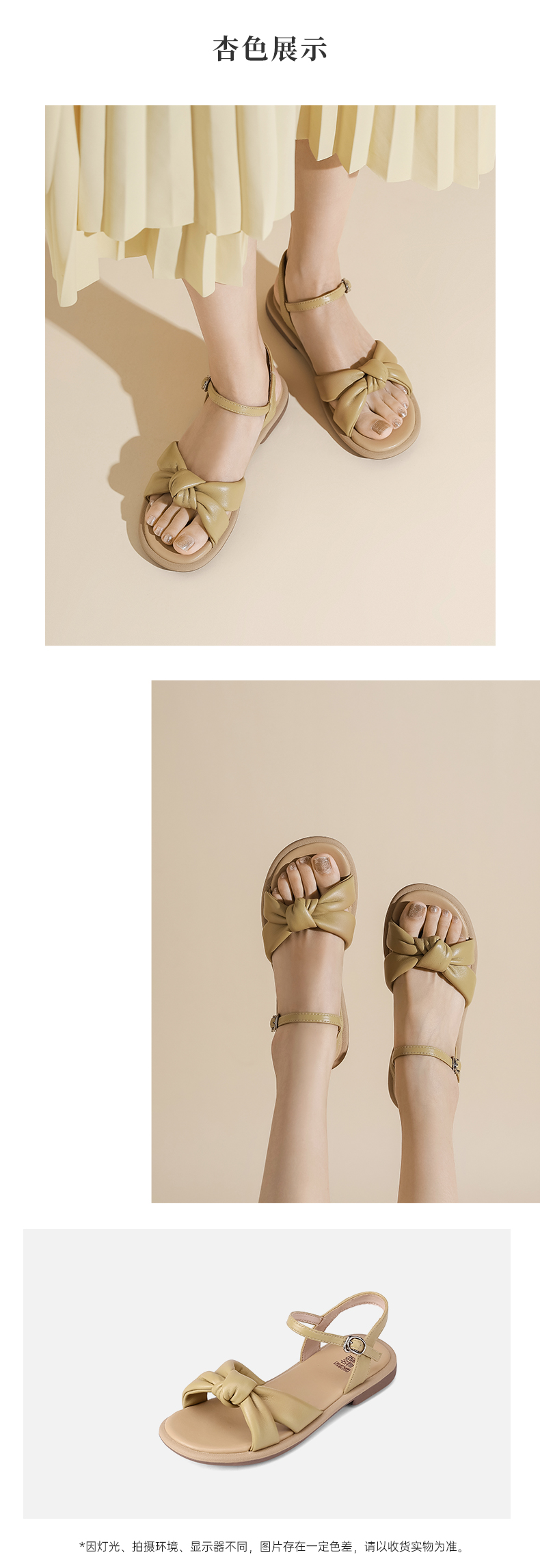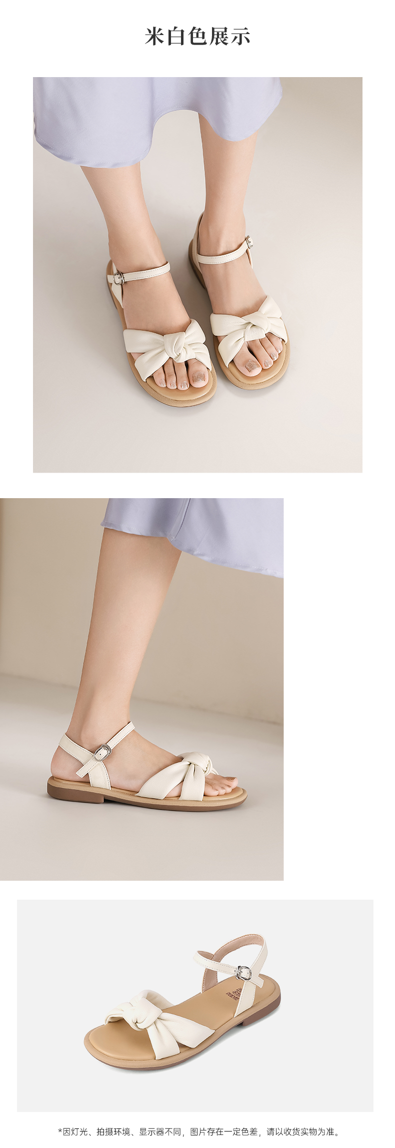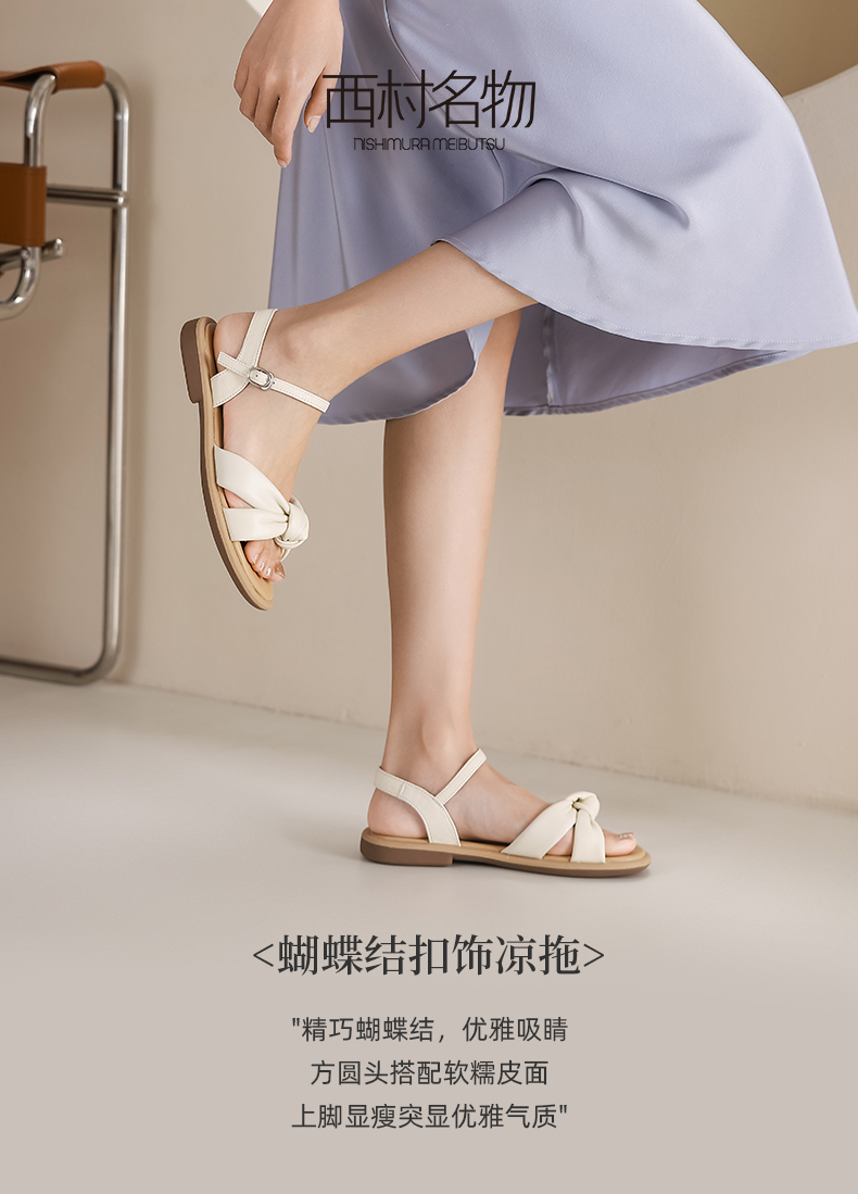 西村名物2023夏季新款仙女风一字带凉鞋蝴蝶结扣饰平底凉拖23161