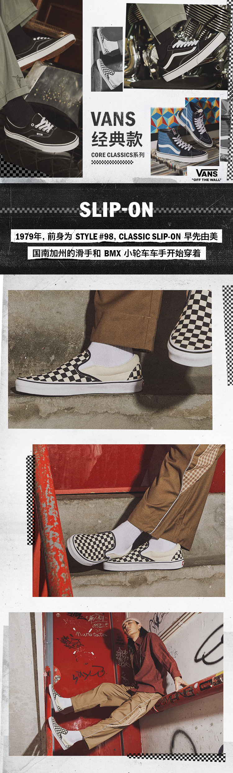 Vans范斯官方 黑白棋盘格一脚蹬男鞋女鞋Slip-On低帮潮帆布鞋 VN-0EYEBWW