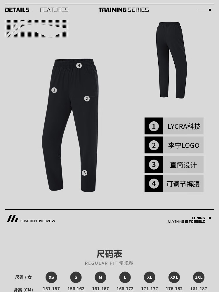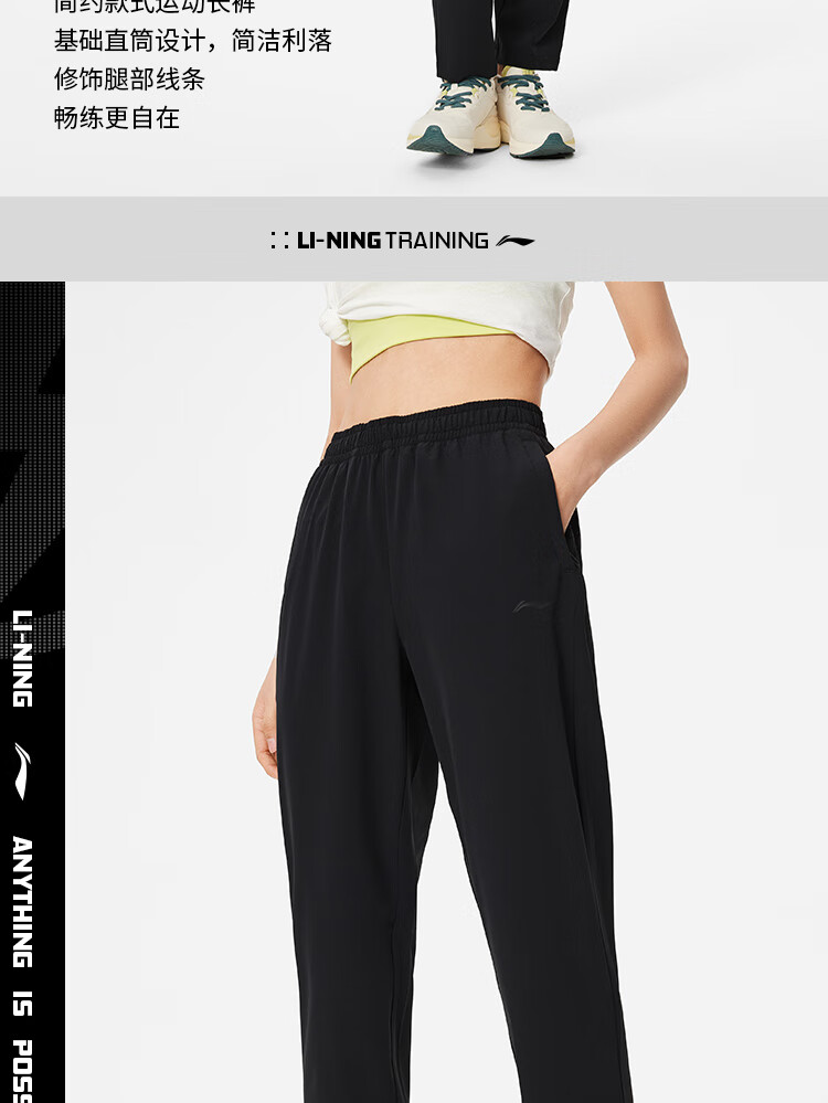 李宁排湿速干运动裤女子健身系列2024夏季莱卡直筒裤子AYKU468