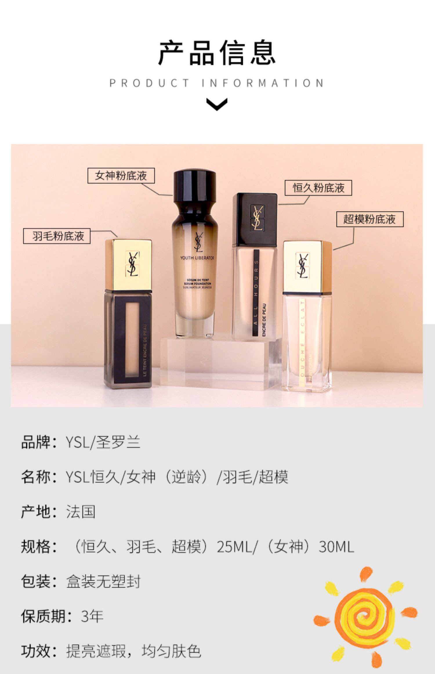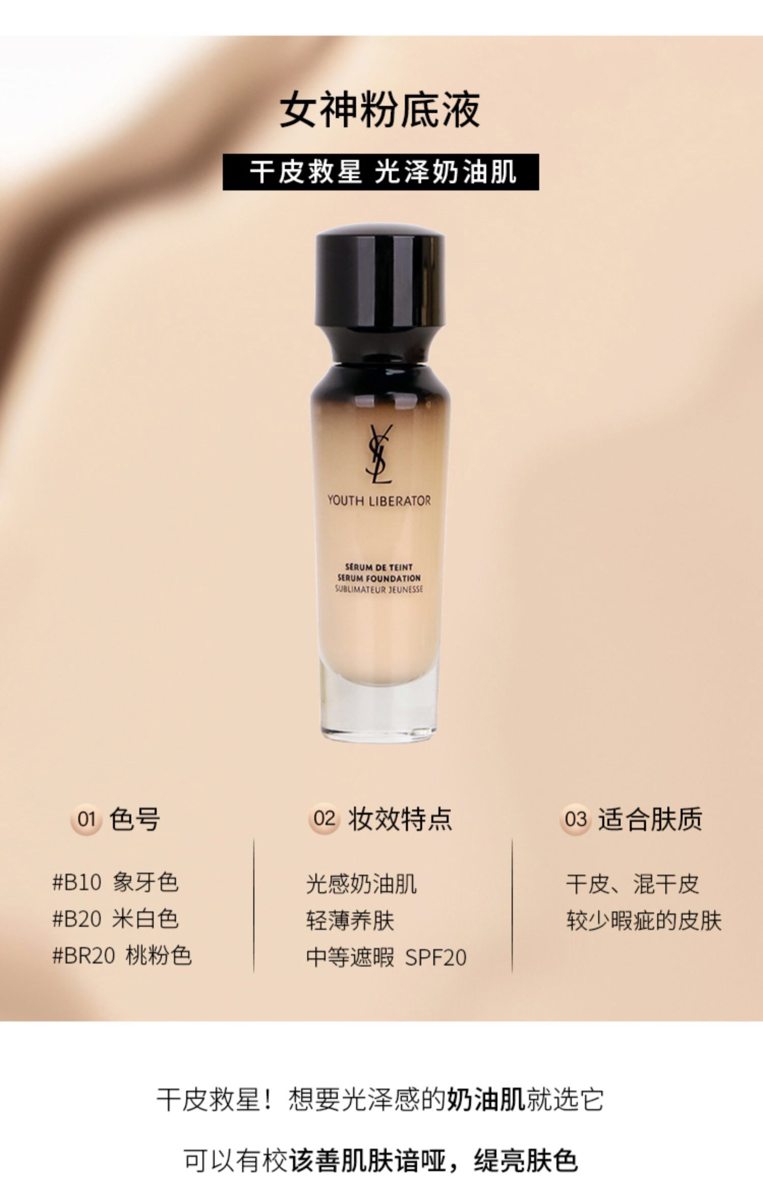 YSL圣罗兰粉底液逆龄女神羽毛无暇控油雾面b10 br20 b20-会员6折