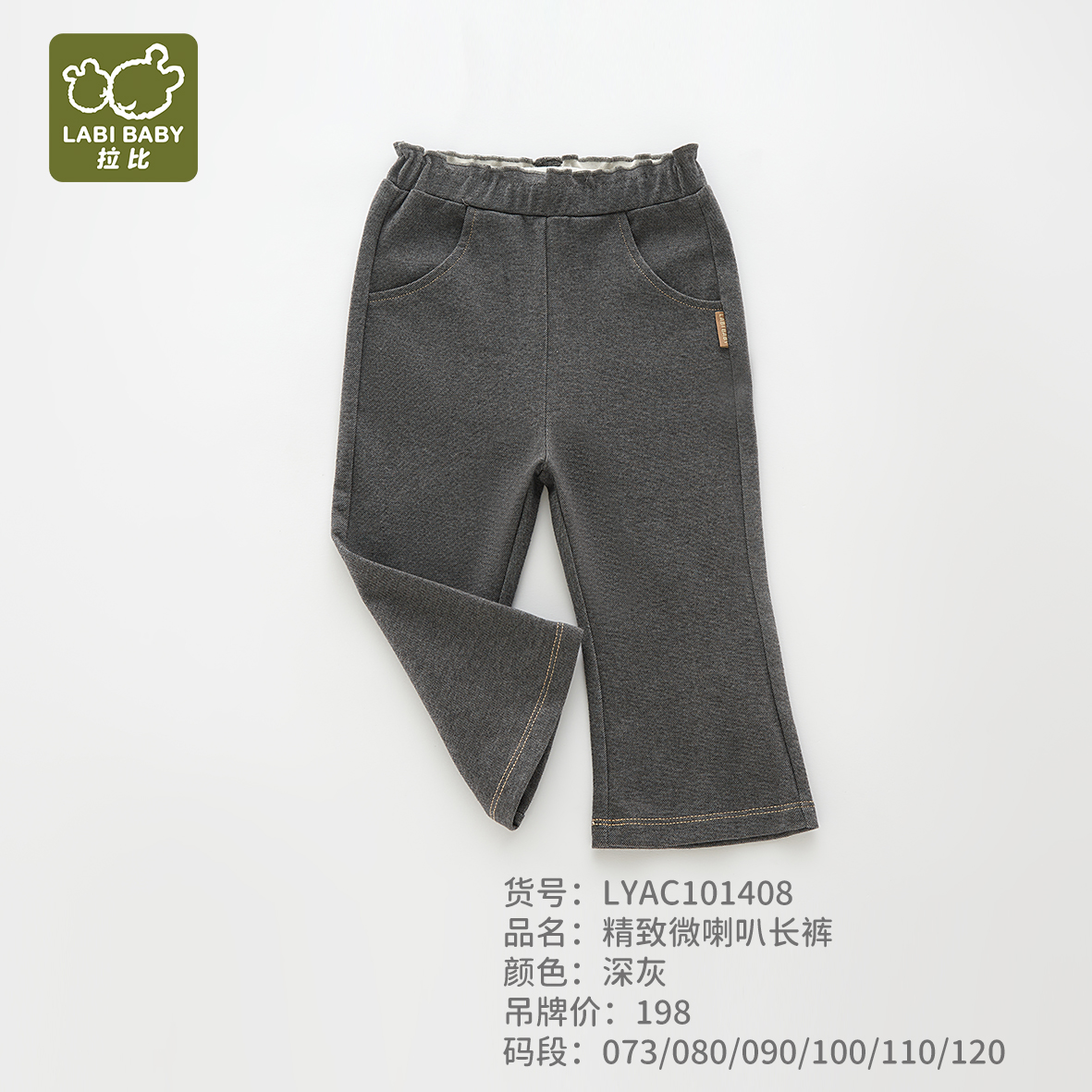 拉比-童衣类(春)I5精致微喇叭长裤深灰(PH)