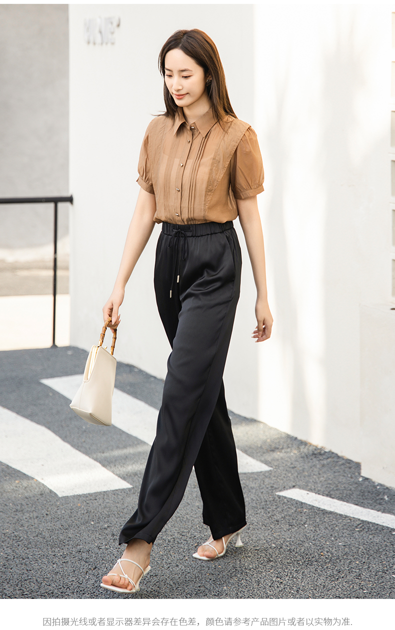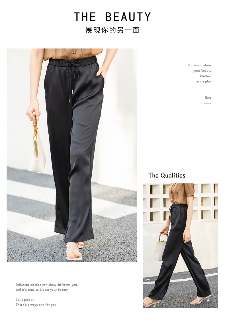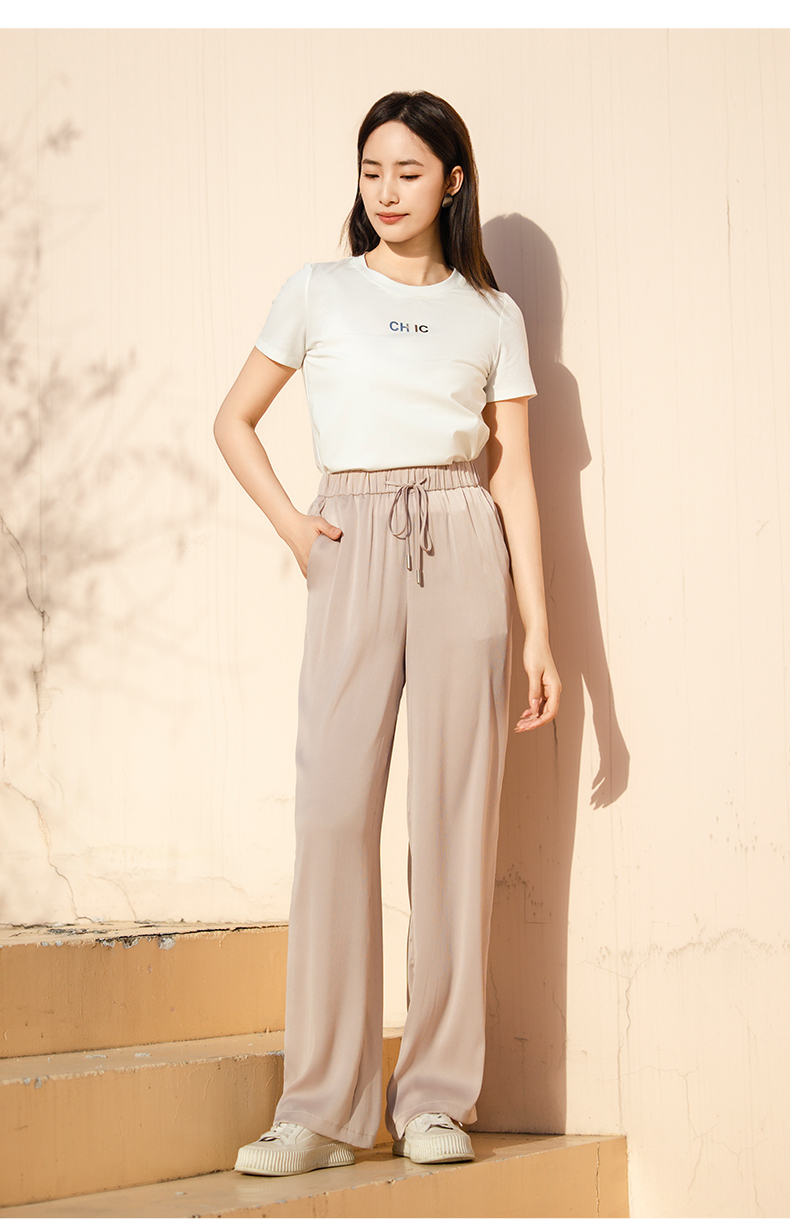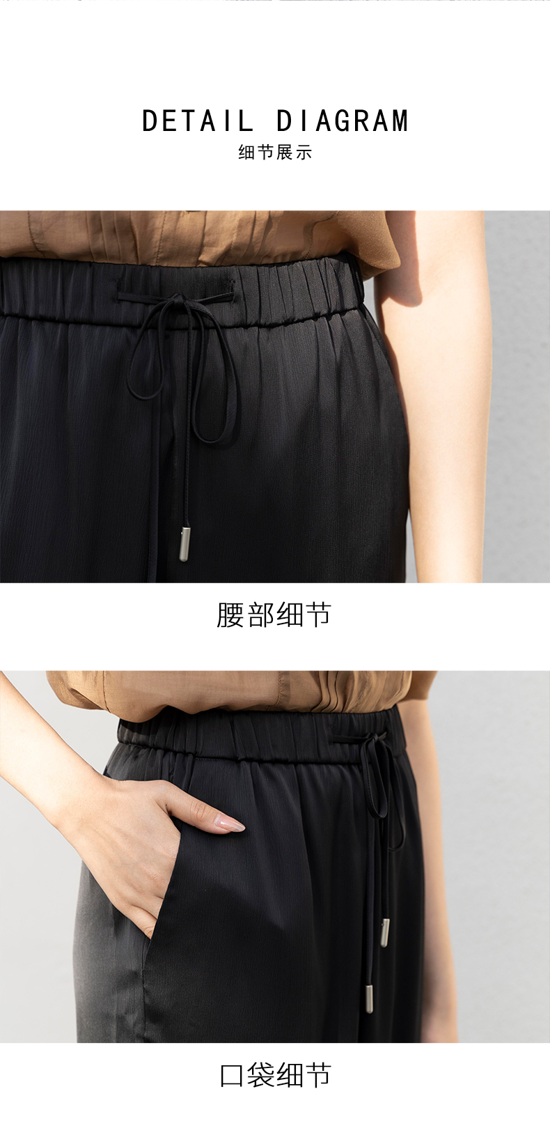 oldcolour欧珂夏季纯色抽绳弹力松紧腰休闲阔腿裤女P25073107