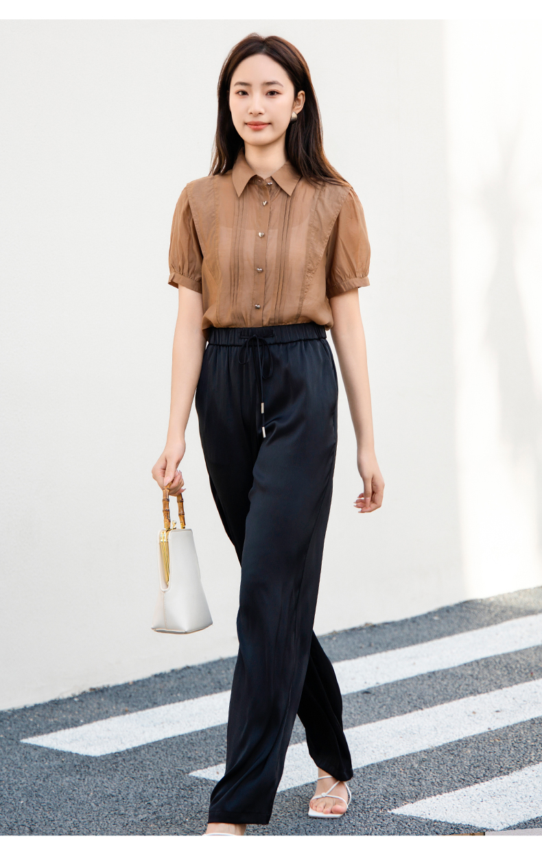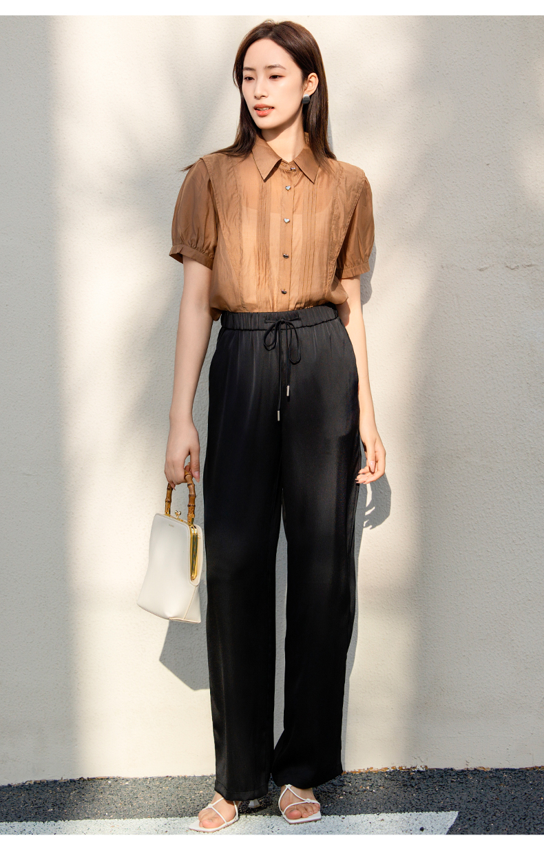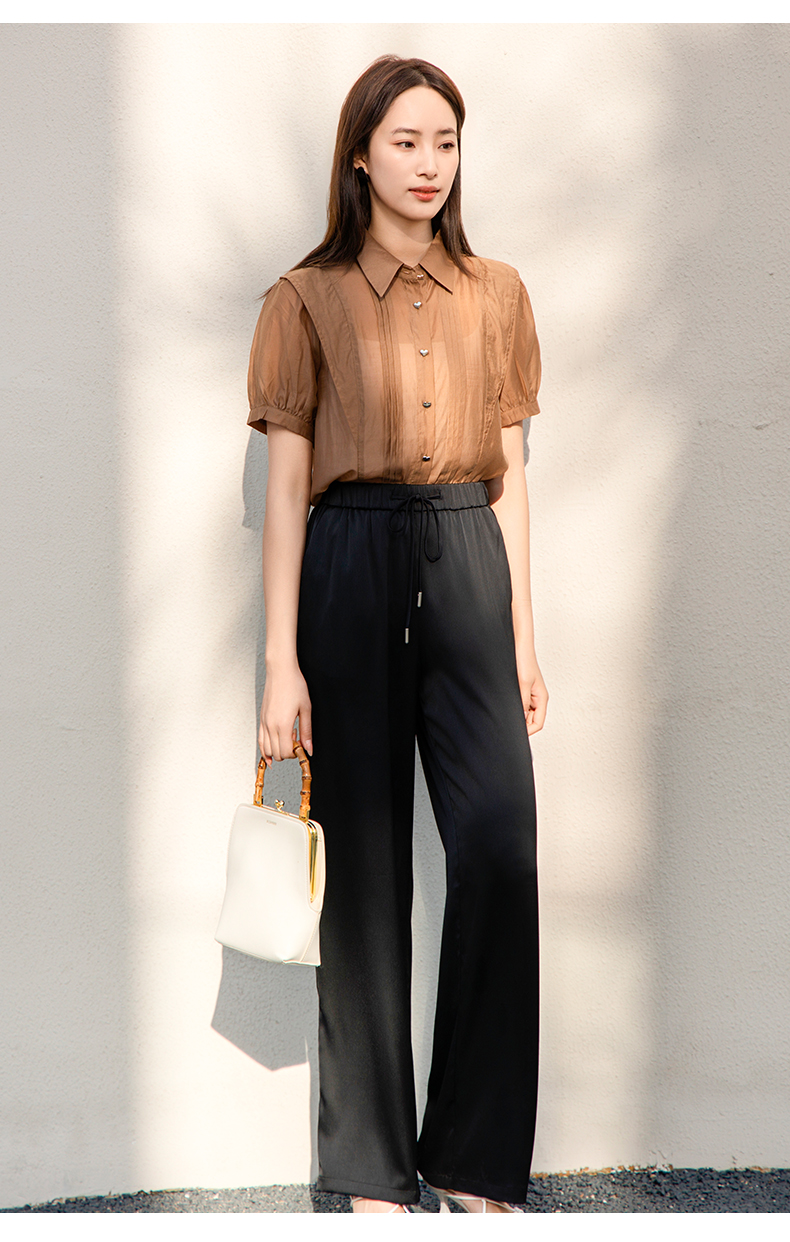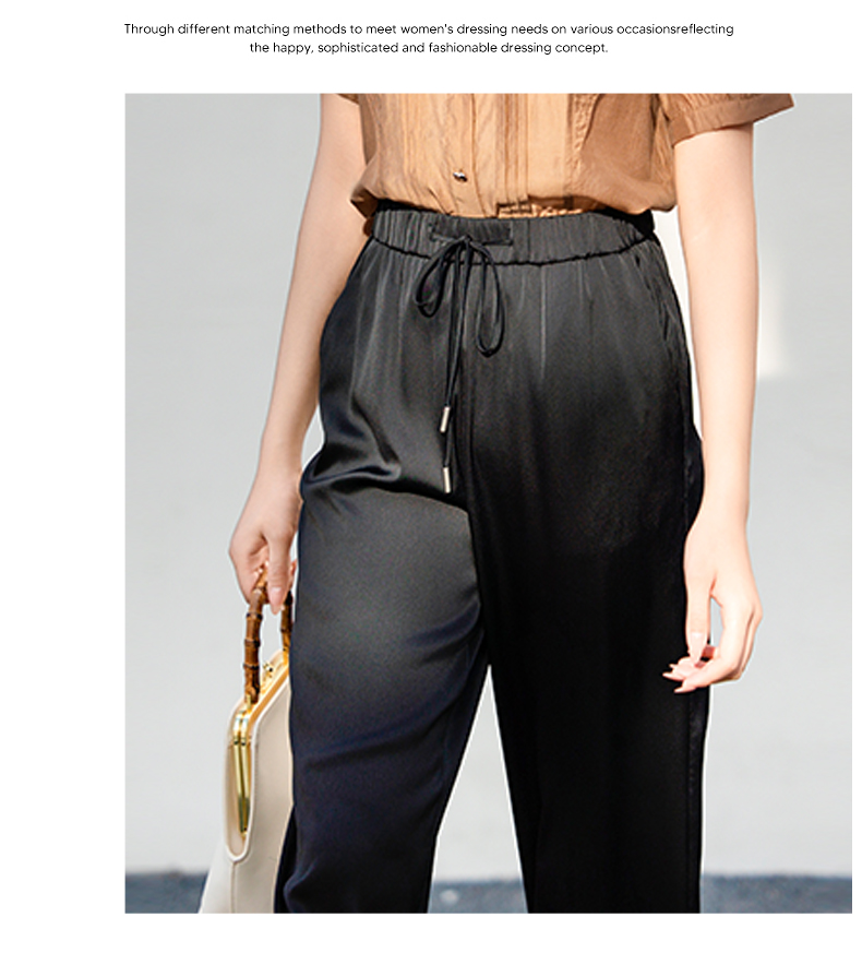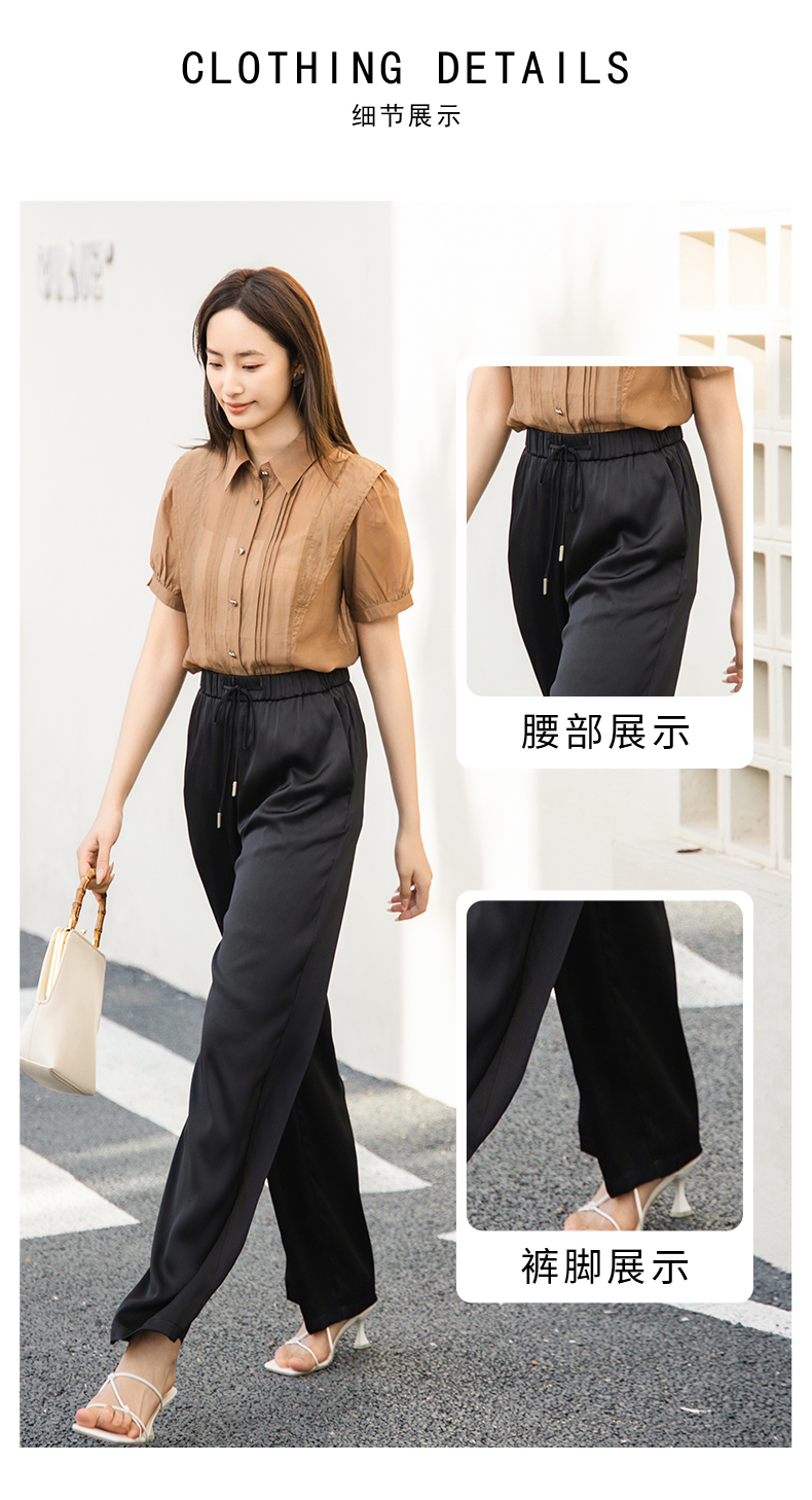 oldcolour欧珂夏季纯色抽绳弹力松紧腰休闲阔腿裤女P25073107