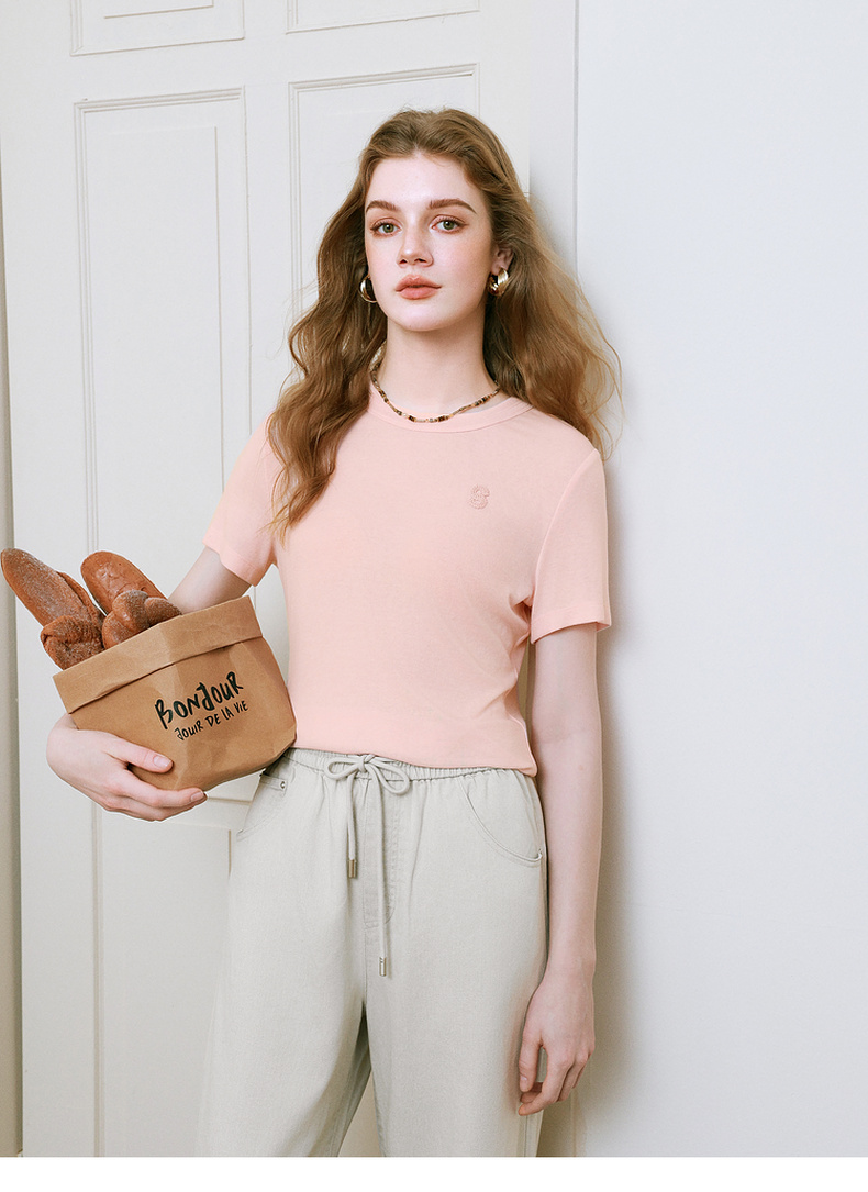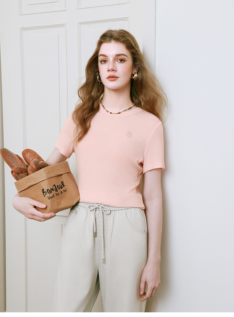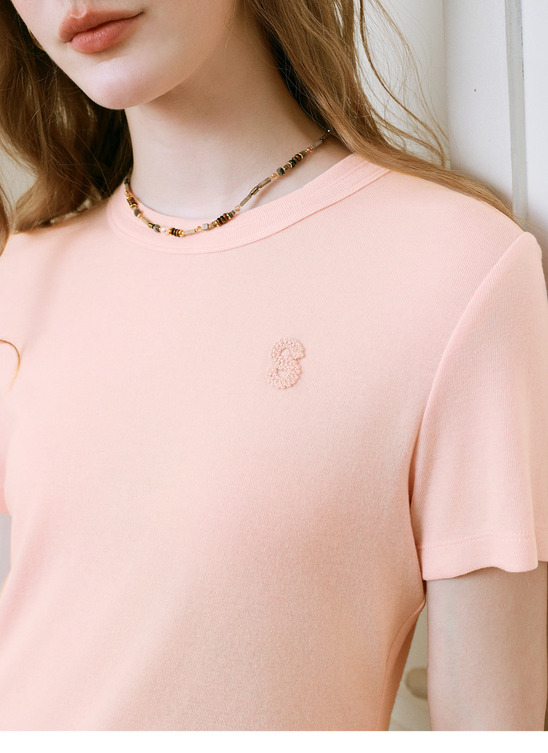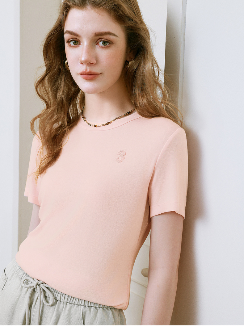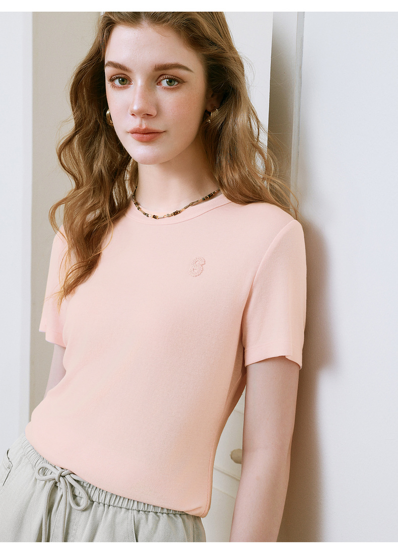 【商场同款】诗凡黎字母毛线绣T恤2025夏季新款短袖女3G5100362