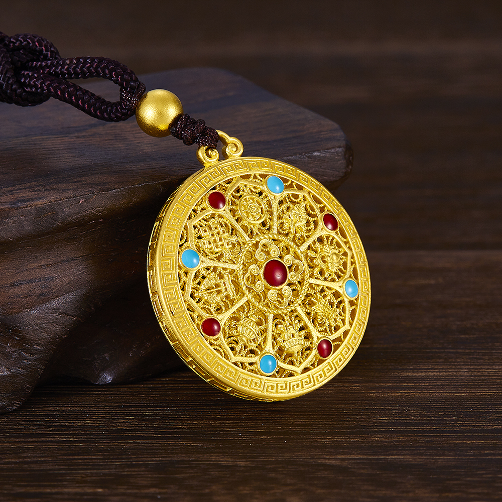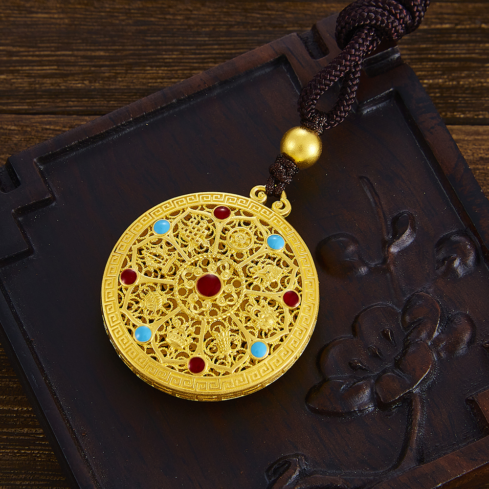 【限时克减150元】足金999 #八宝罗盘 #小红书 古法挂绳倒模花丝珐琅八方祥瑞福字八宝罗盘吊坠(含珠子)(YGFDZ00199)补差价)预售产品下单后不退款不退货不换货不补差价