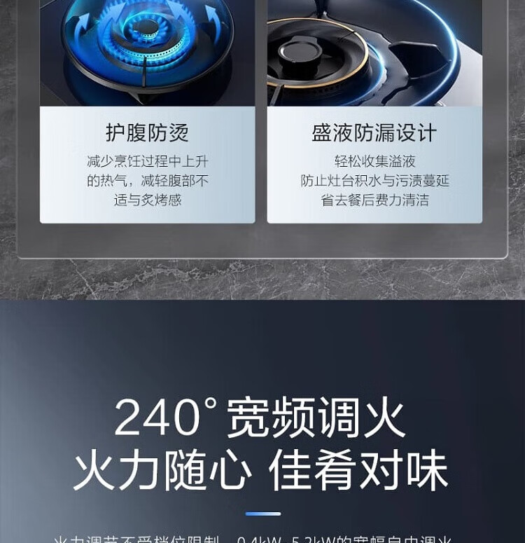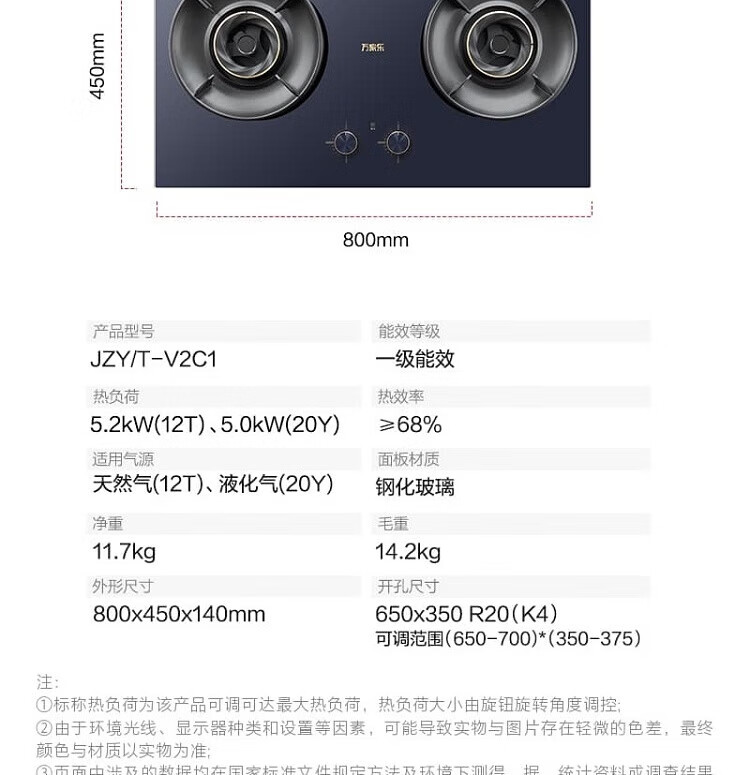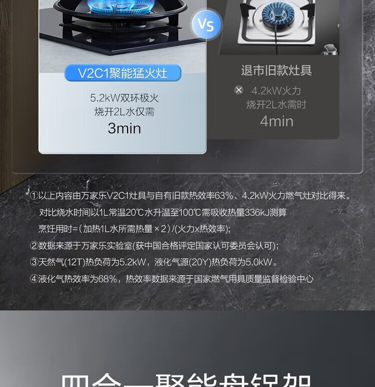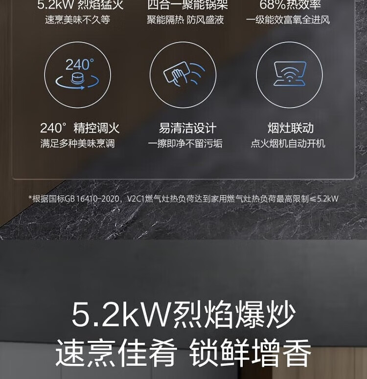 万家乐新品燃气灶JZT/Y-V2C1深邃蓝外观5.2KW大火力68%超高能效烟灶联动 5.2KW新品JZT-V2C1天然气 【粤湾】【双十一】