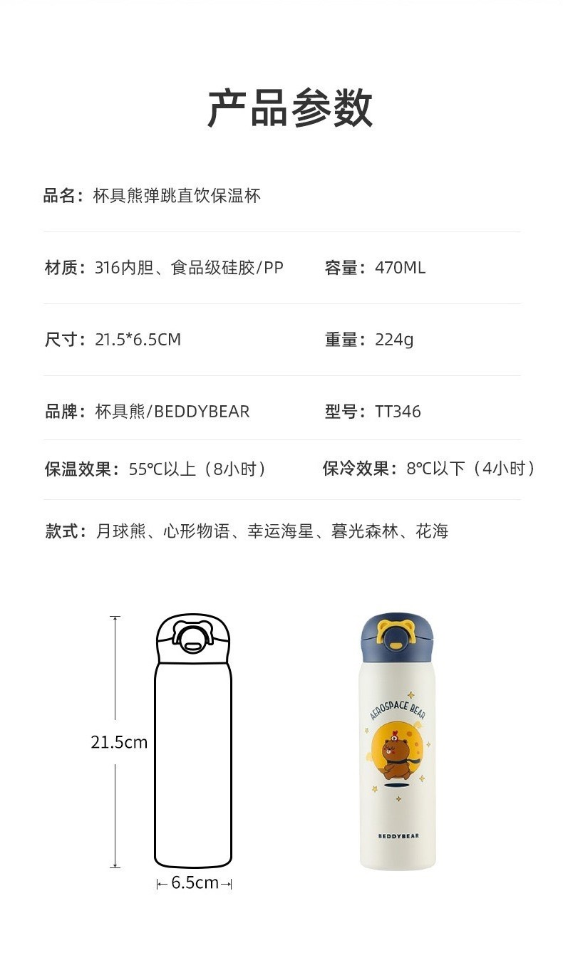 杯具熊儿童成人新款弹跳保温杯系列470mlBJX-10