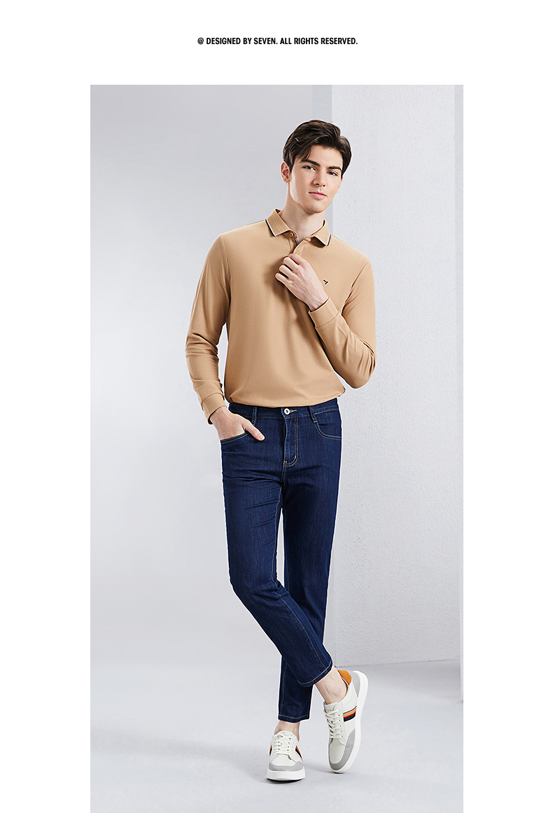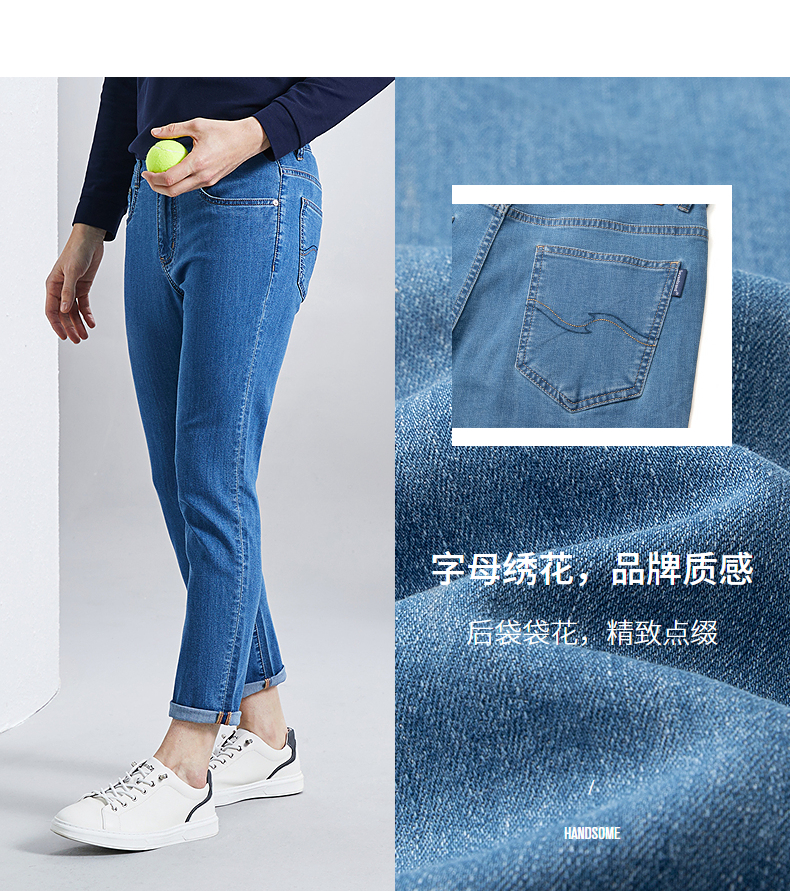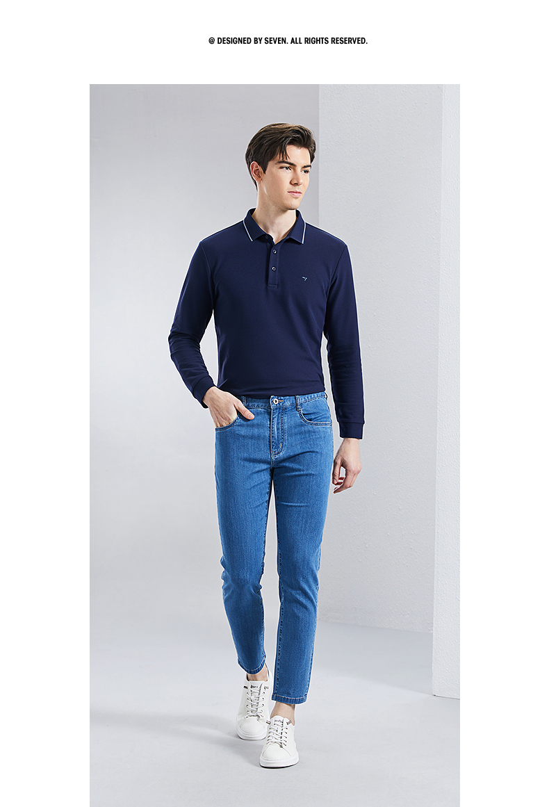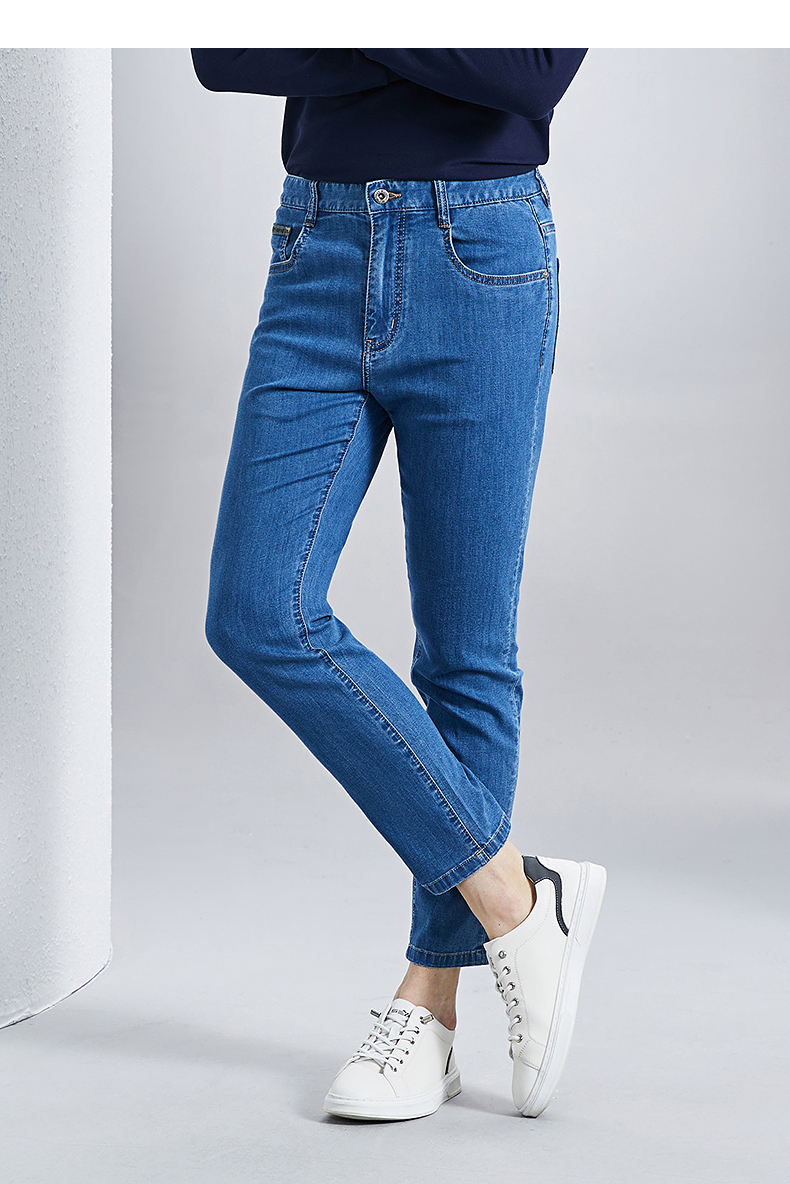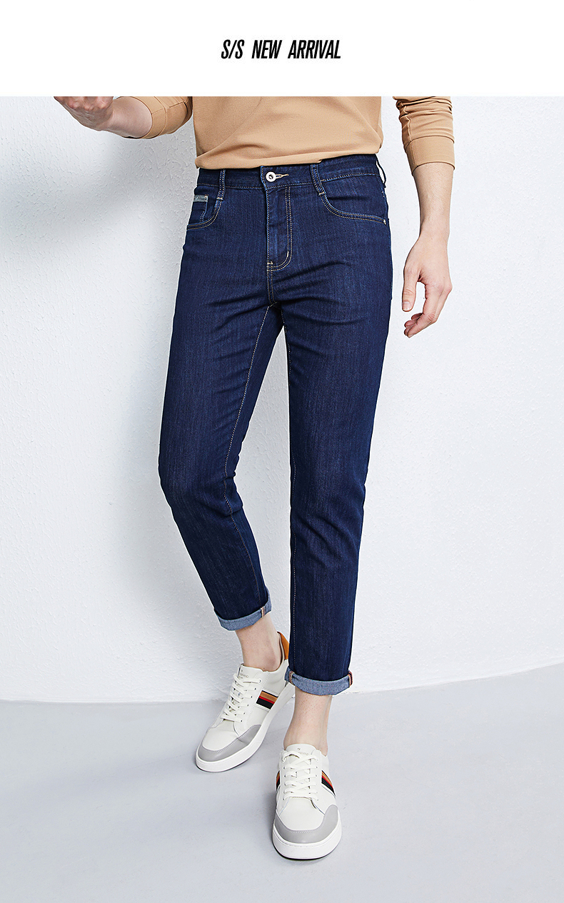 【含桑蚕丝】柒牌九分牛仔裤男2024春季新款中腰休闲中青年长裤子 126H71180