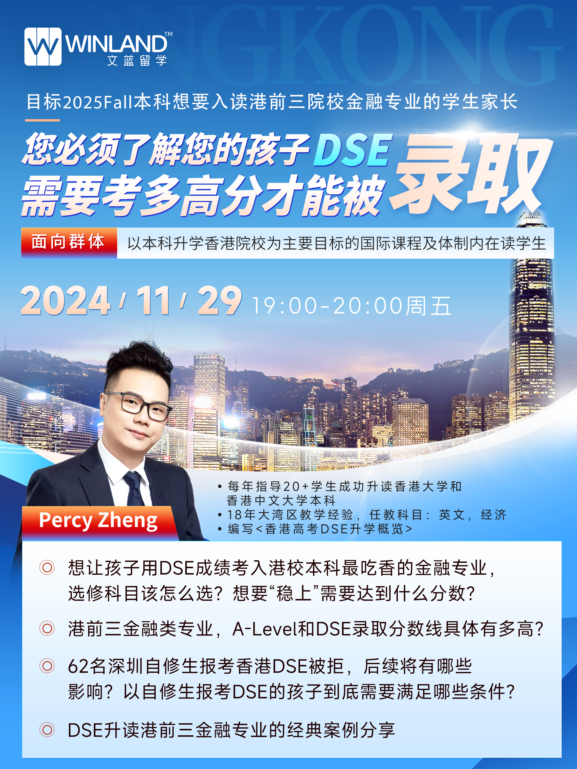 【11.29】目标2025Fall本科想要入读港前三院校金融专业的学生家长,您必须了解您的孩子DSE需要考多高分才能被录取!