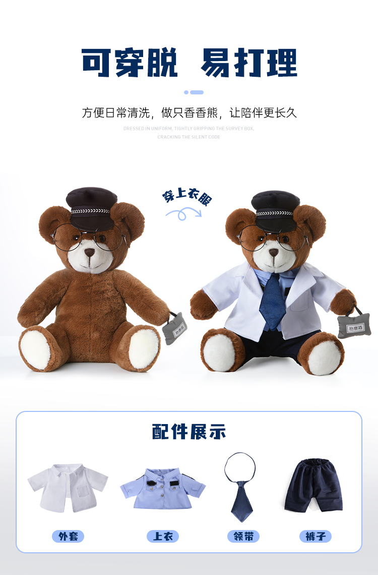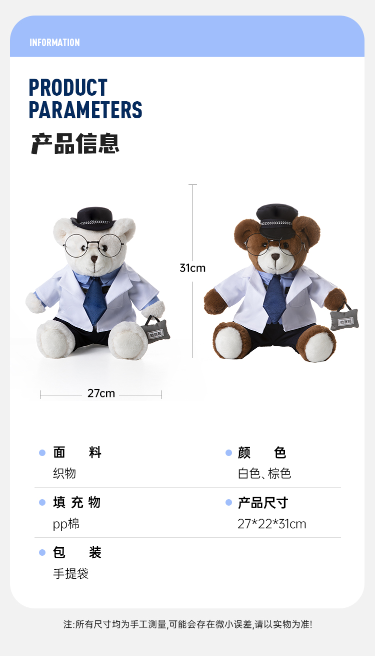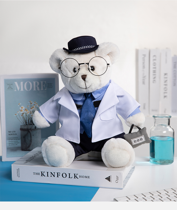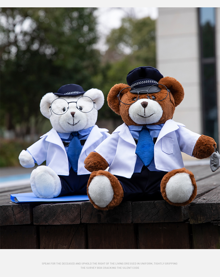 【实付满199送钥匙扣】【法医大白大壮】可定制创意毛绒职业小熊公仔儿童玩具服装可脱送礼礼物