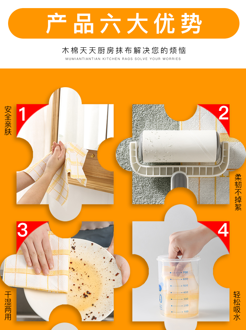 木棉天天厨房抹布10片装30*30厘米*5包装干湿两用