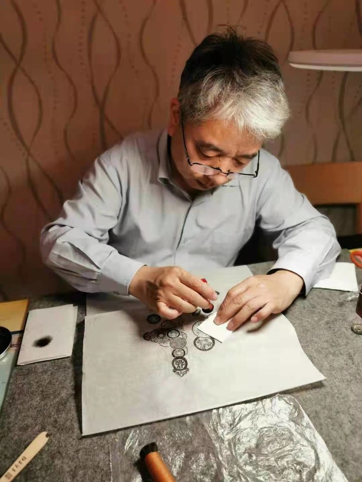 古泉书馆工作室特别邀请北京市钱币学会秘书长李志东先生为泉友们设计并亲自制拓额这幅非常珍贵的“牛”字叠拓 。
