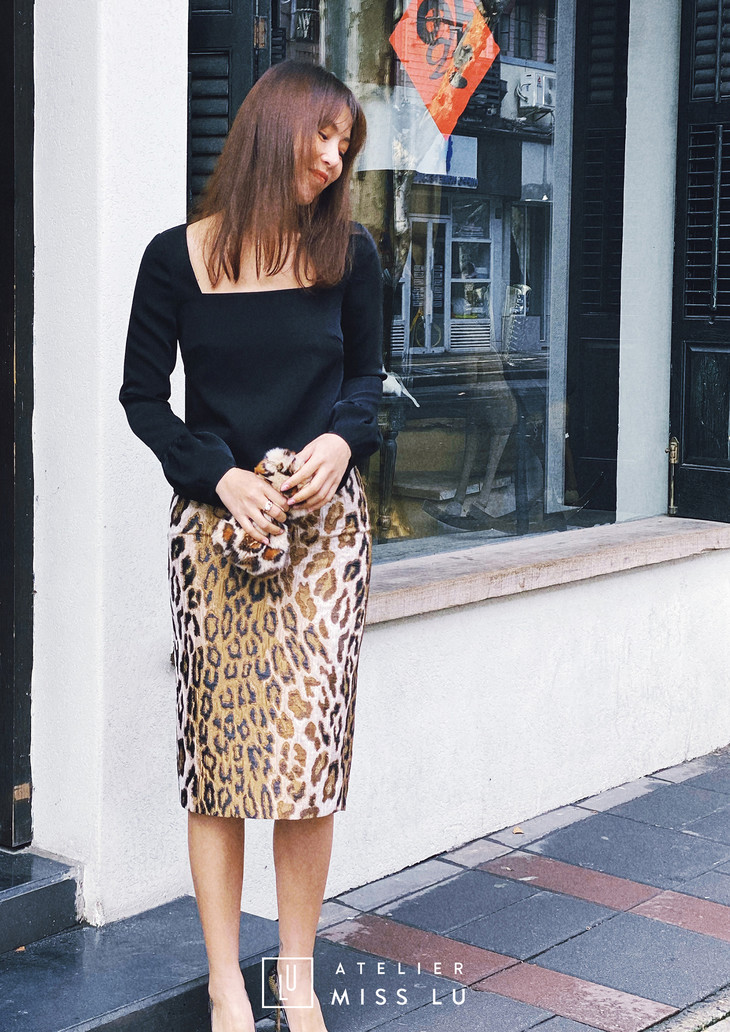 AtelierMissLu /Rosara-包臀紧身豹纹半裙/00072