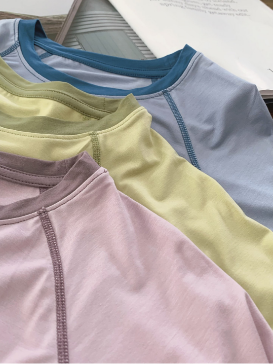 50支优可丝面料,柔软爽滑到极致~3个冰淇淋系撞色超治愈! 100%优质木源原料♻️环保可降解 具有较好的吸水性、透气性、亲肤性 宝宝穿着毫无束缚感 无论居家玩耍 睡觉 都能感受它的柔软度 像是掉进云朵里☁️ 奶油般触感 所有宝贝都必须拥有!120--160码
