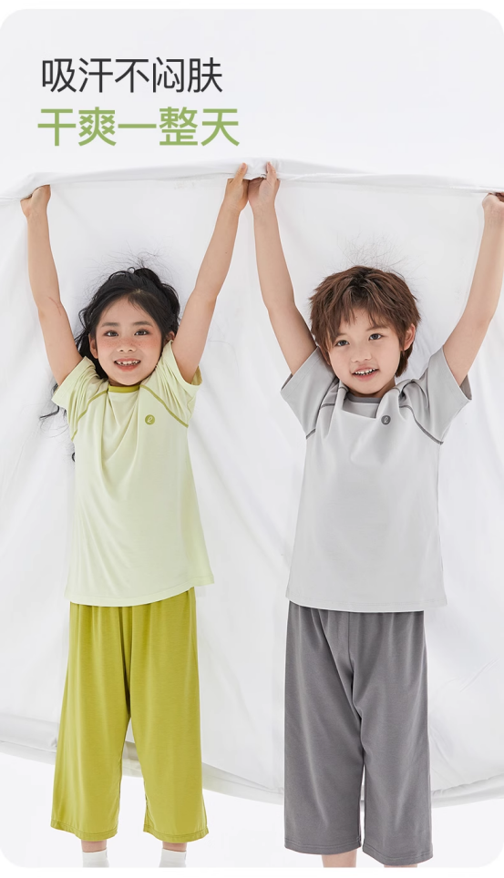 🌿把“柔软夏天”带回家【儿童优可丝柔柔家居服系列】触感如云朵般轻盈软糯|比棉更透气|比丝绸更亲肤🔥体验新升级🌬️敏感肌宝宝放心入!