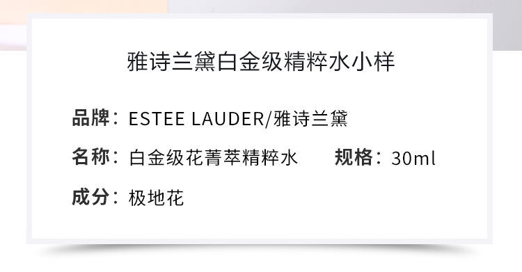 【爆款超低价预售 急单慎拍】雅诗兰黛白金级花菁萃紧颜焕活精粹水精华水补水抗皱30ml中小样