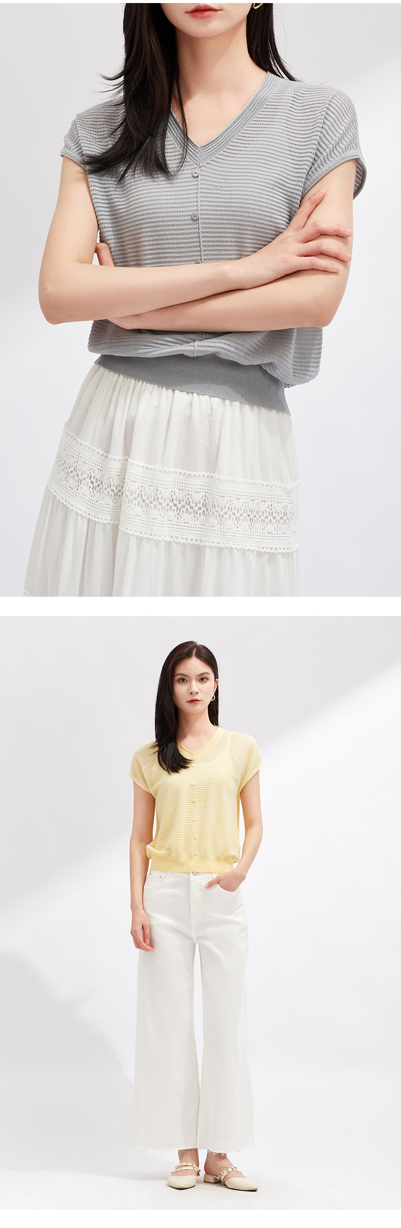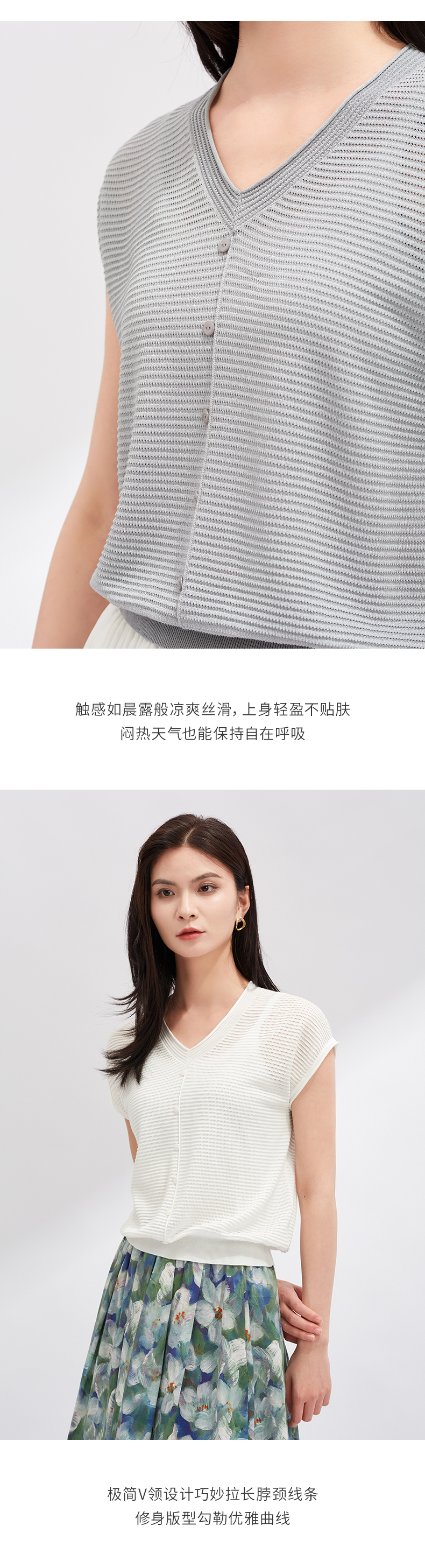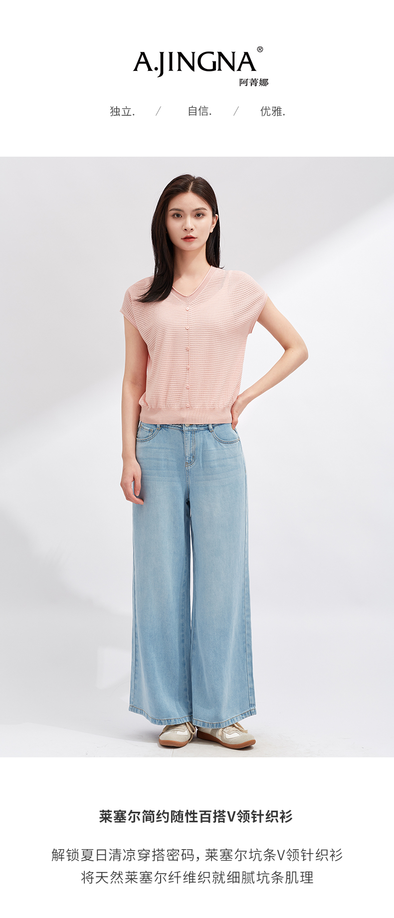 【夏日清凉】阿菁娜莱塞尔简约随性百搭V领针织衫F30X302016