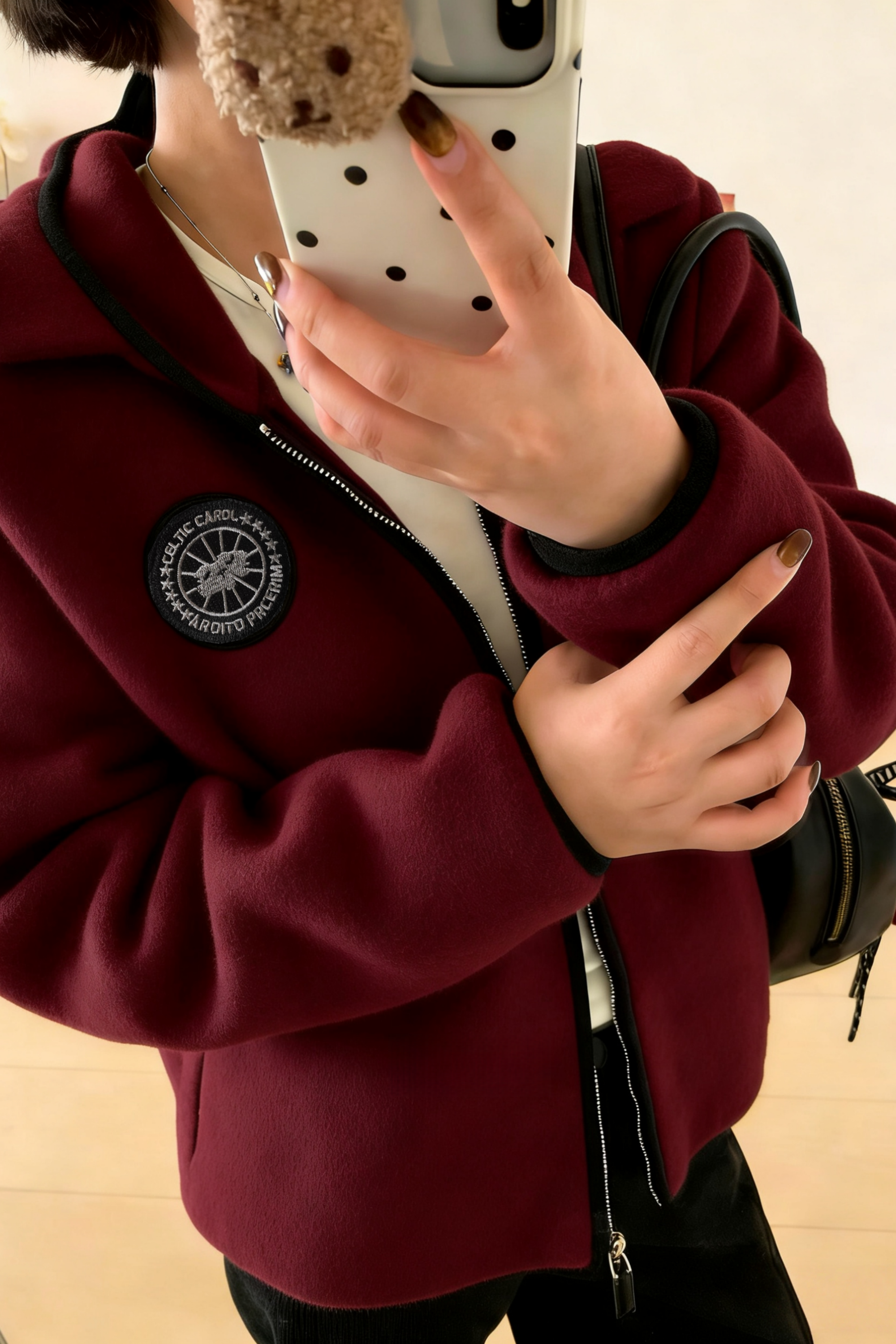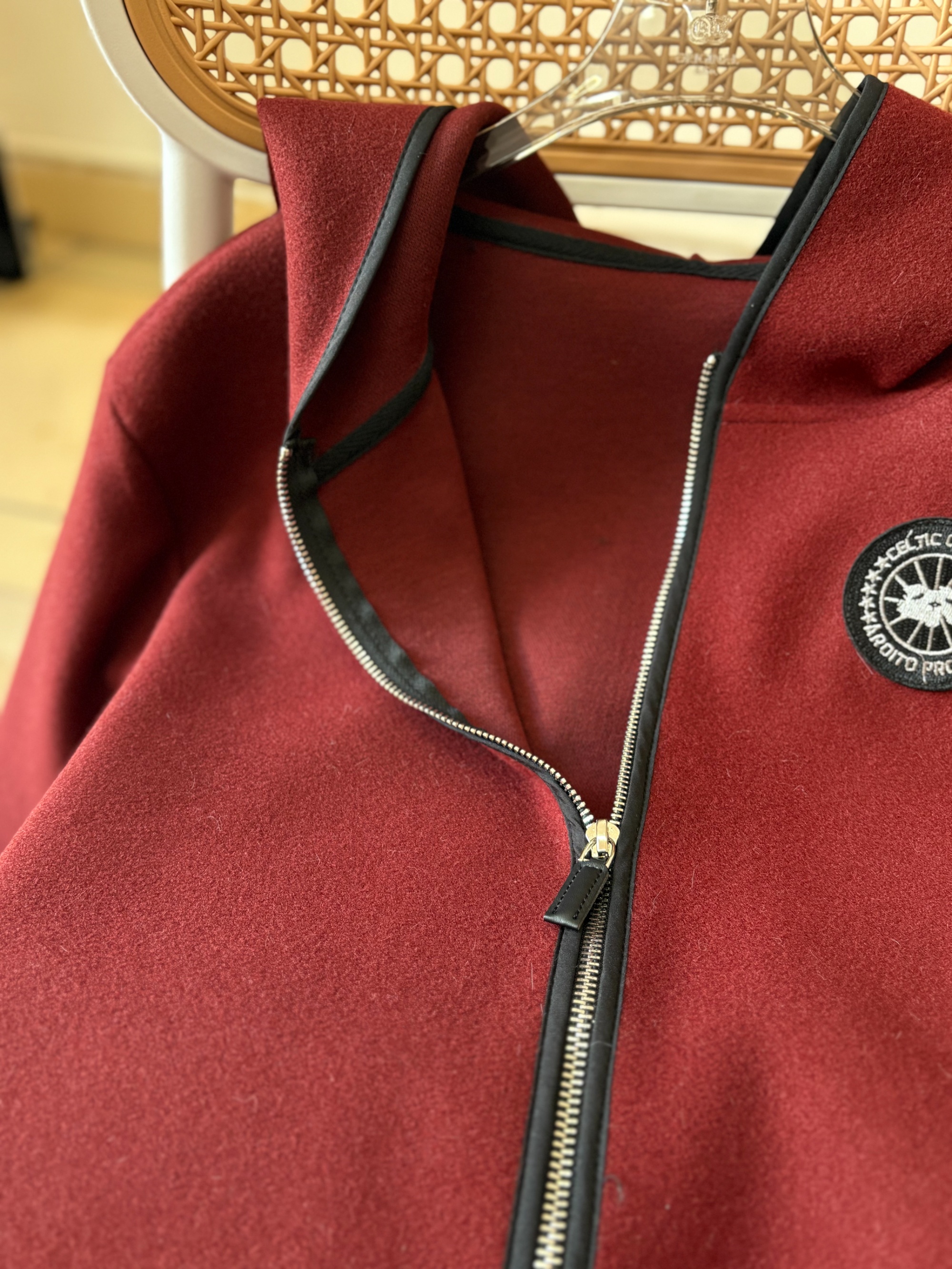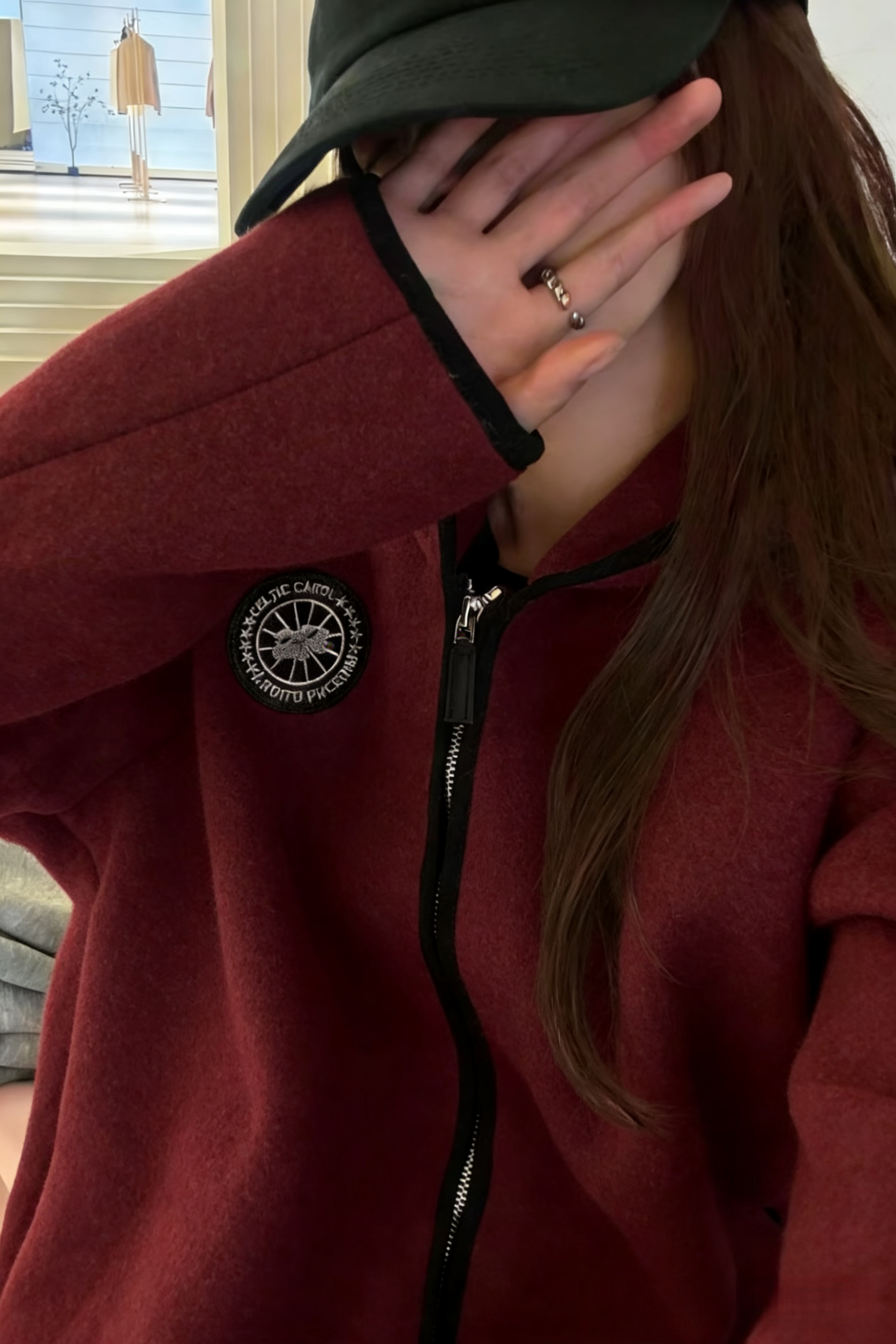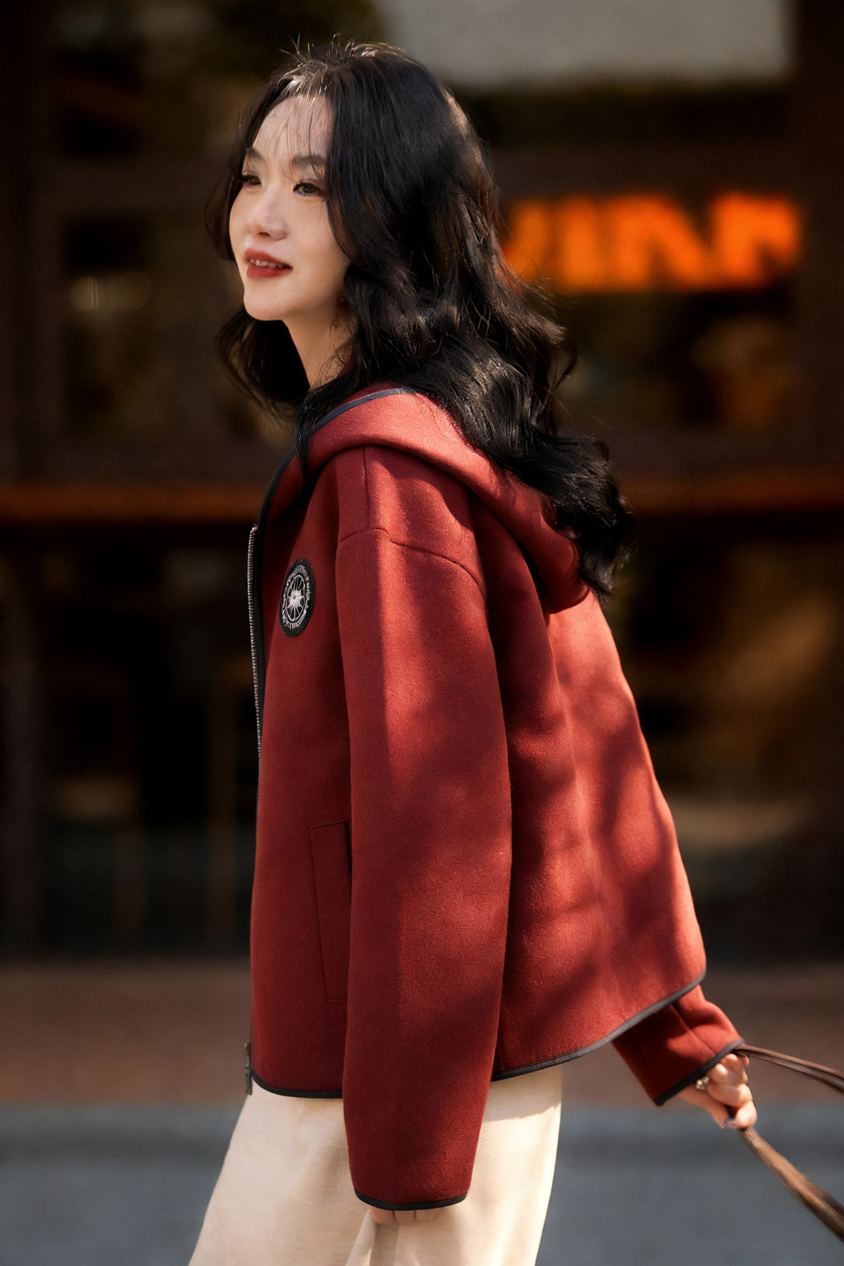 LONGNVFAIR安可拉红毛呢休闲阔型拉链外套 街头潮流感 微廓形H版剪裁超藏肉