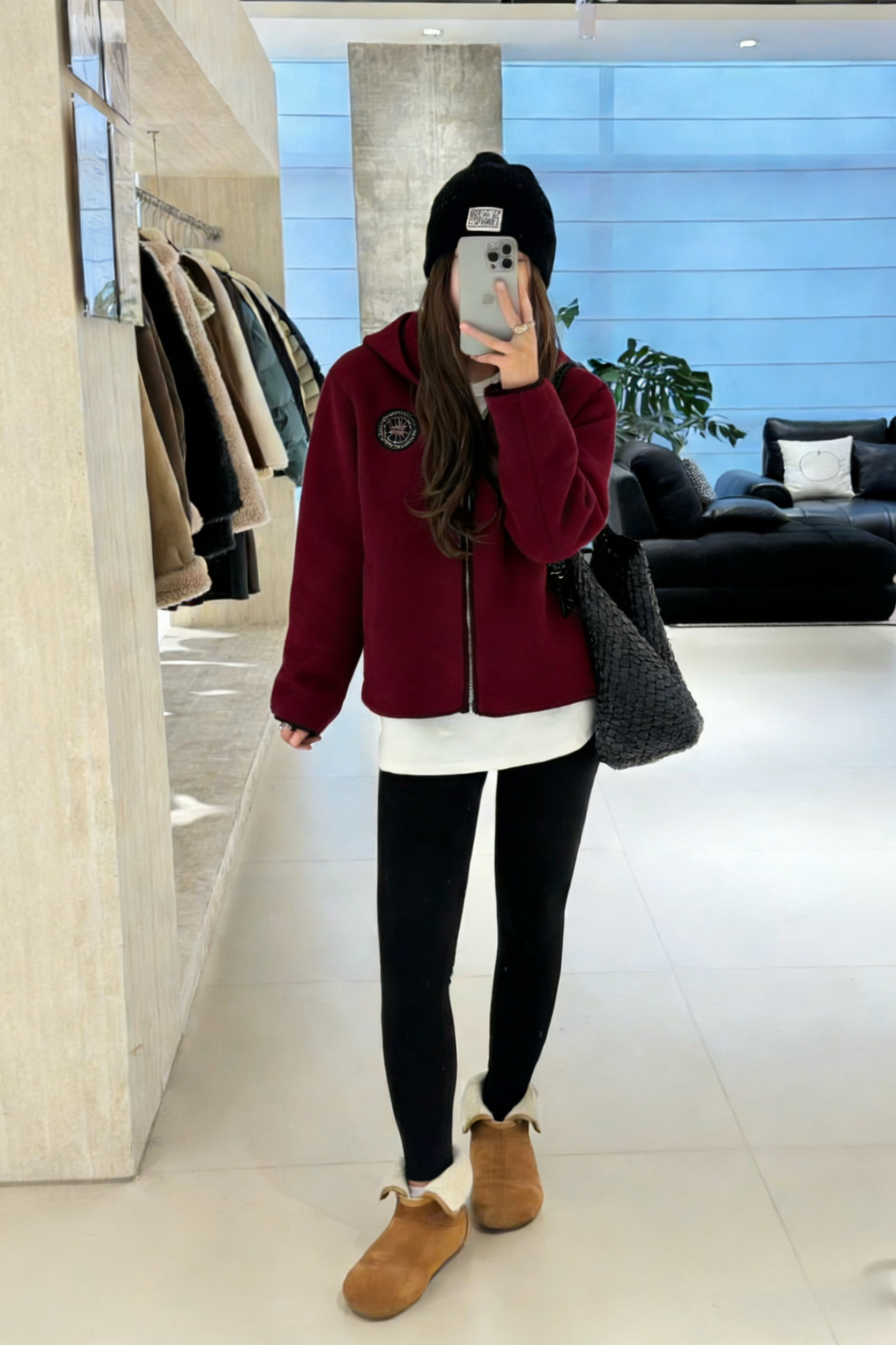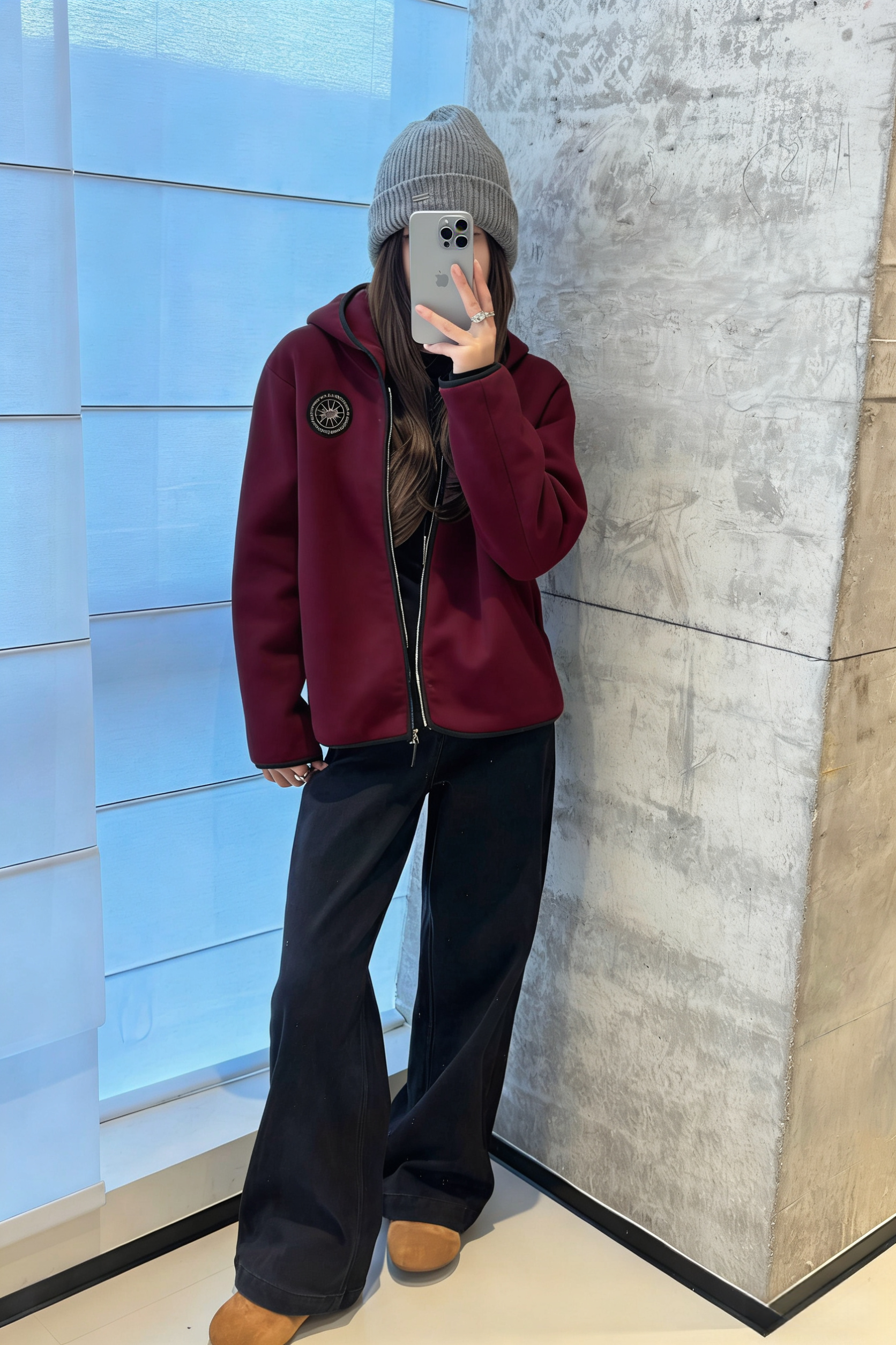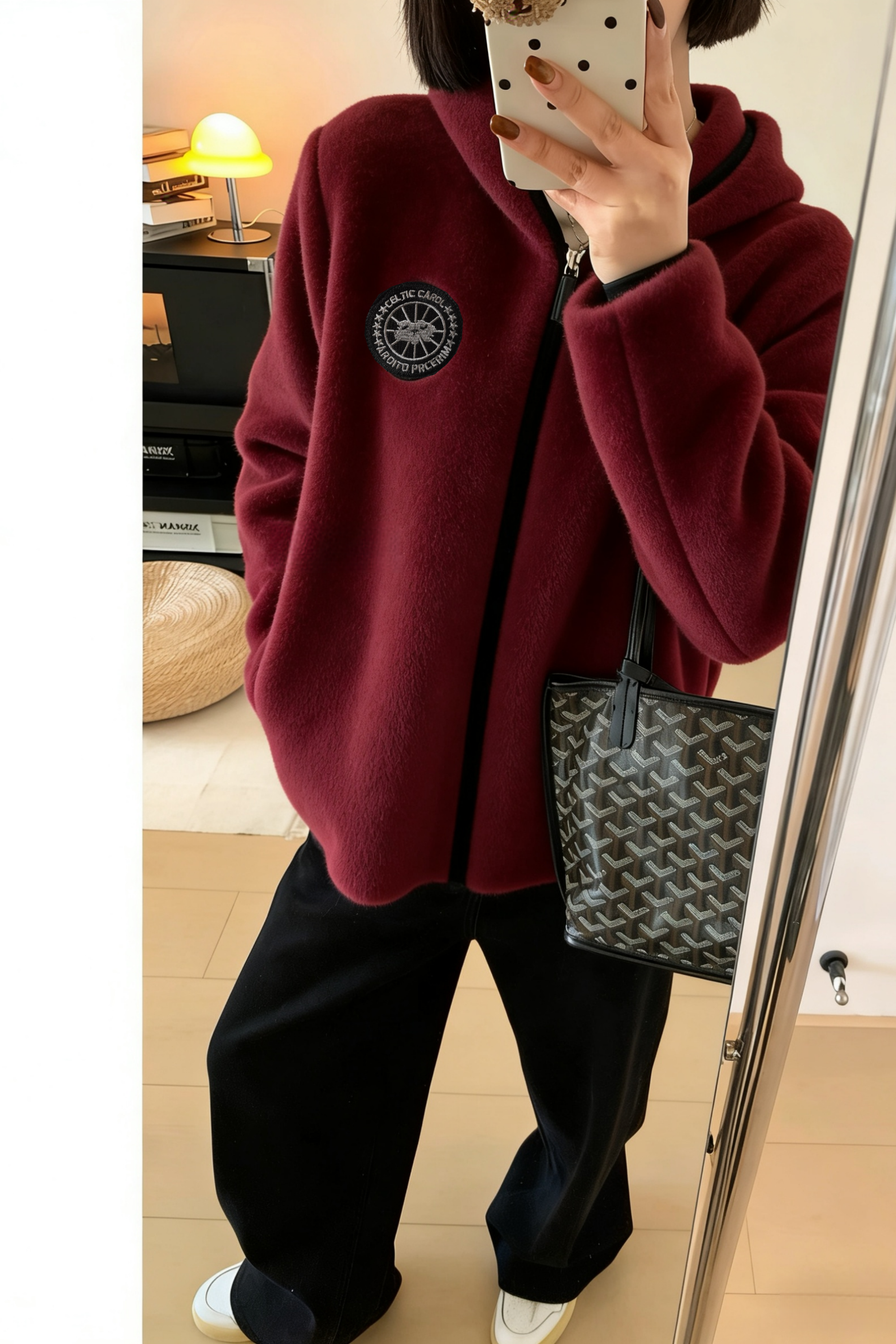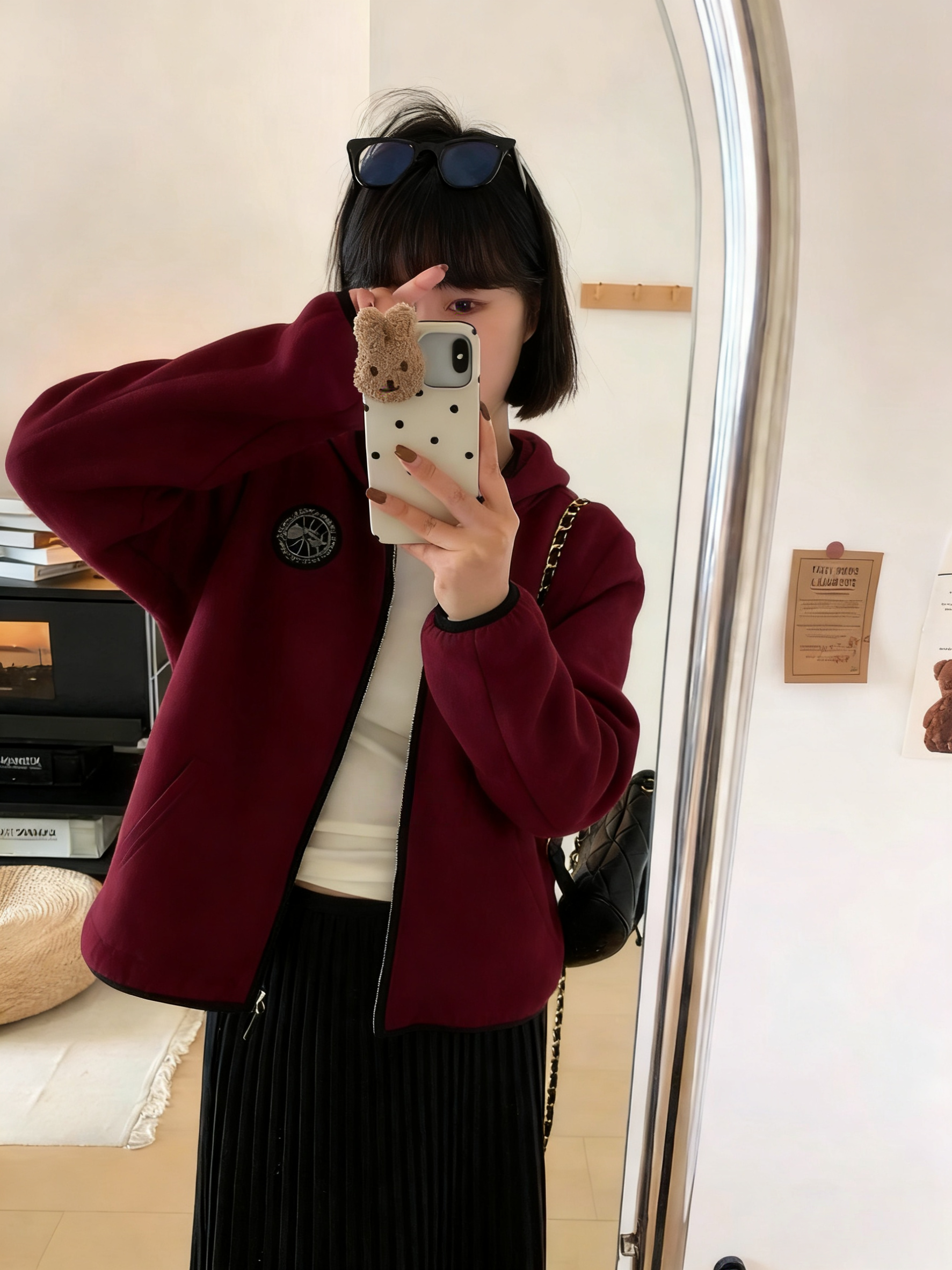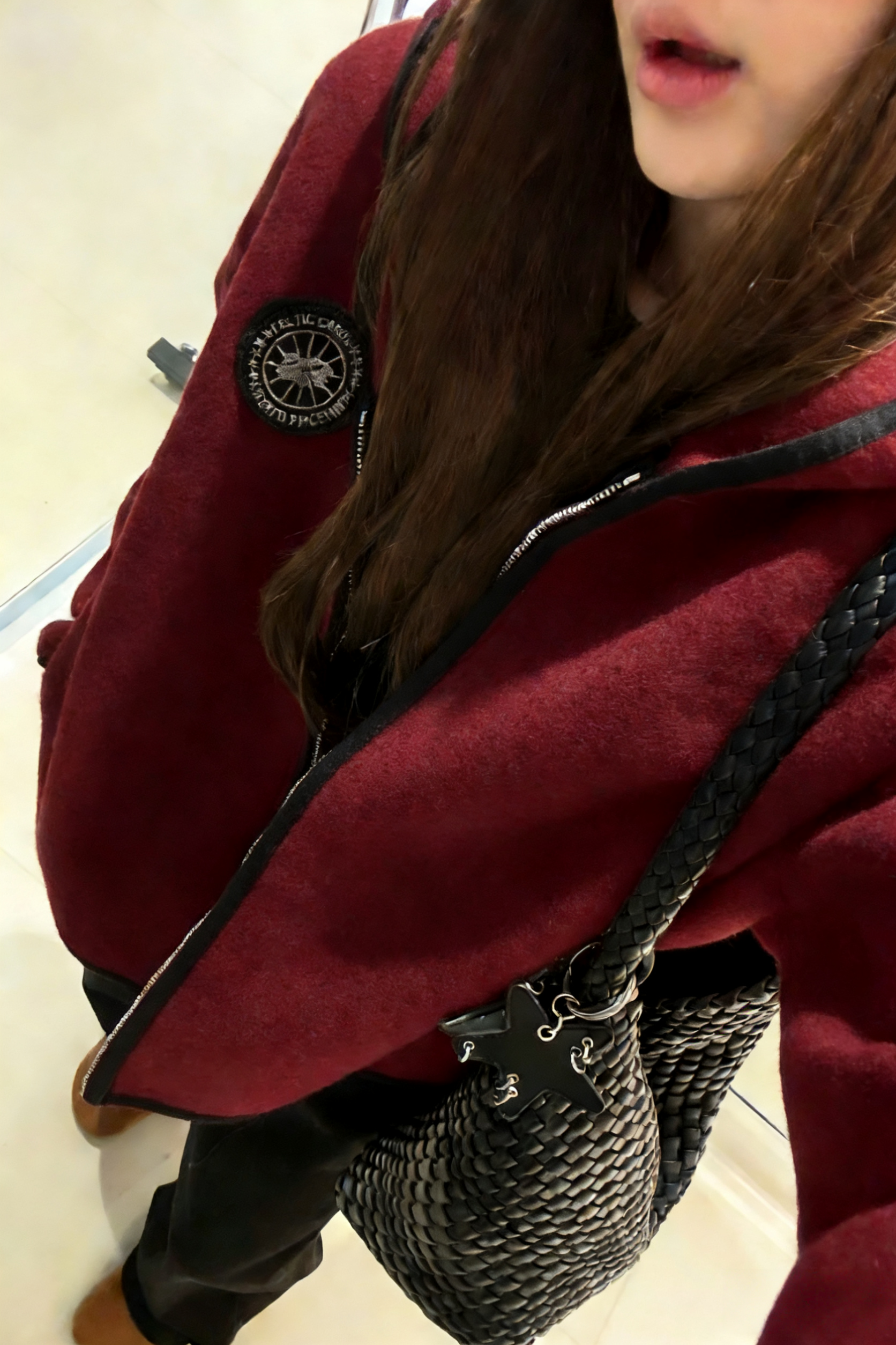LONGNVFAIR安可拉红毛呢休闲阔型拉链外套 街头潮流感 微廓形H版剪裁超藏肉