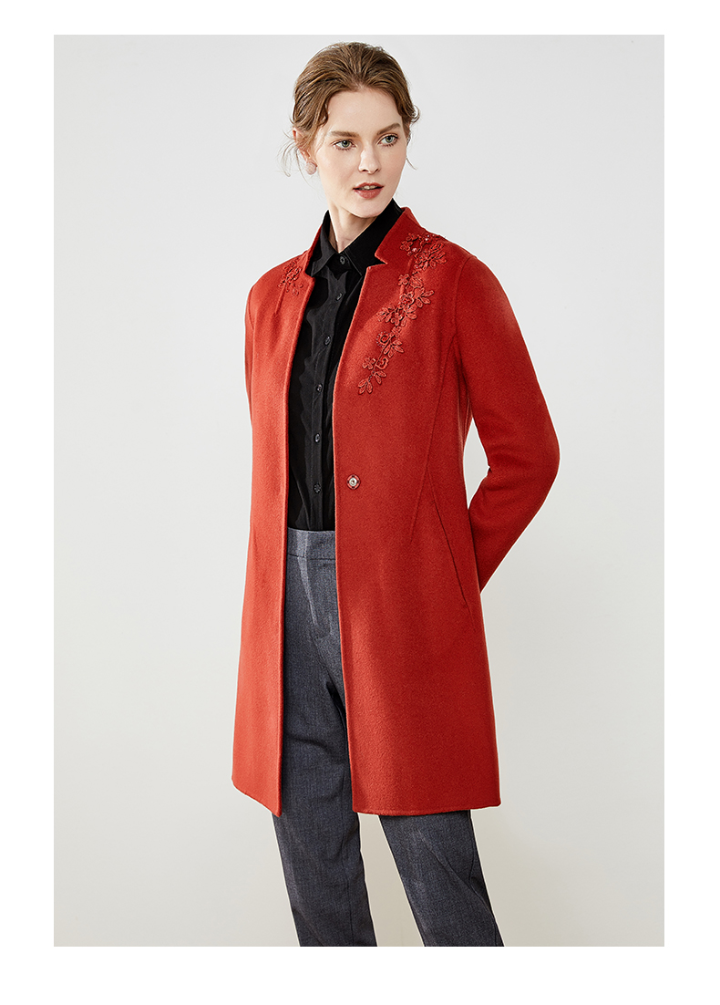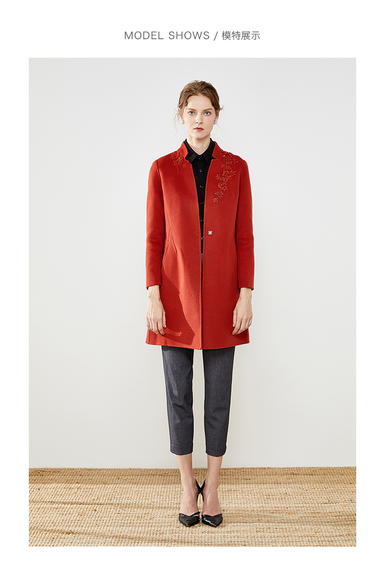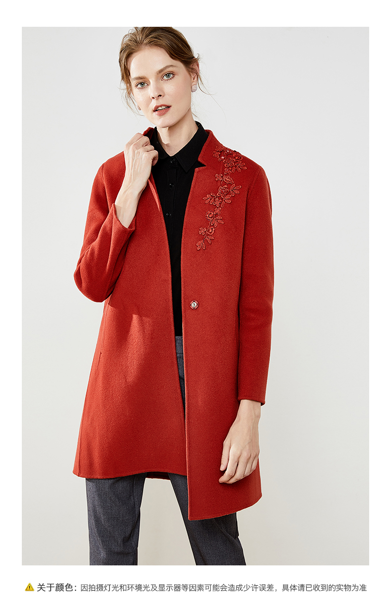 佐尔美秋冬新款纯色简约中长款羊毛双面呢大衣E74SM15