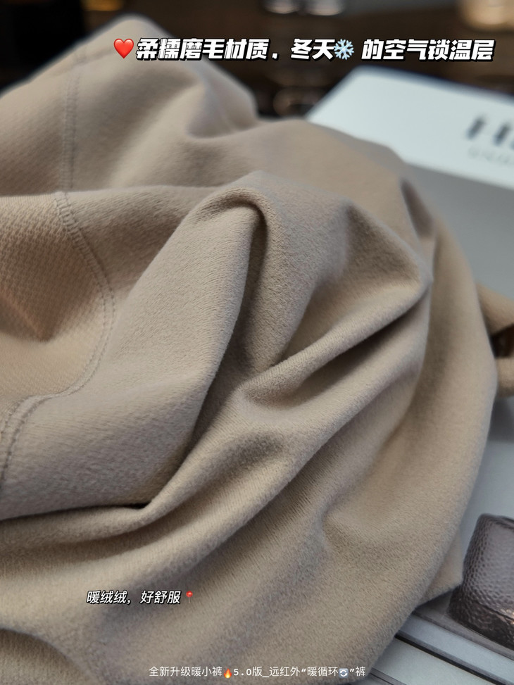🎬一触即暖,像把云朵穿在身上① 特调磨毛工艺,在表面磨出一层细腻的绒毛,织出细密温暖的“第二层肌肤” ✅接触肌肤的瞬间,不是凉意,而一触即暖🌞的温柔 同时这层绒毛形成的静止空气层,能有效锁住💋身体热量,保暖效果1+1