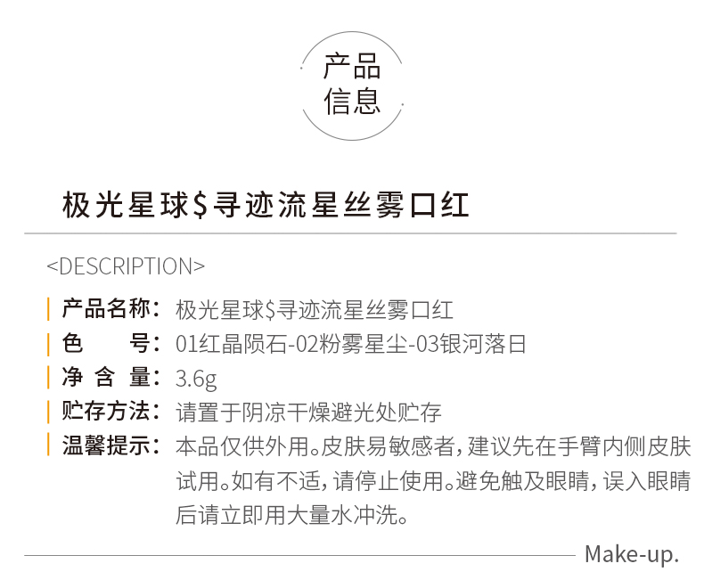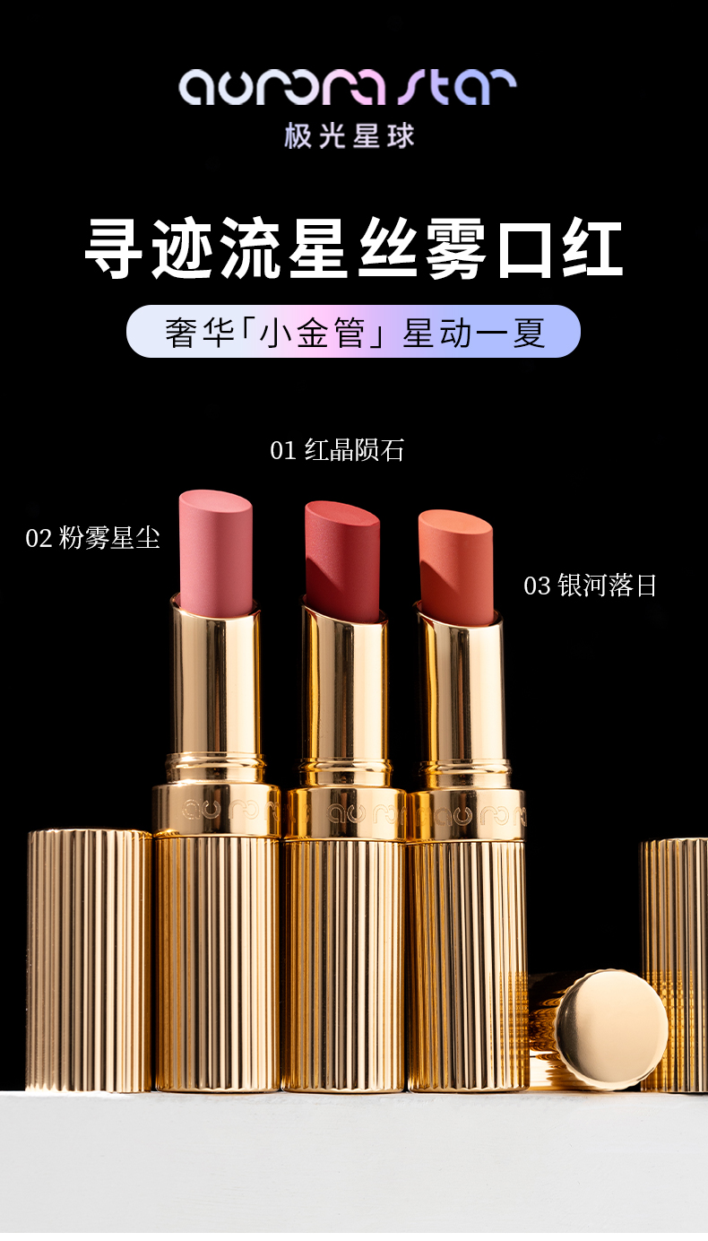 极光星球寻迹流星丝雾口红-01红晶陨石/02粉雾星尘/03银河落日(230838-230839-230840)3.6g