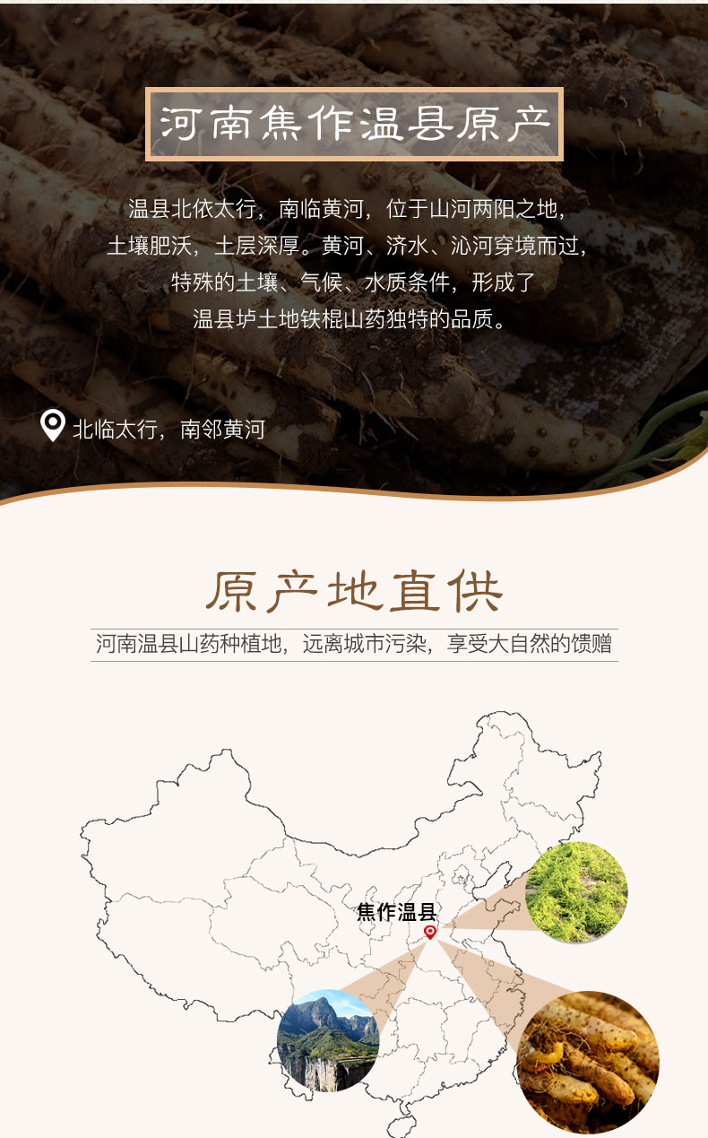 土壤、空气、光照、降雨量,水质等各方面因素共同孕育出了营养价值丰富的——温县垆土地铁棍山药。