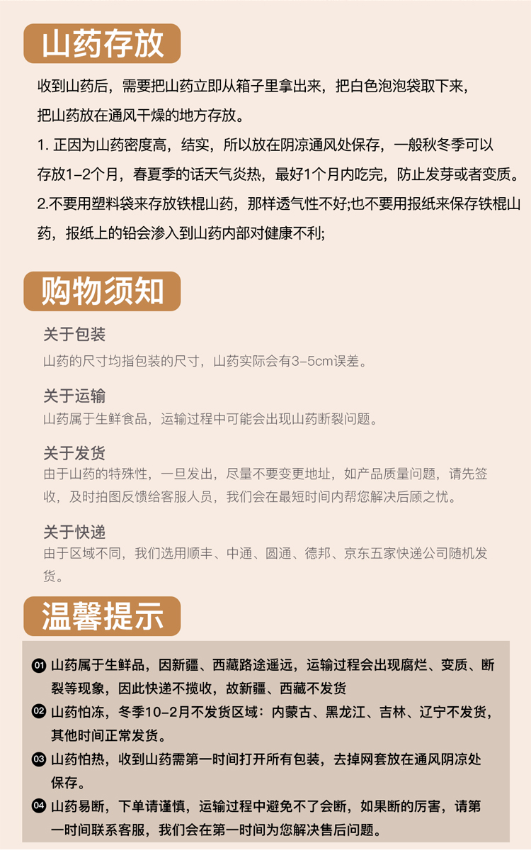【不发货区域】因冬季严寒天气,鲜山药无有效防冻运输方案,为避免冻损,即日起至次年气温回暖