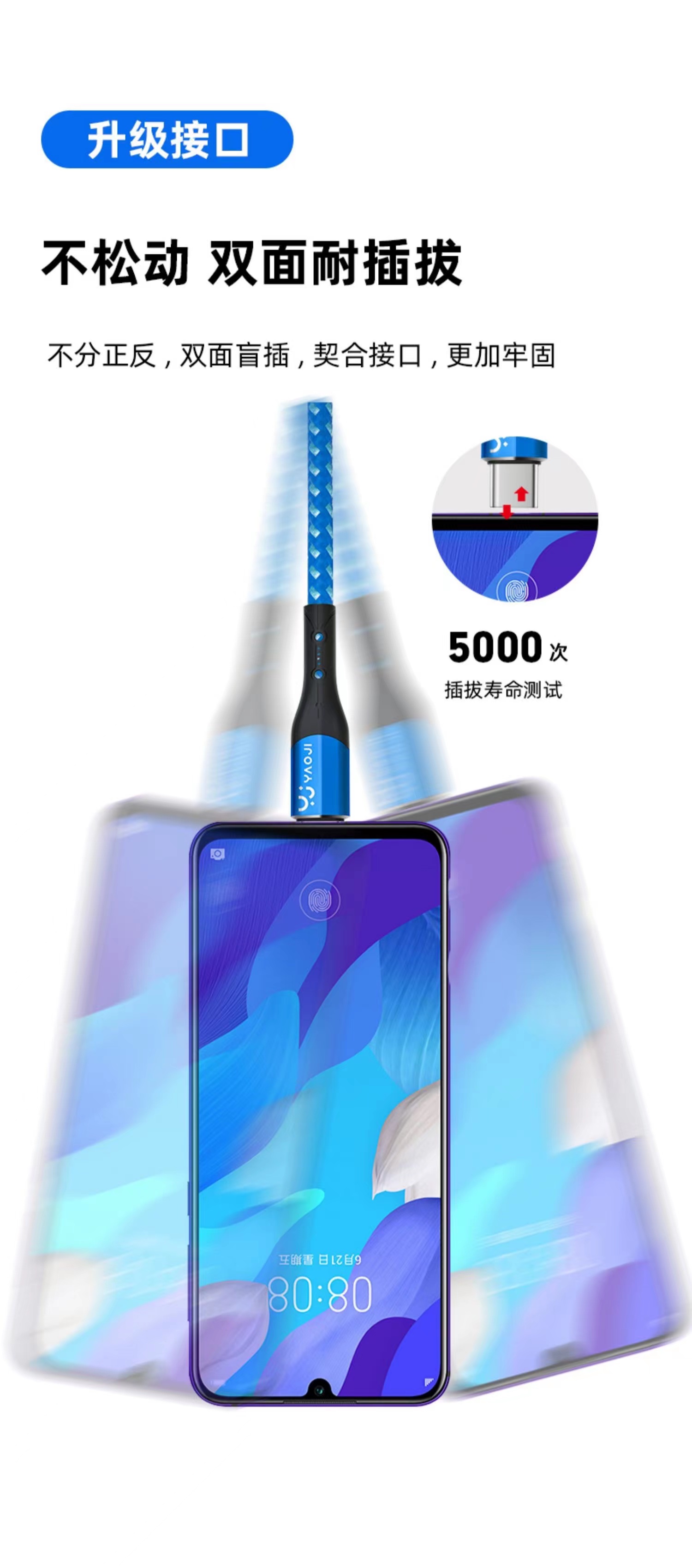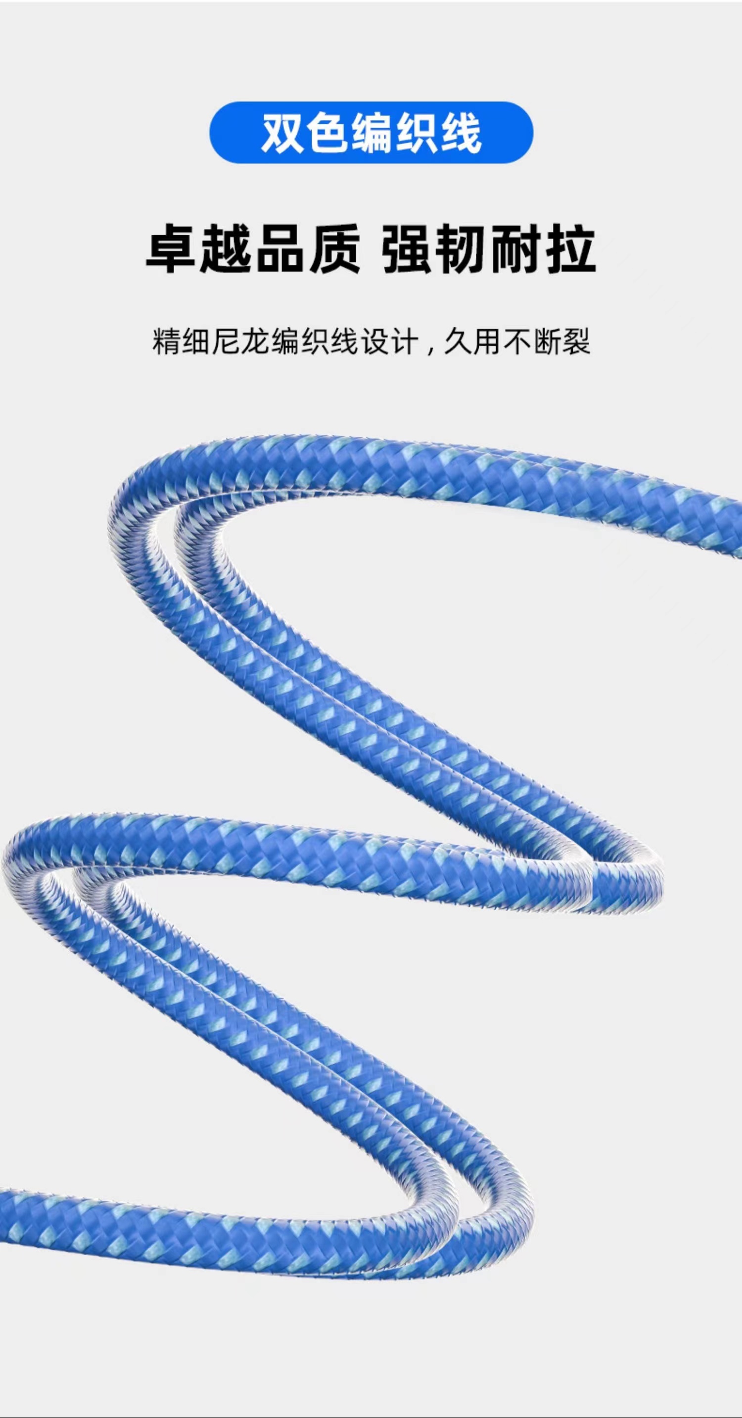 2:高密度编织线,不会起皮断裂,比起普通的数据线更加耐磨