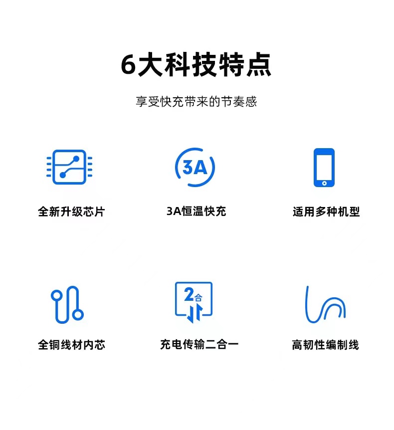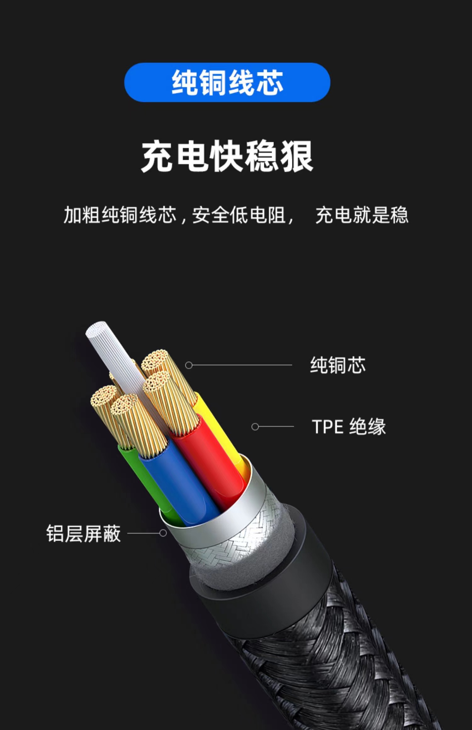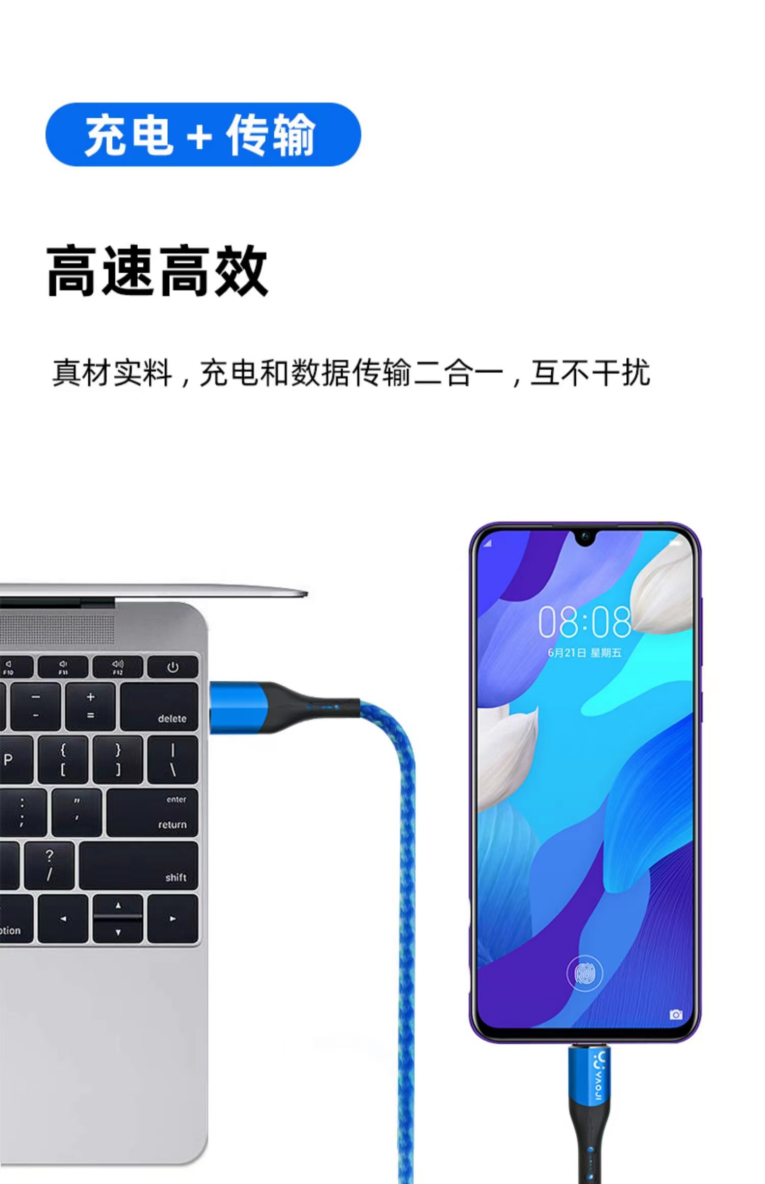 1:高速高效,真材实料,充电和数据传输二合一,互不干扰