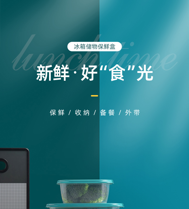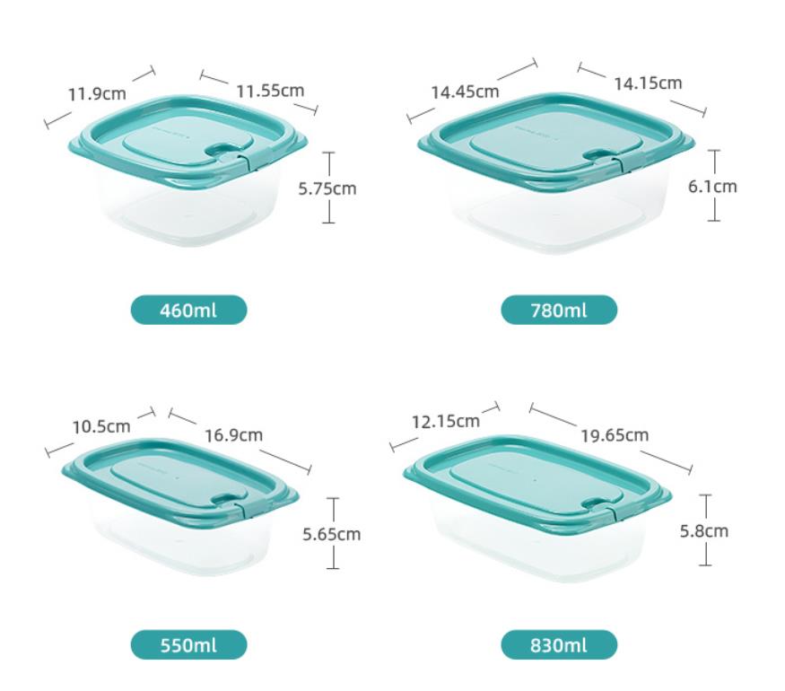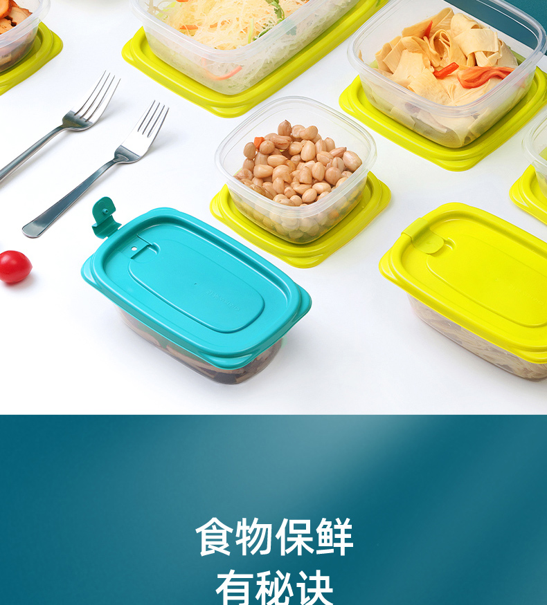茶花塑料保鲜盒家用冰箱收纳盒密封饭盒食品级(贝格组合装02/03/04/05)