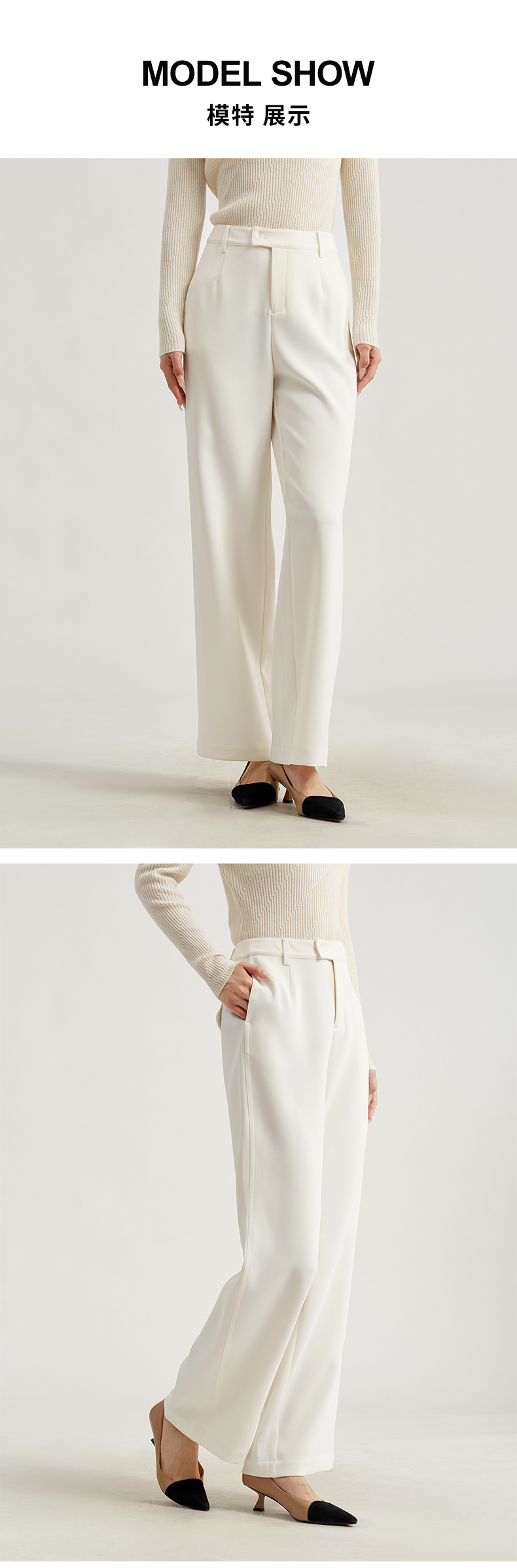 【羊毛混纺】阿菁娜醋酸羊毛高腰垂顺微喇裤F30D210005