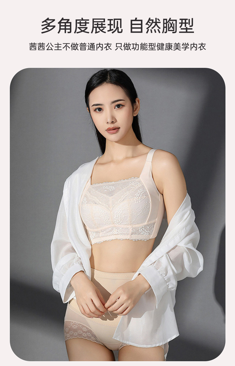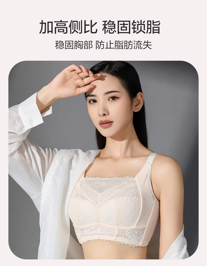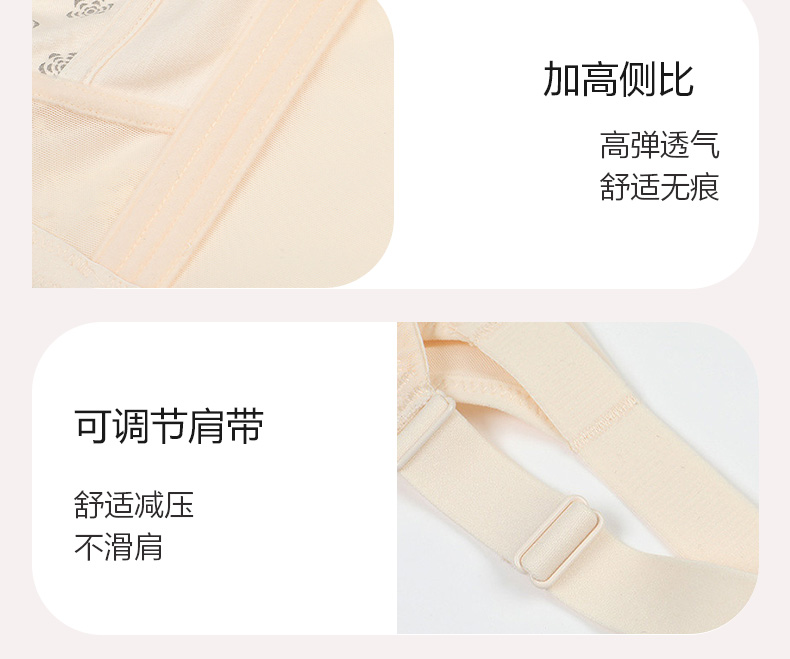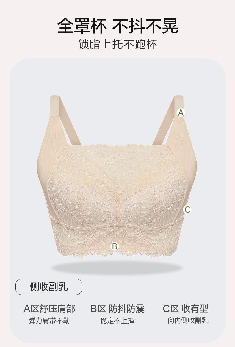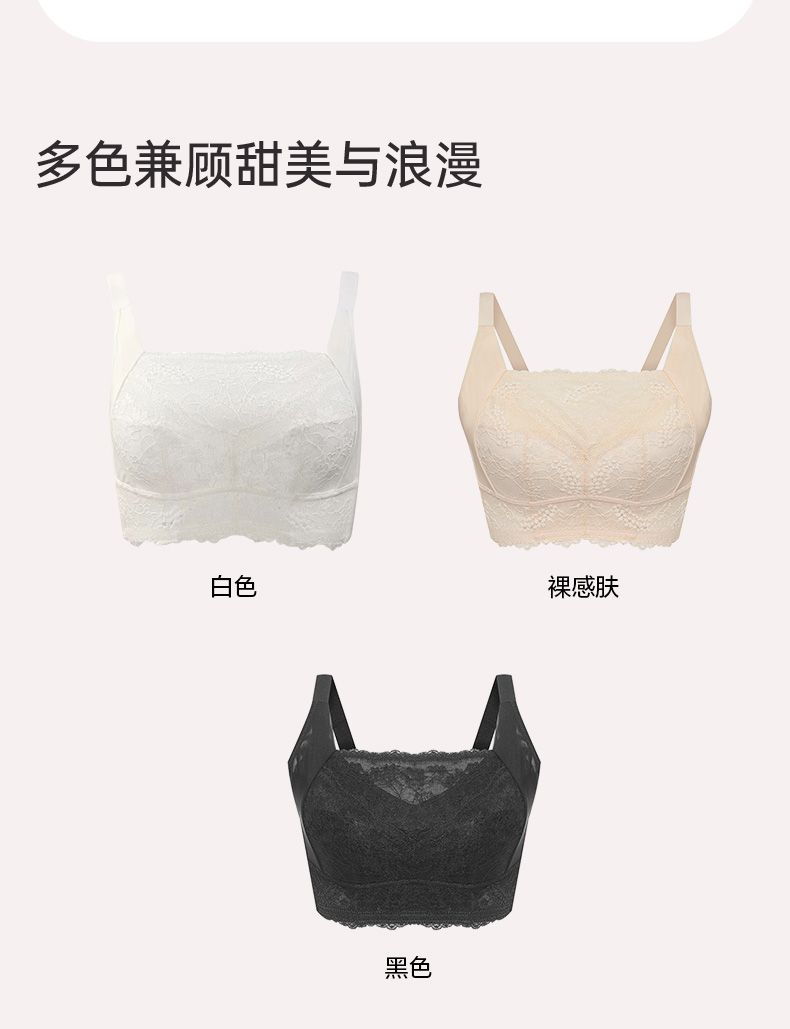 百搭王无钢圈文胸 防走光蕾丝抹胸设计 大胸显小 印磁疗功能料 大罩杯舒适承托包容 透气侧翼软骨定型 强收副乳
