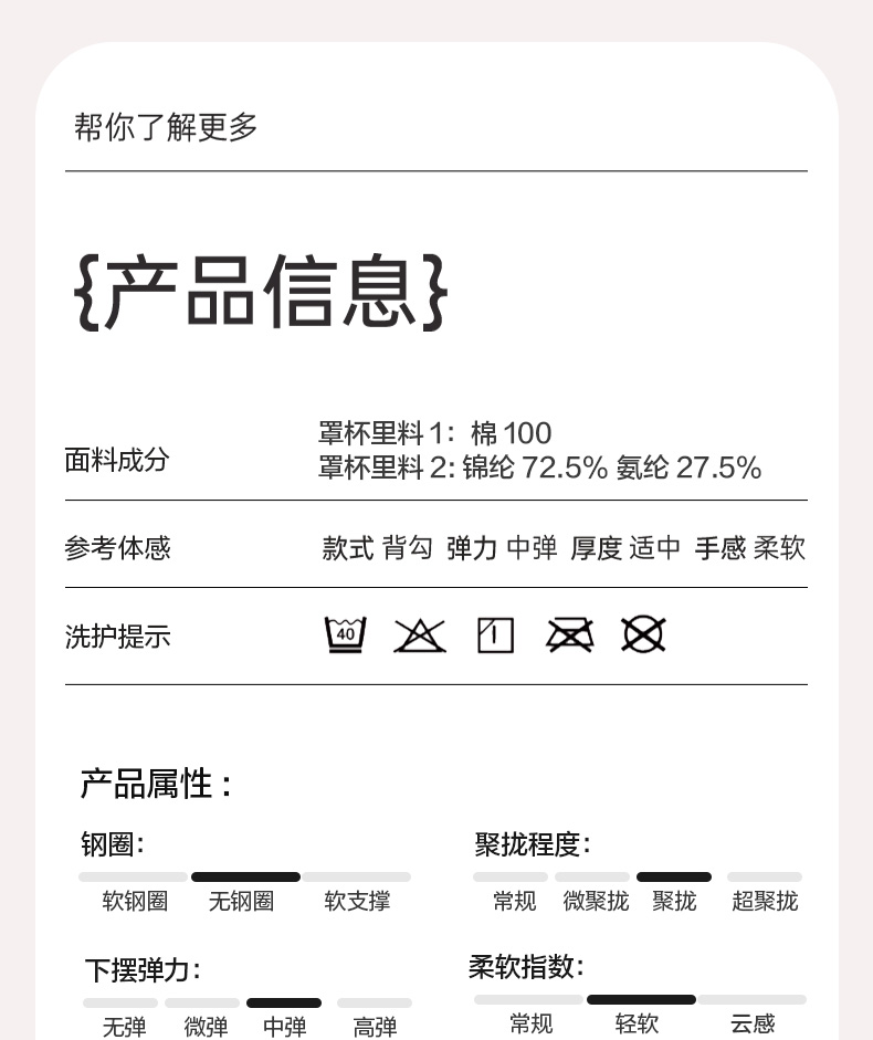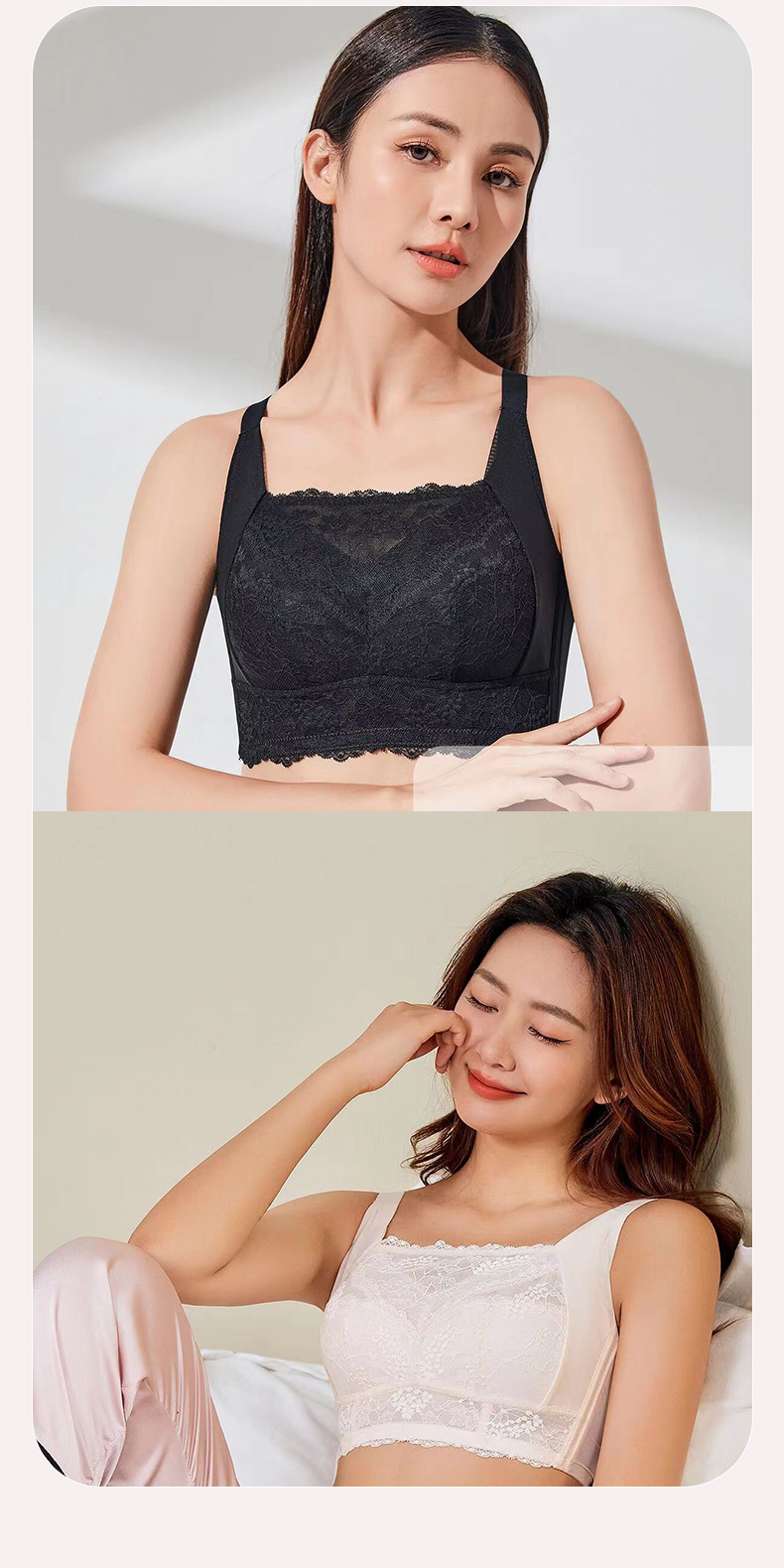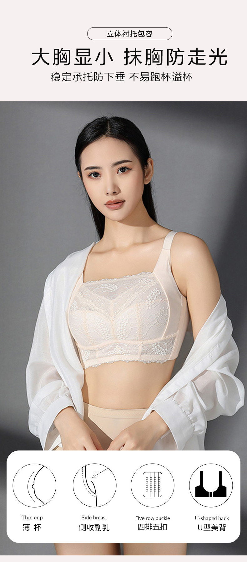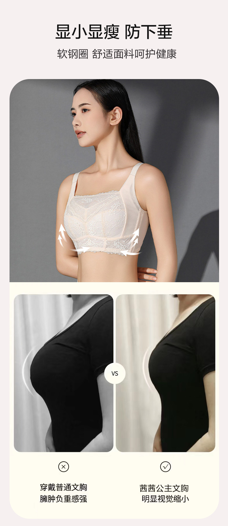 百搭王无钢圈文胸 防走光蕾丝抹胸设计 大胸显小 印磁疗功能料 大罩杯舒适承托包容 透气侧翼软骨定型 强收副乳