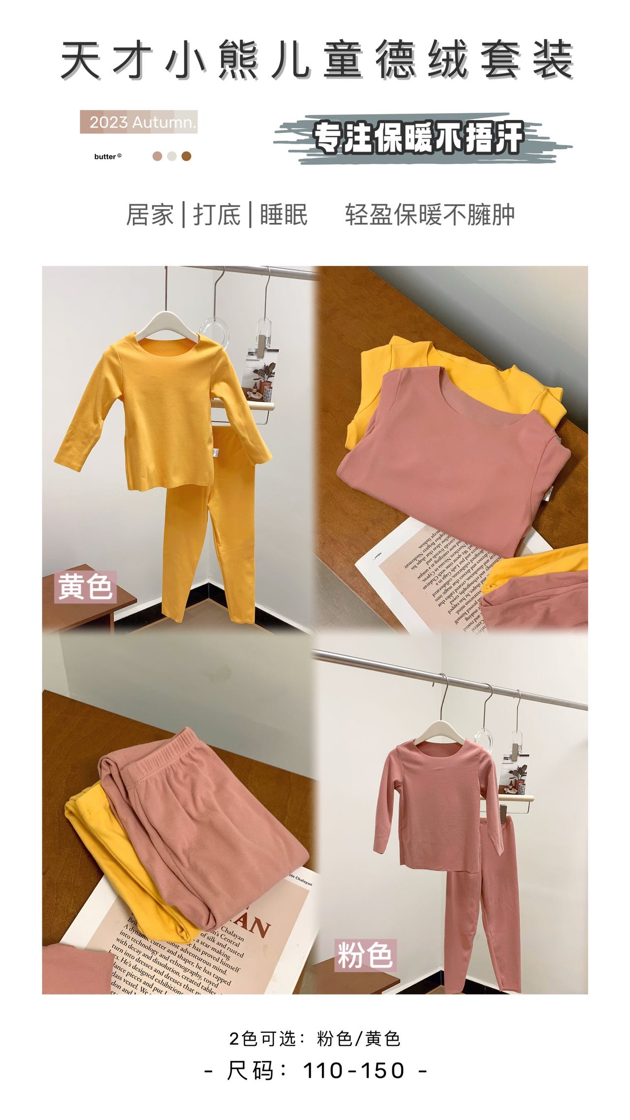 【进口德绒 赋予37度温暖肤感】天才小熊儿童德绒内衣套装