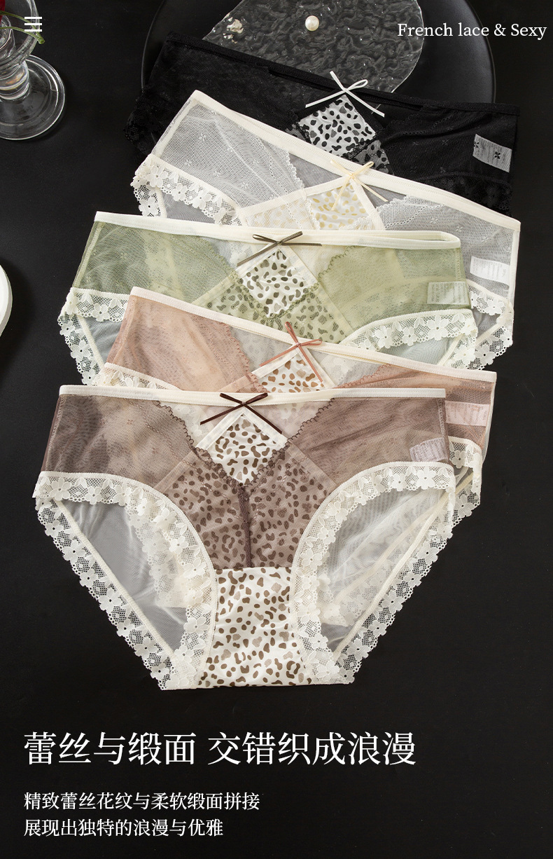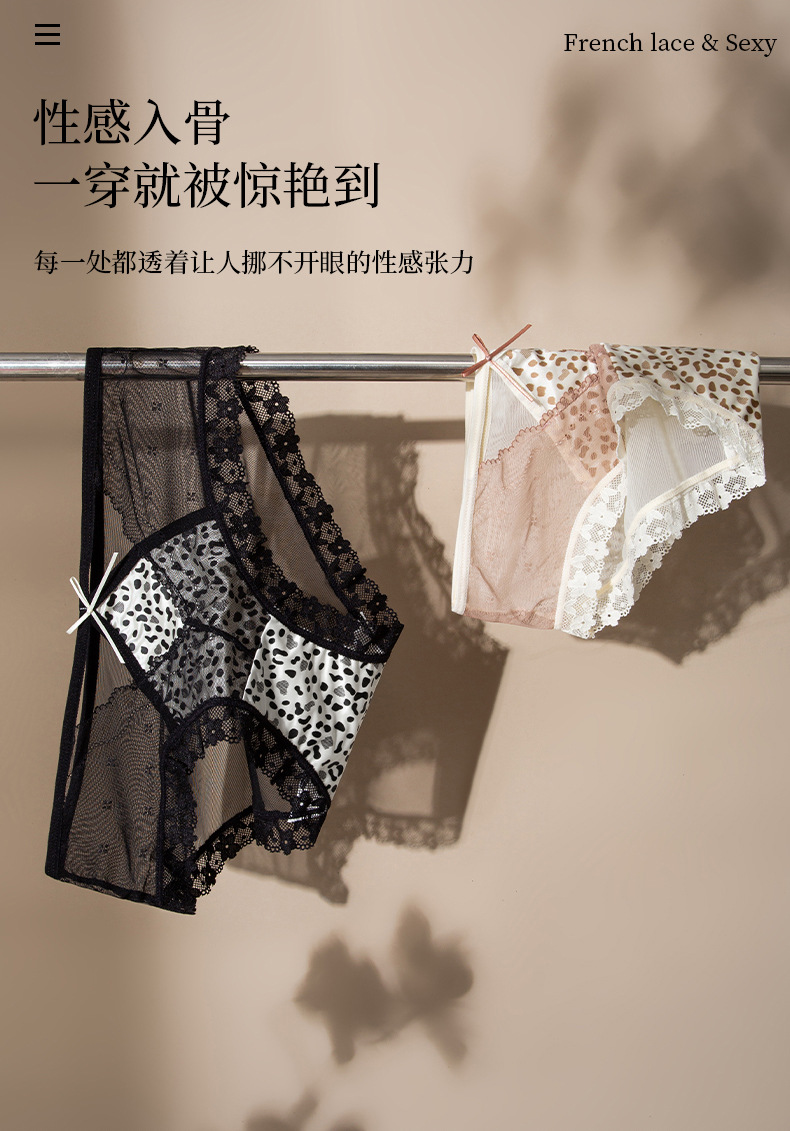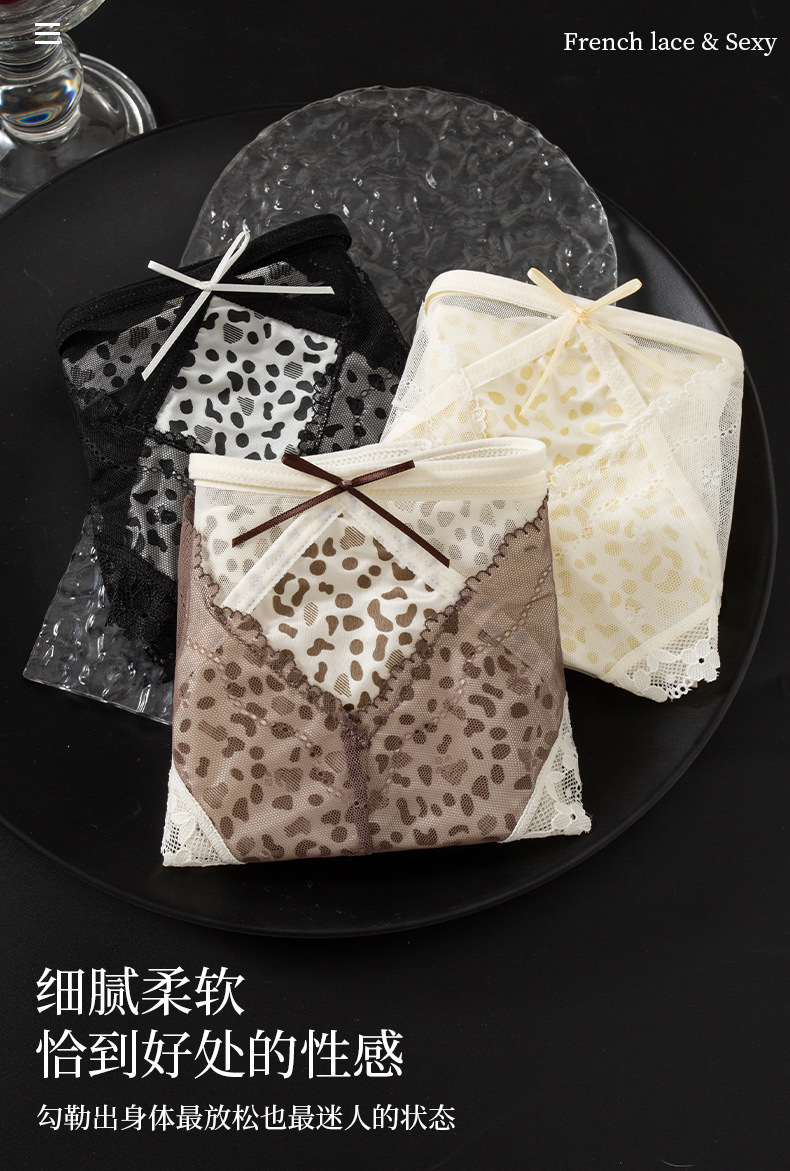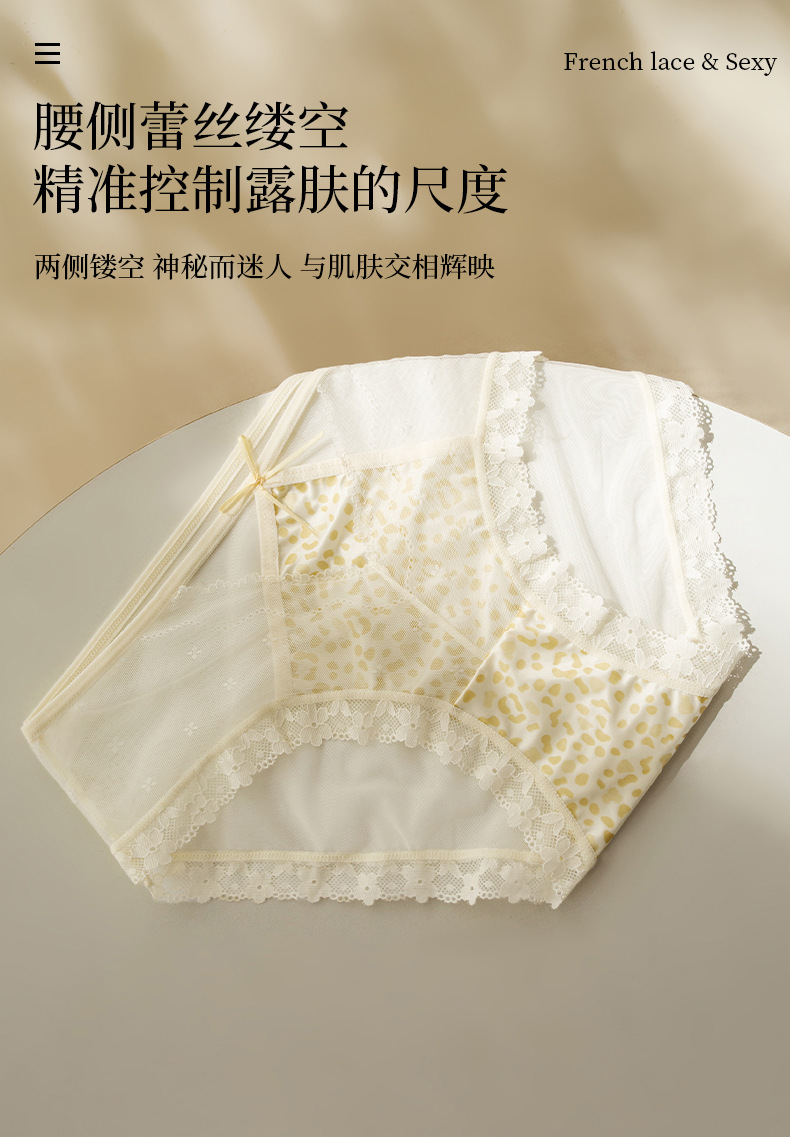 【GZ】无忧购39元3件桑蚕丝底裆性感蕾丝豹纹女士内裤轻奢缎面镂空三角裤3906(截单后3-5天发货)