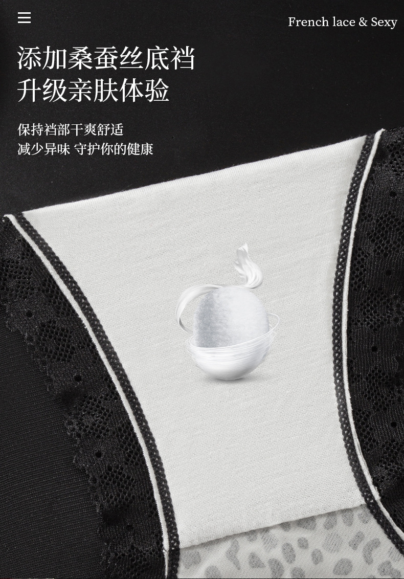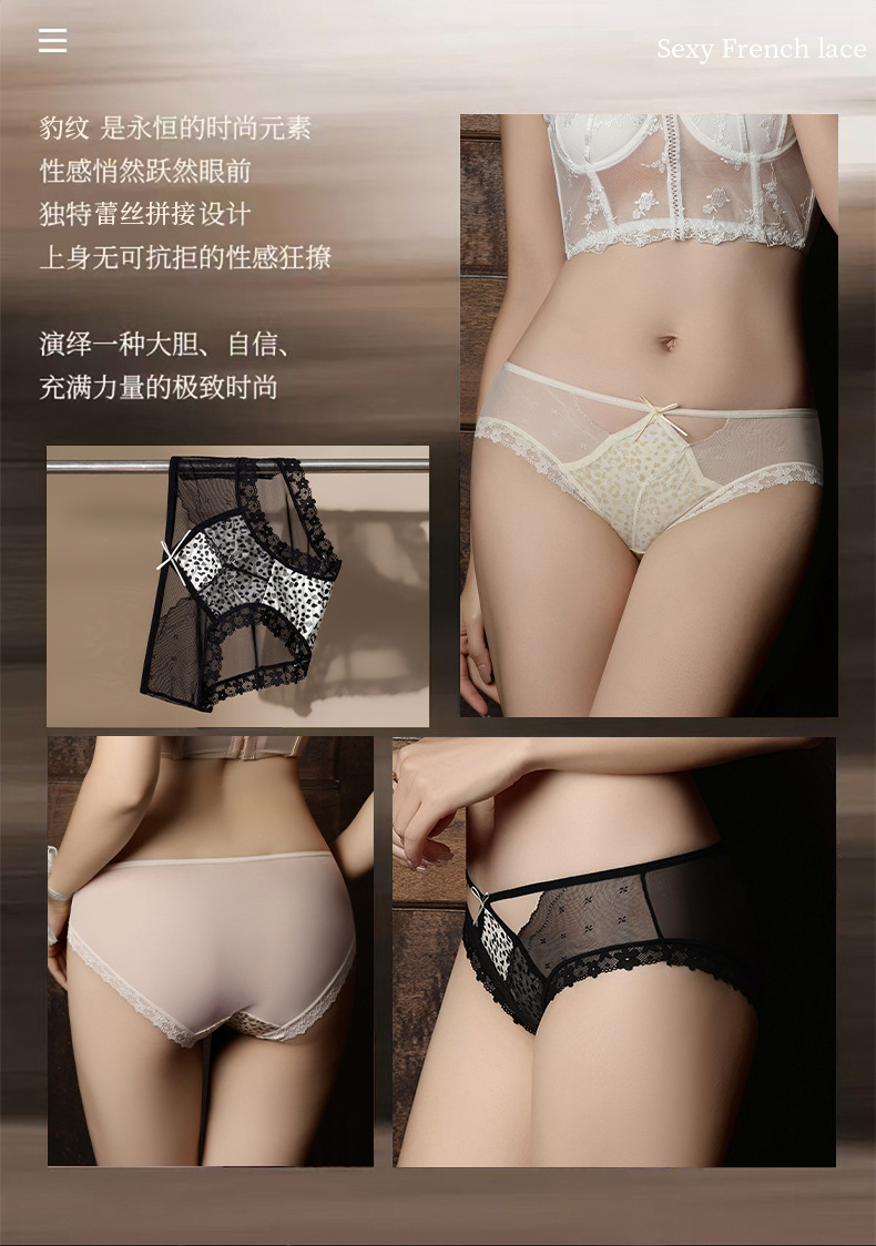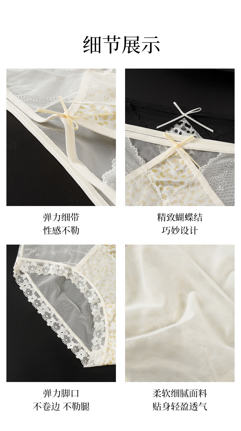 【GZ】无忧购39元3件桑蚕丝底裆性感蕾丝豹纹女士内裤轻奢缎面镂空三角裤3906(截单后3-5天发货)