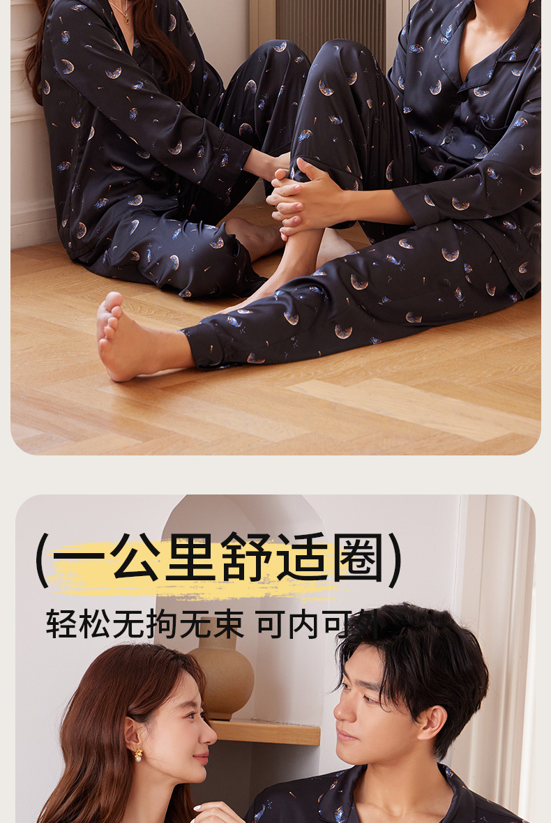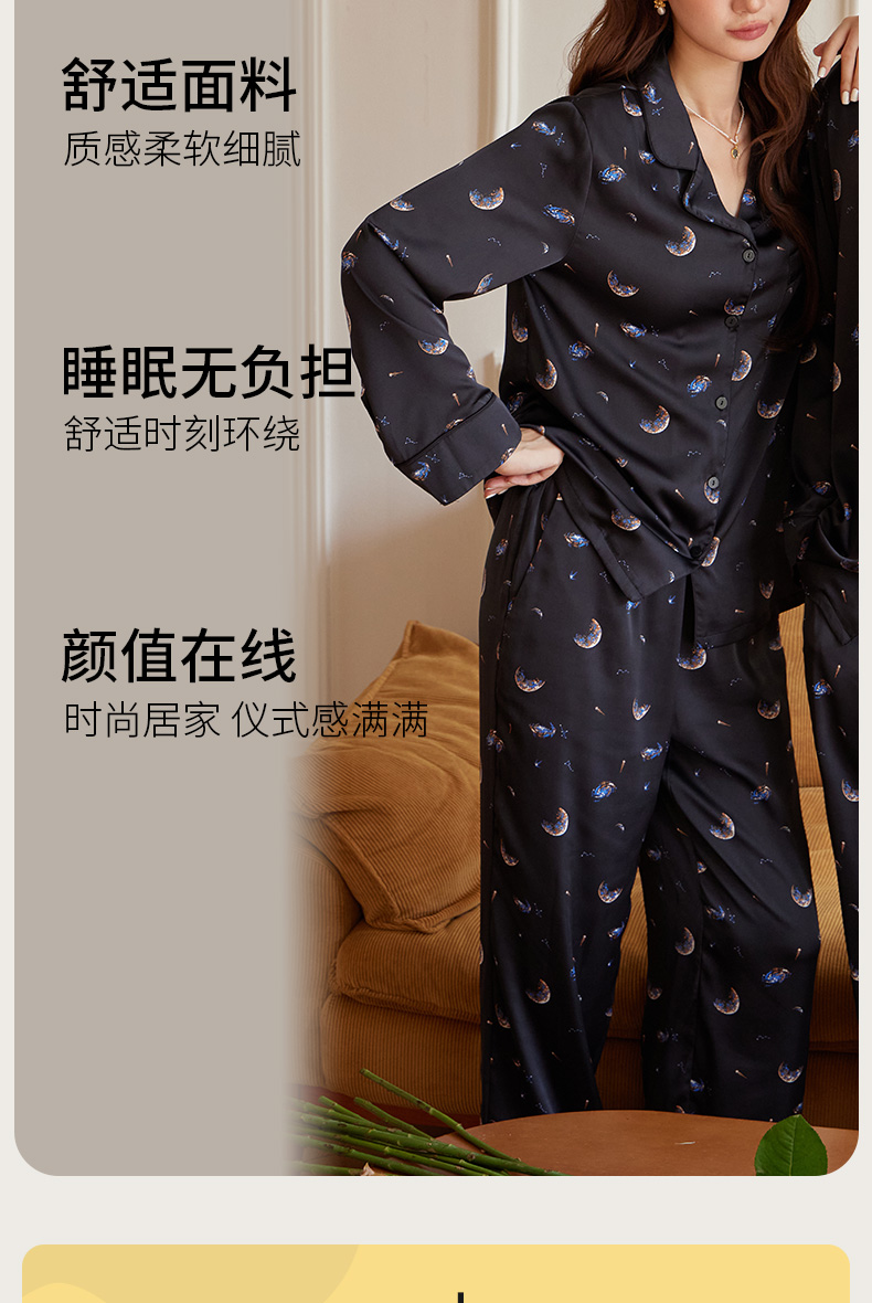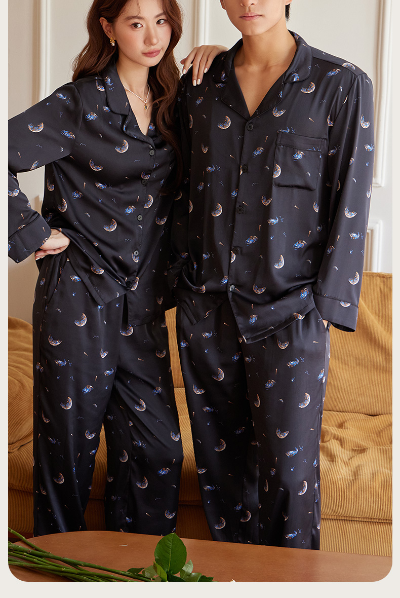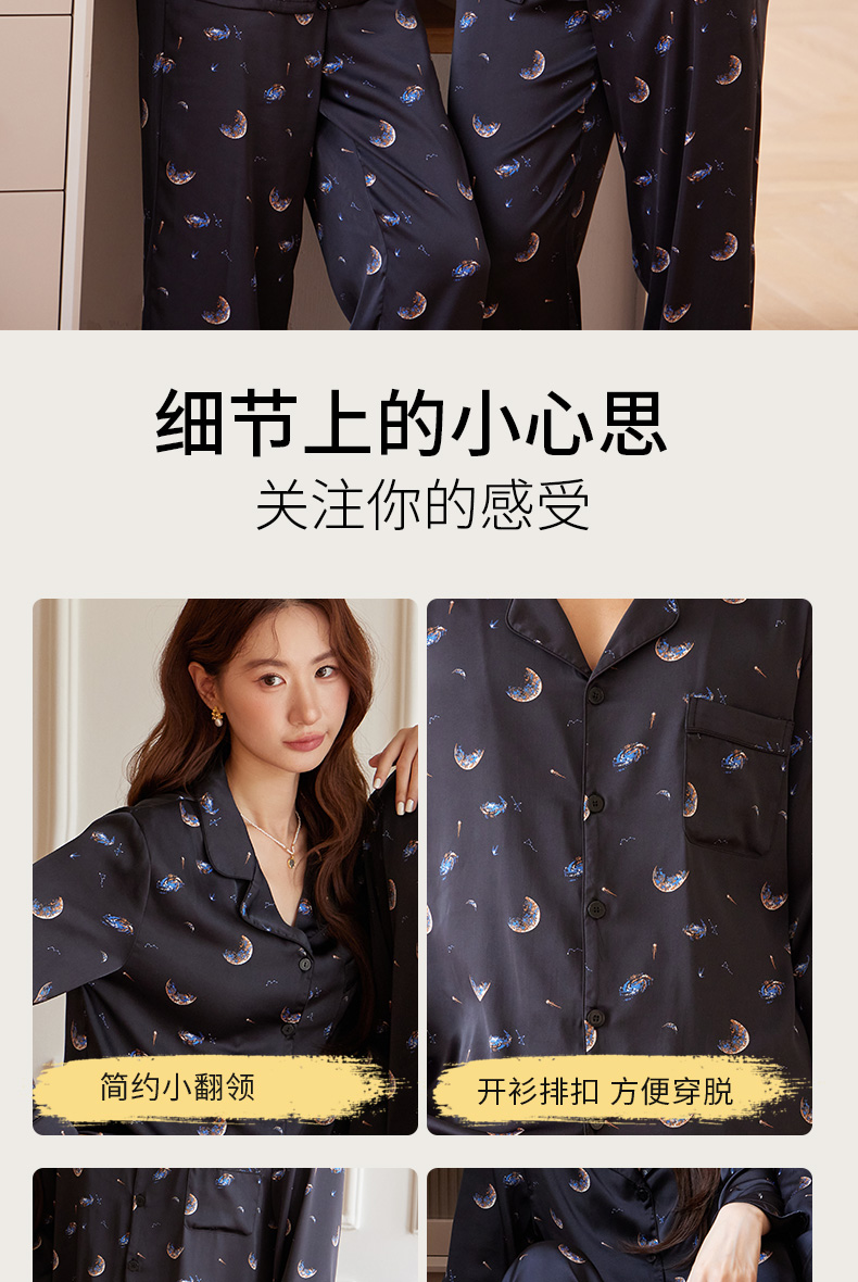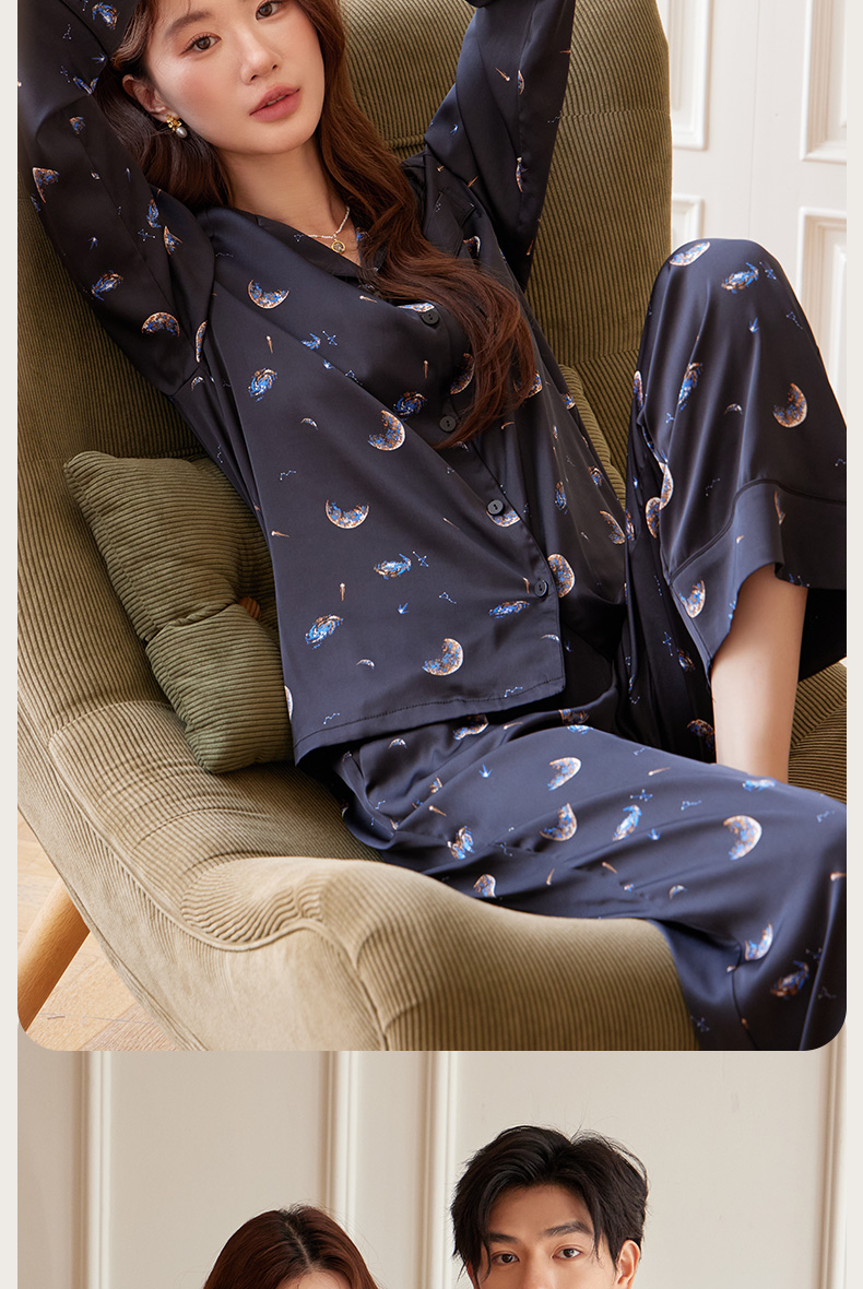 【女款】星河之恋缎面女士套装 印花情侣睡衣 高级牛奶缎面 亲肤透气垂坠有质感 睡衣家居服
