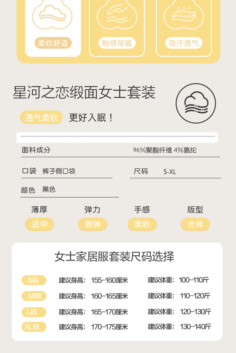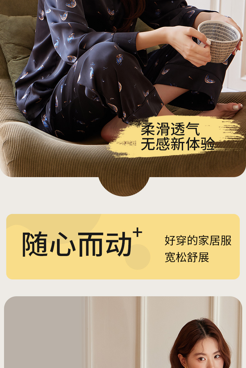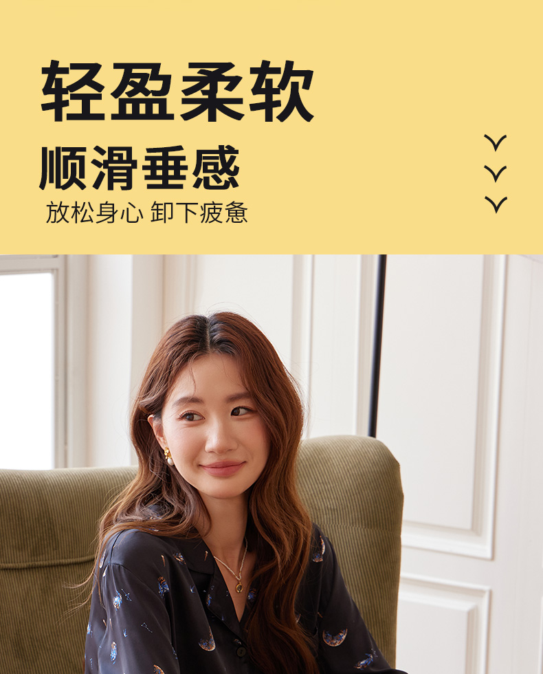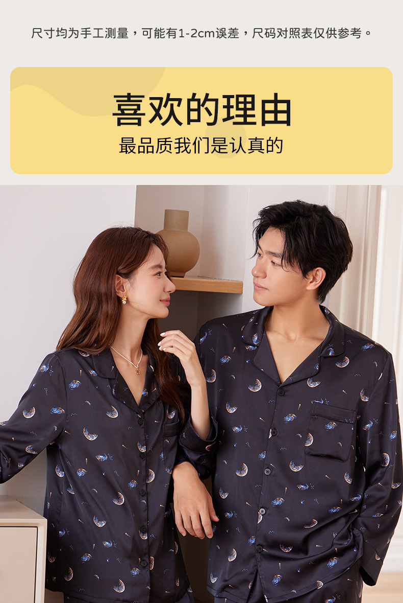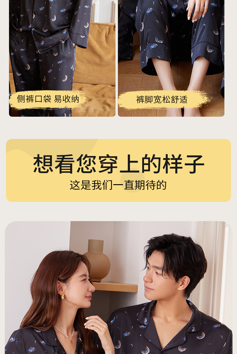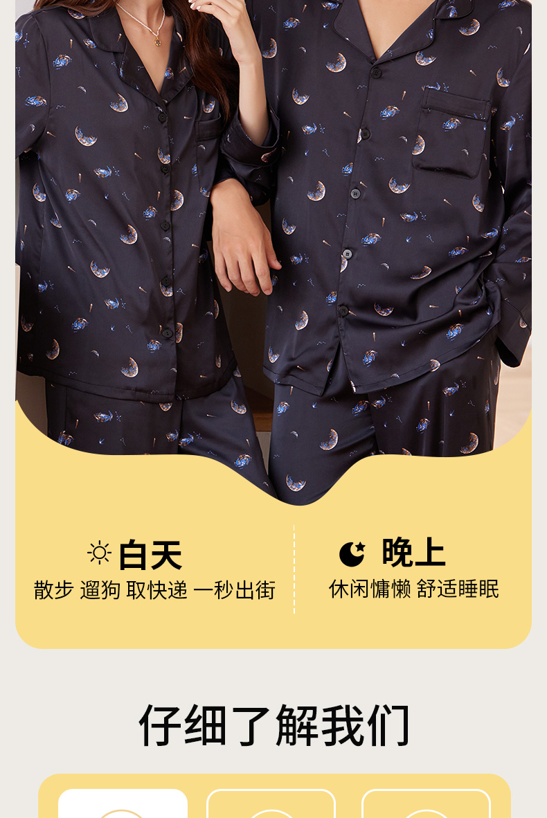 【女款】星河之恋缎面女士套装 印花情侣睡衣 高级牛奶缎面 亲肤透气垂坠有质感 睡衣家居服