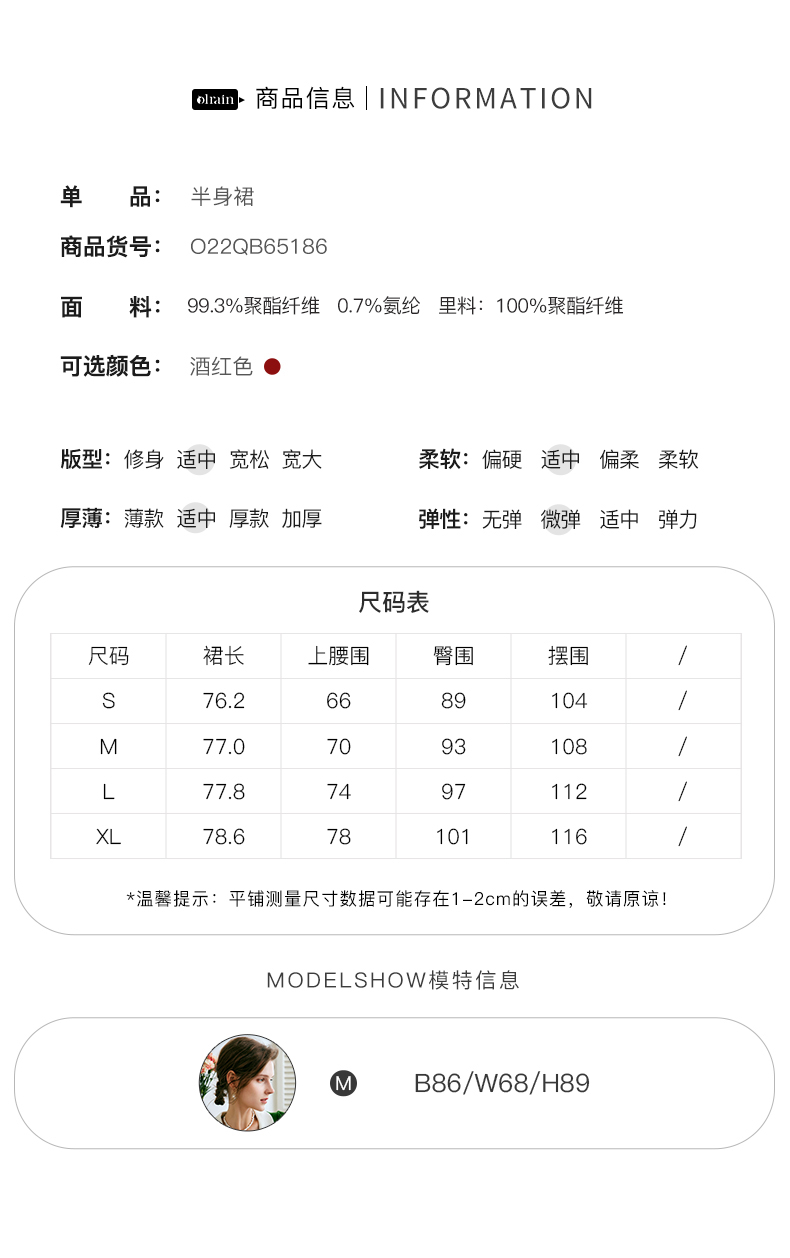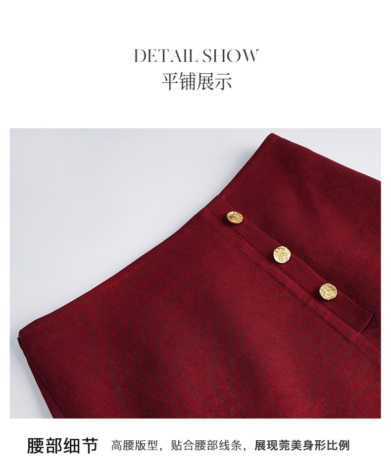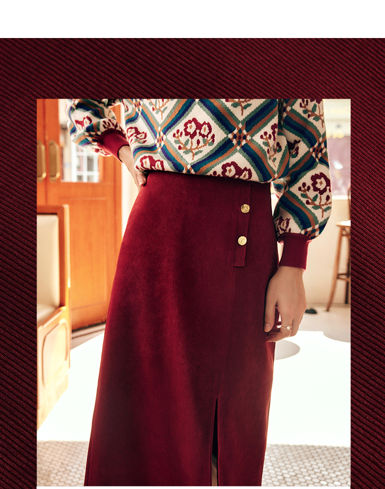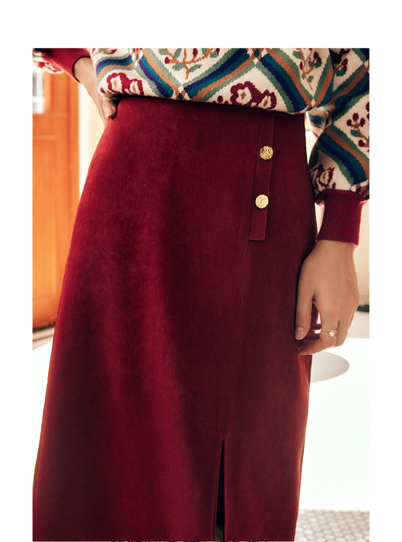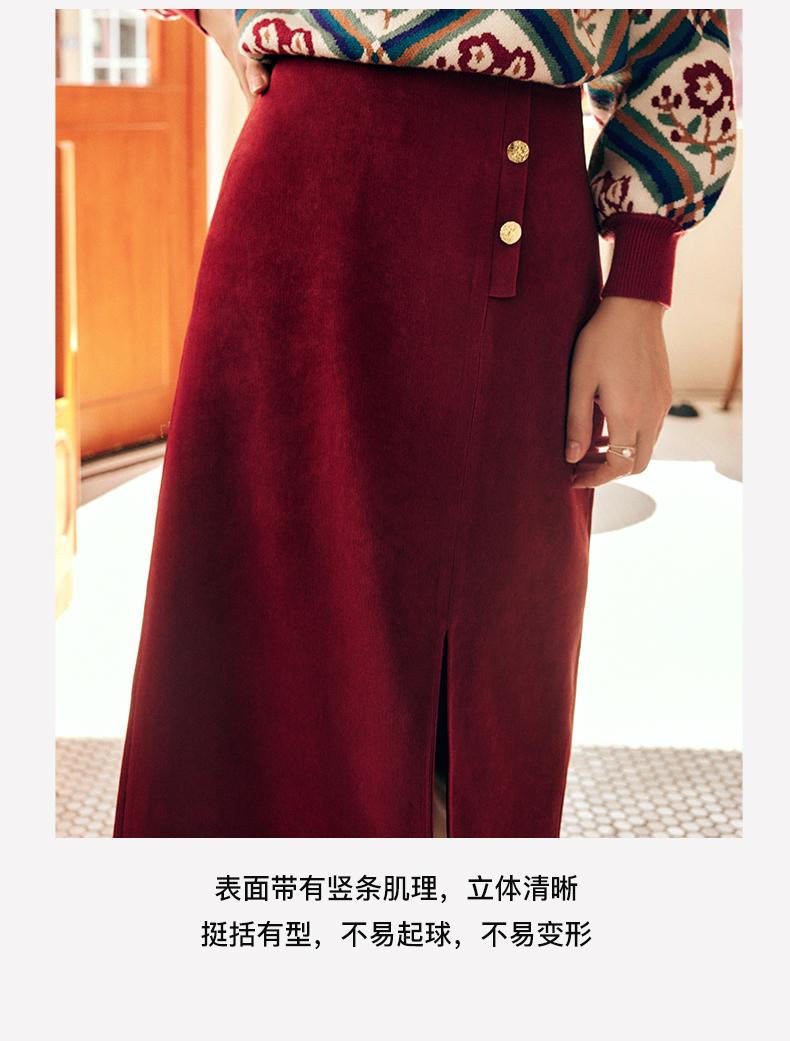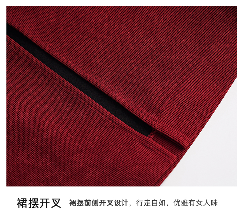 OLrain欧芮儿法式酒红色半身裙女秋季2022新款开叉直筒中长款裙子