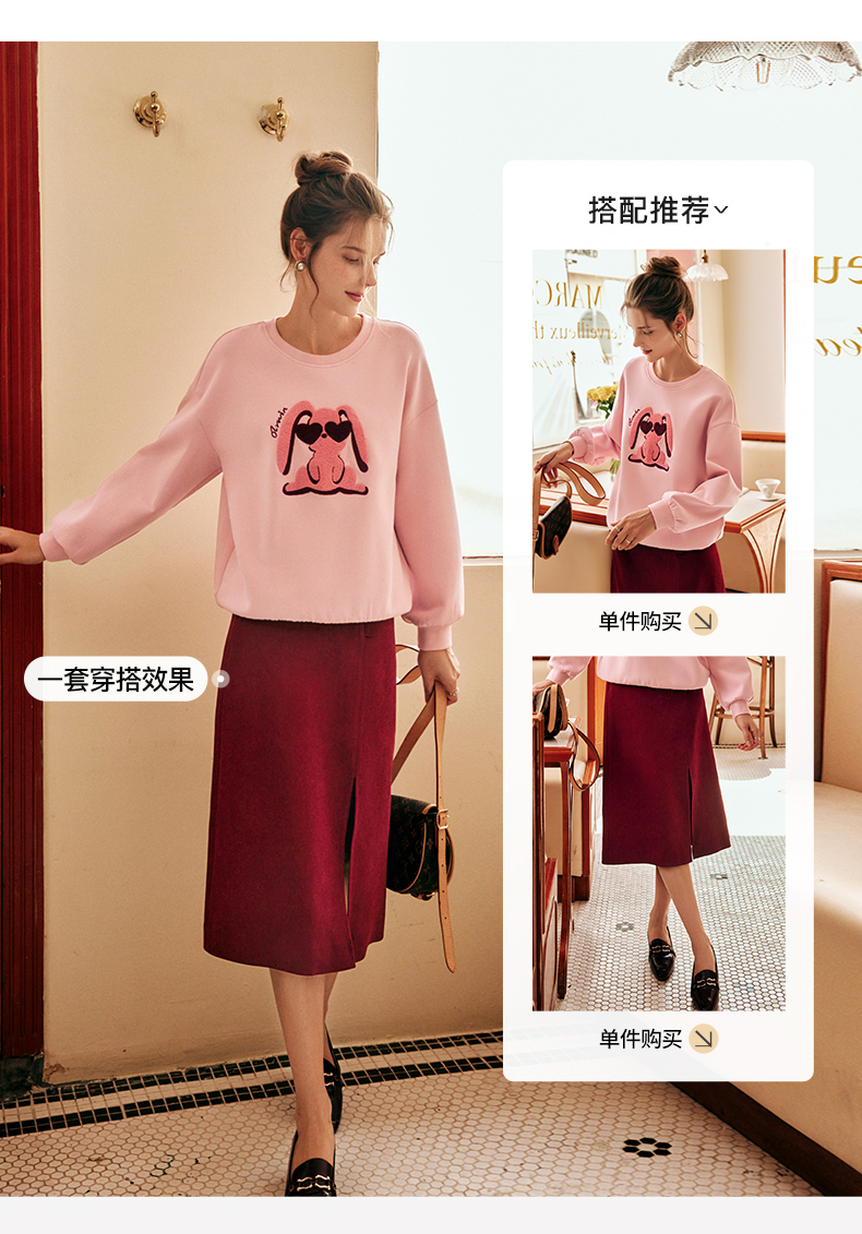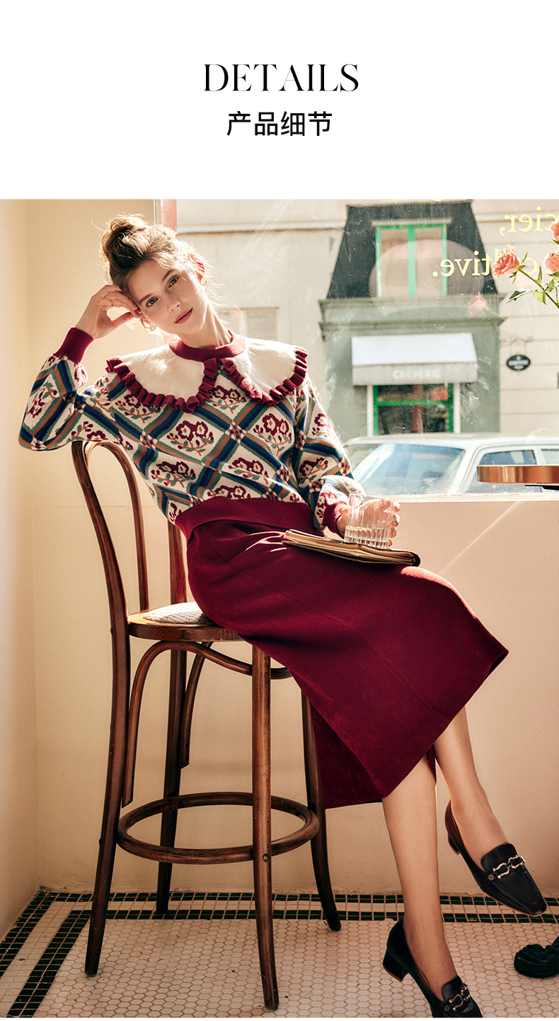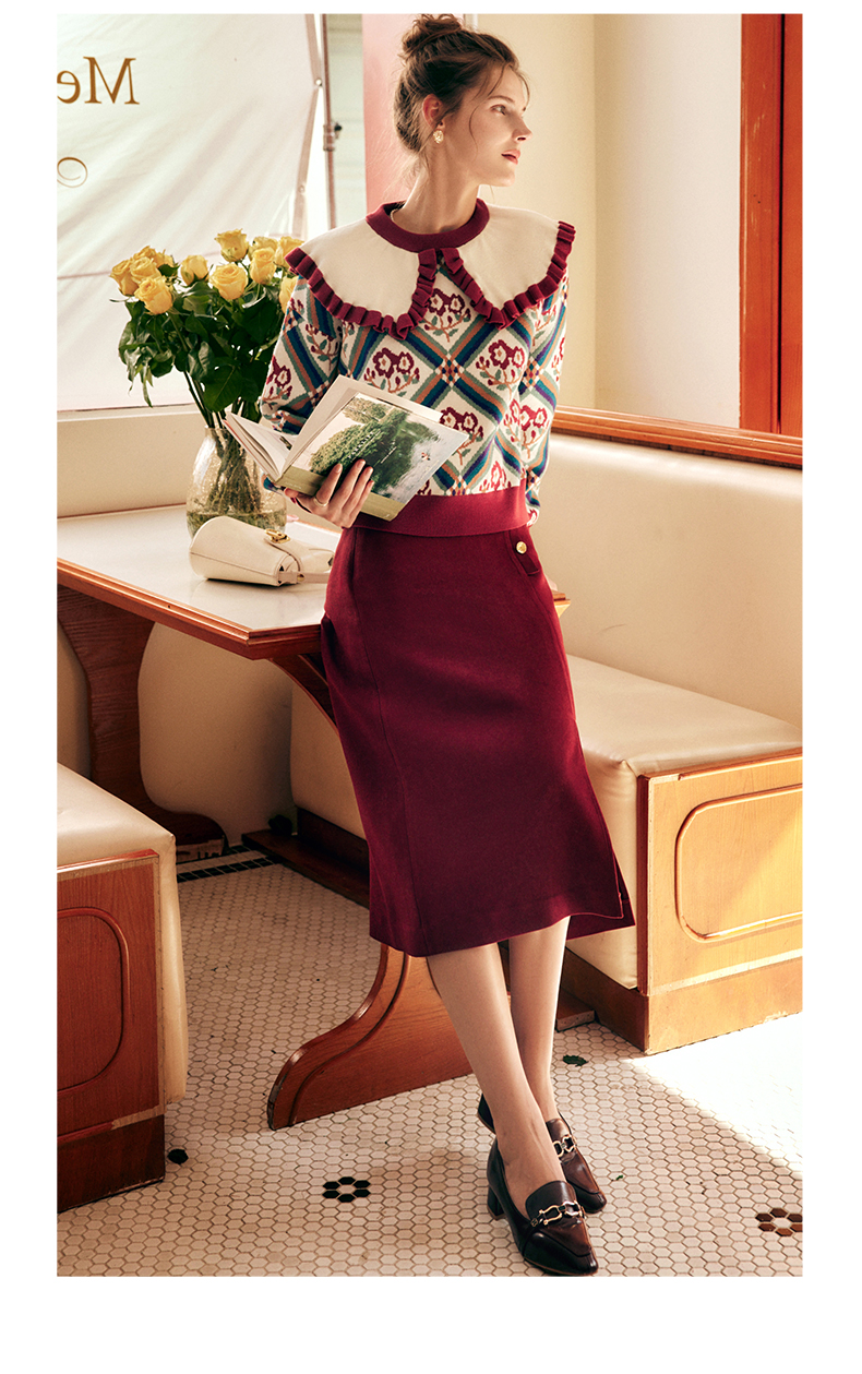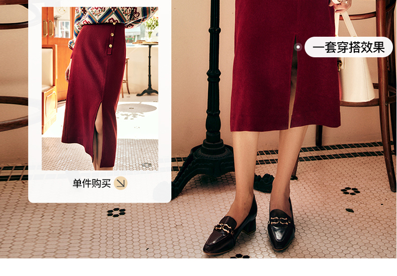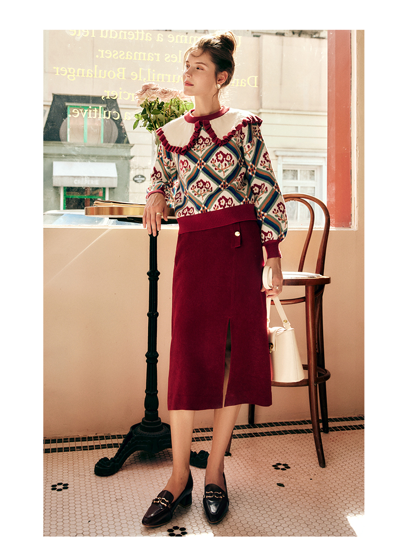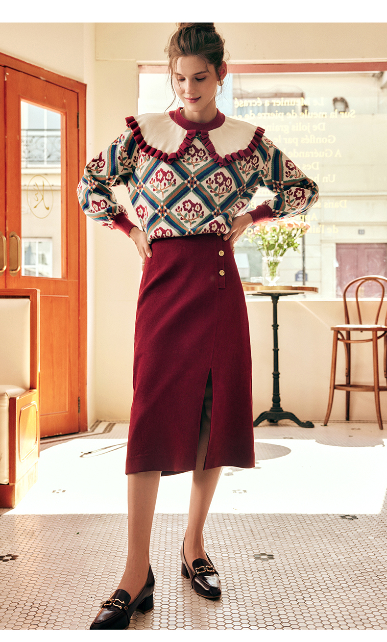OLrain欧芮儿法式酒红色半身裙女秋季2022新款开叉直筒中长款裙子