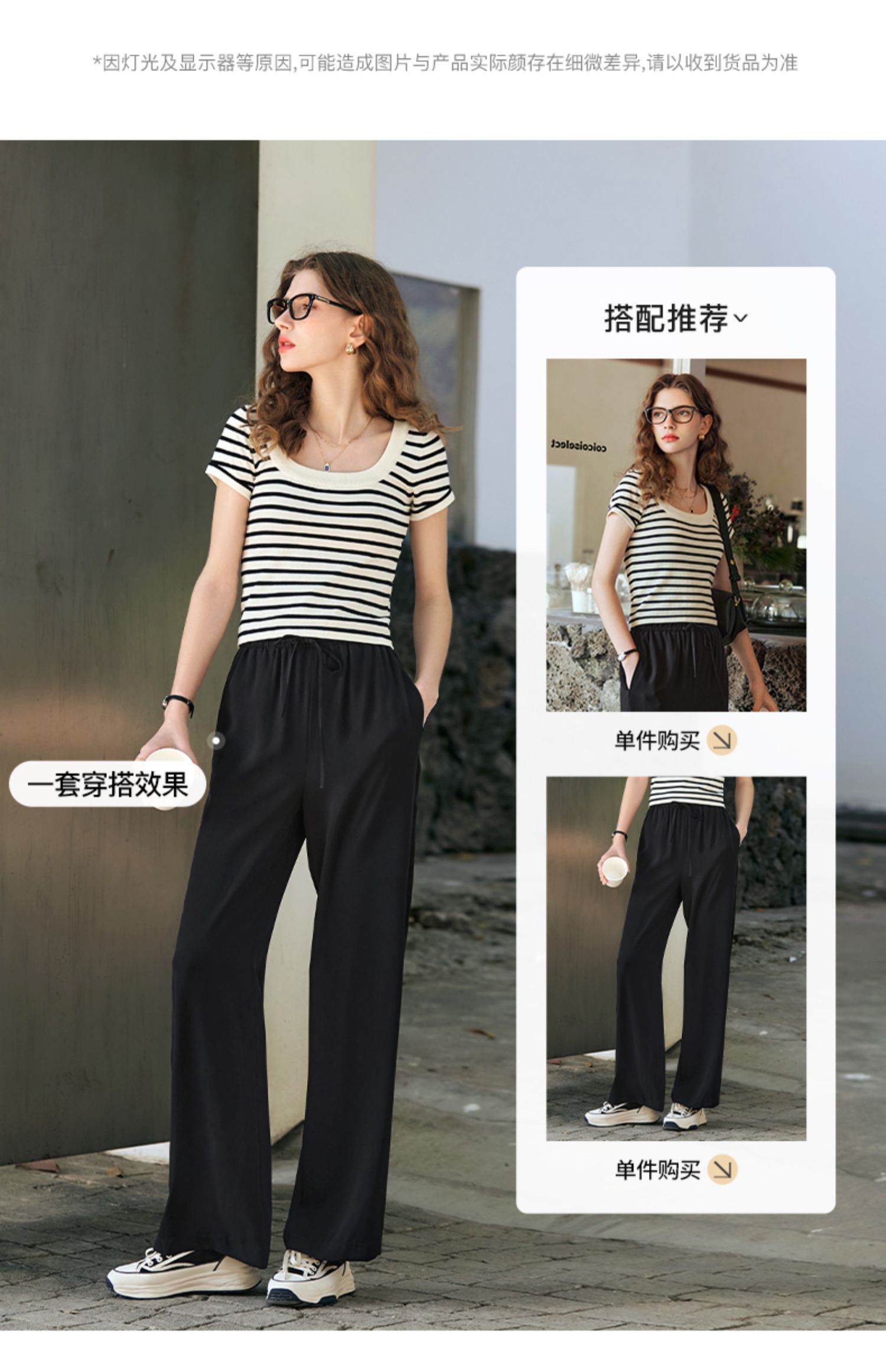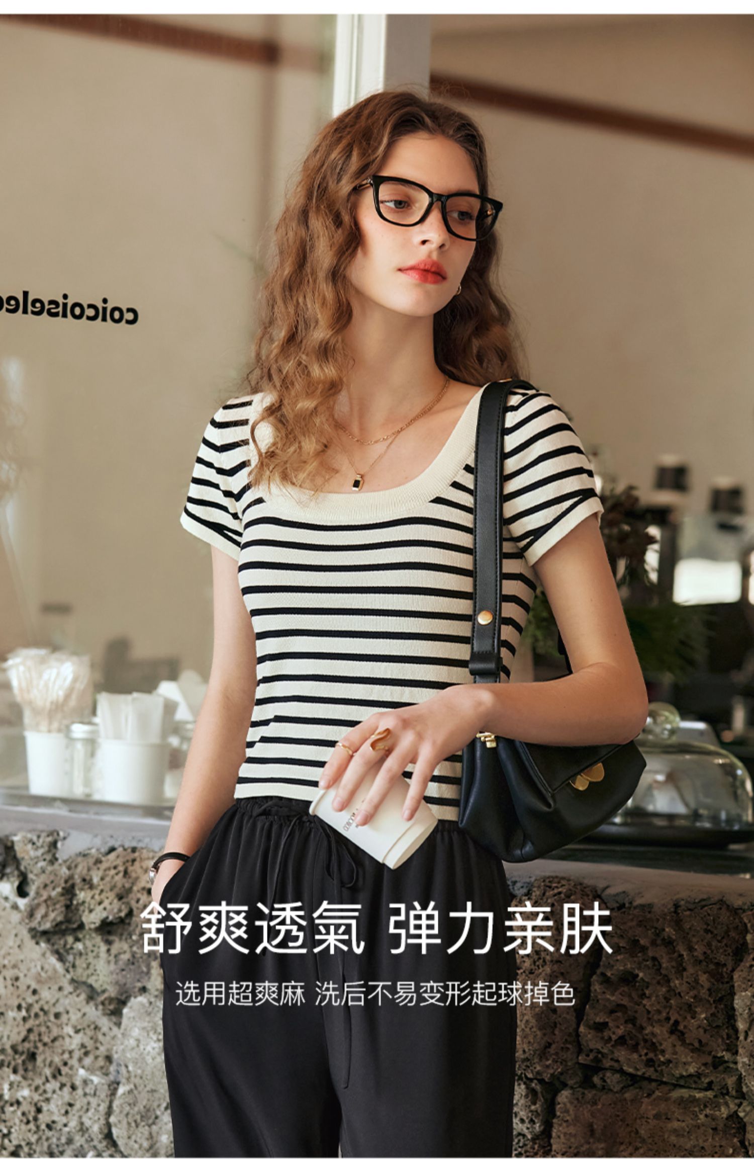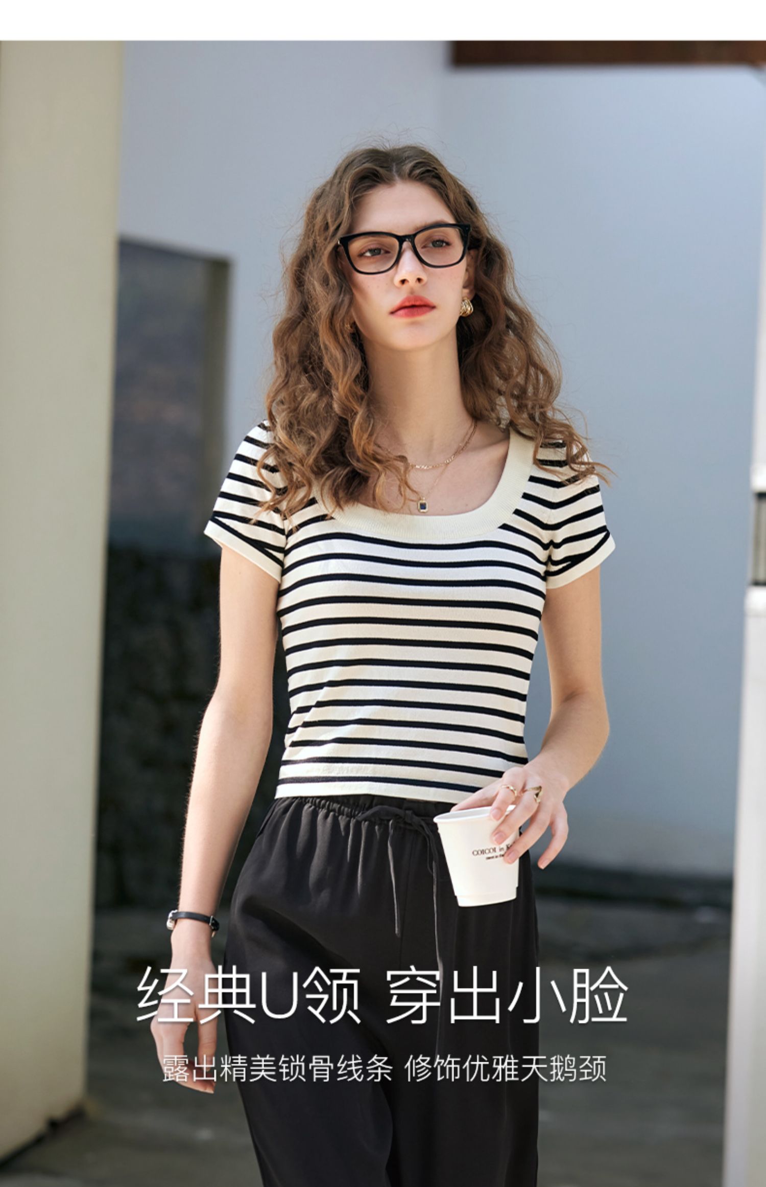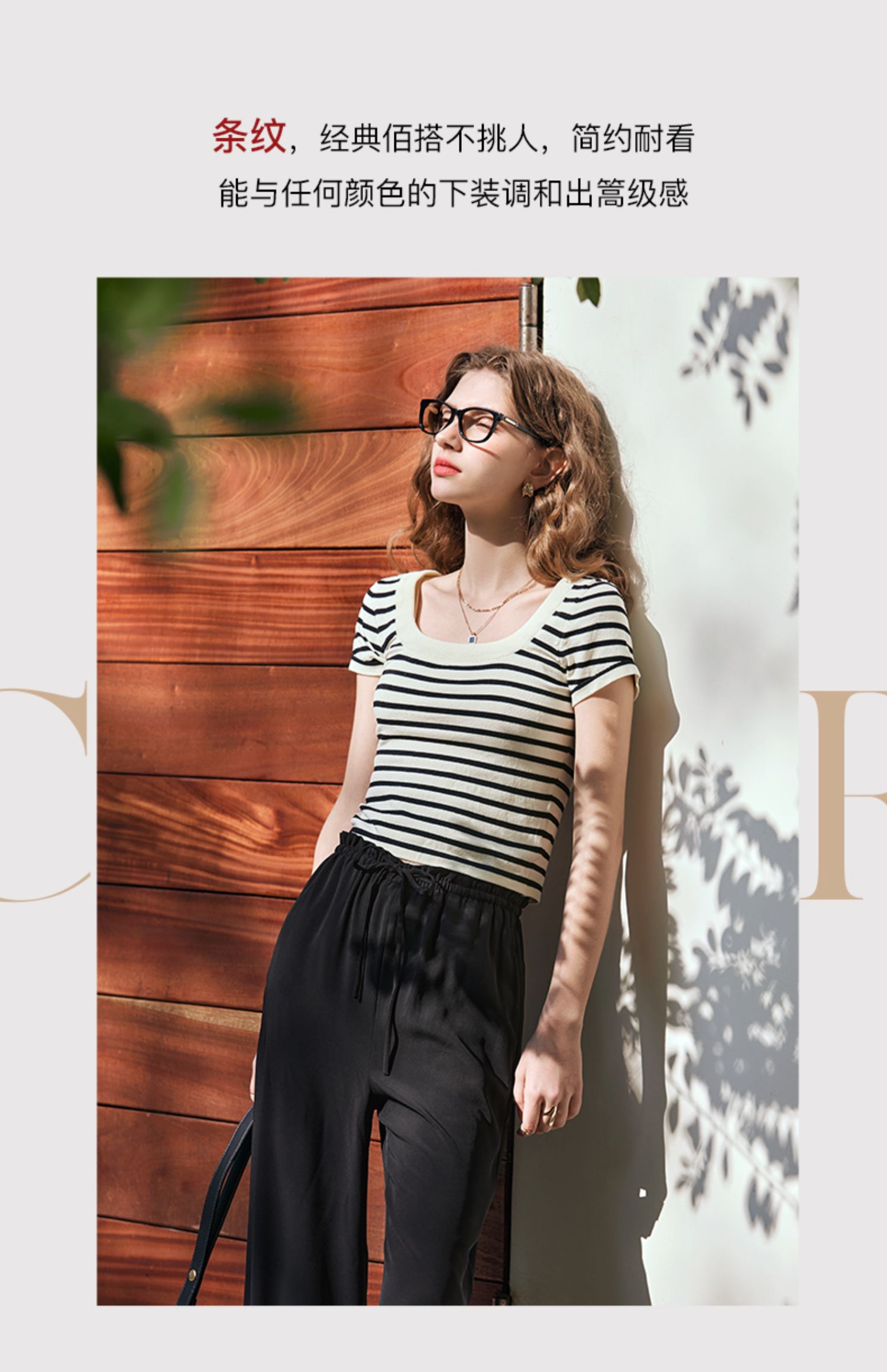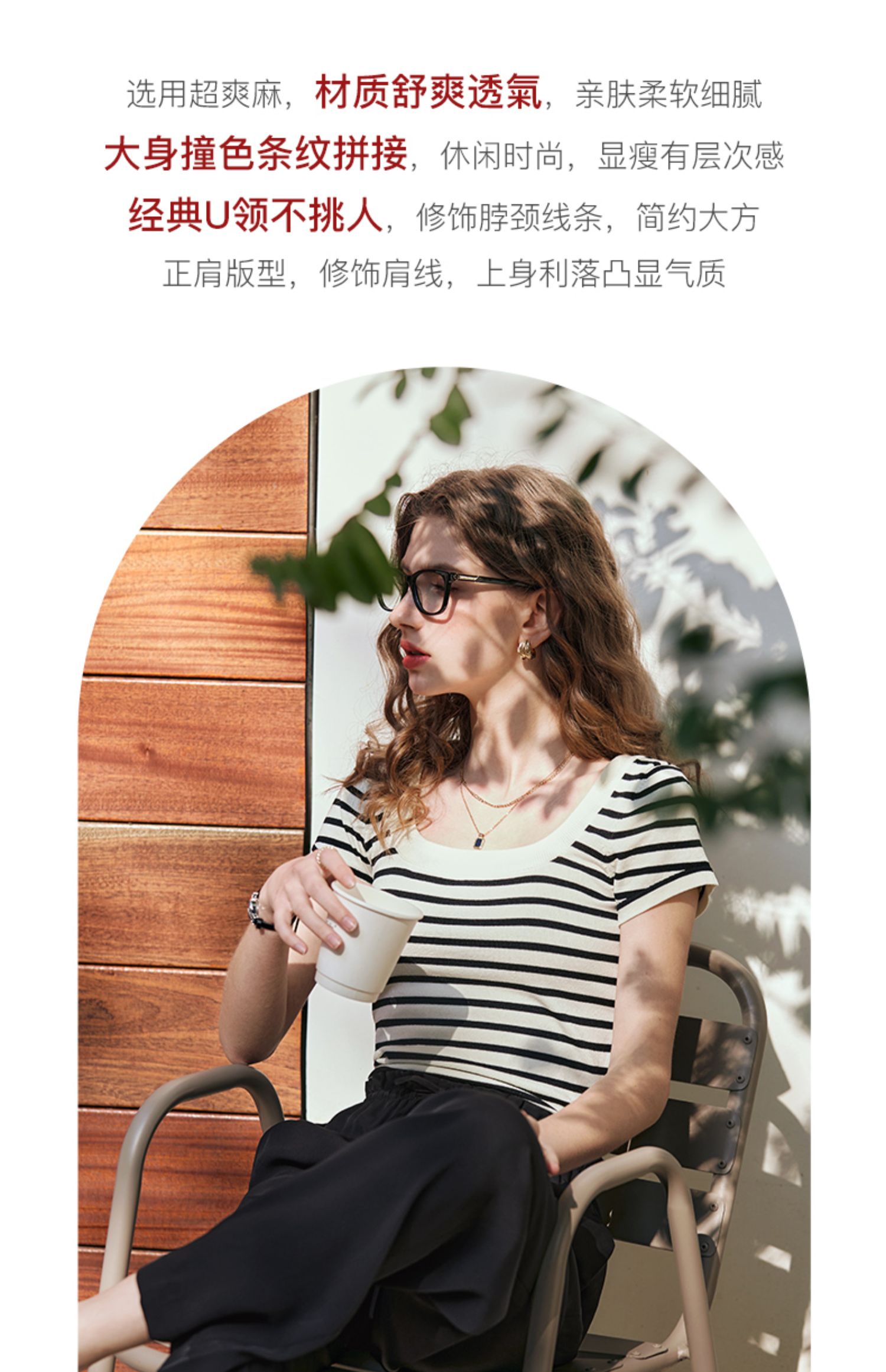 OLrain欧芮儿黑白条纹针织衫女早春2024年新款正肩冰丝短袖T恤